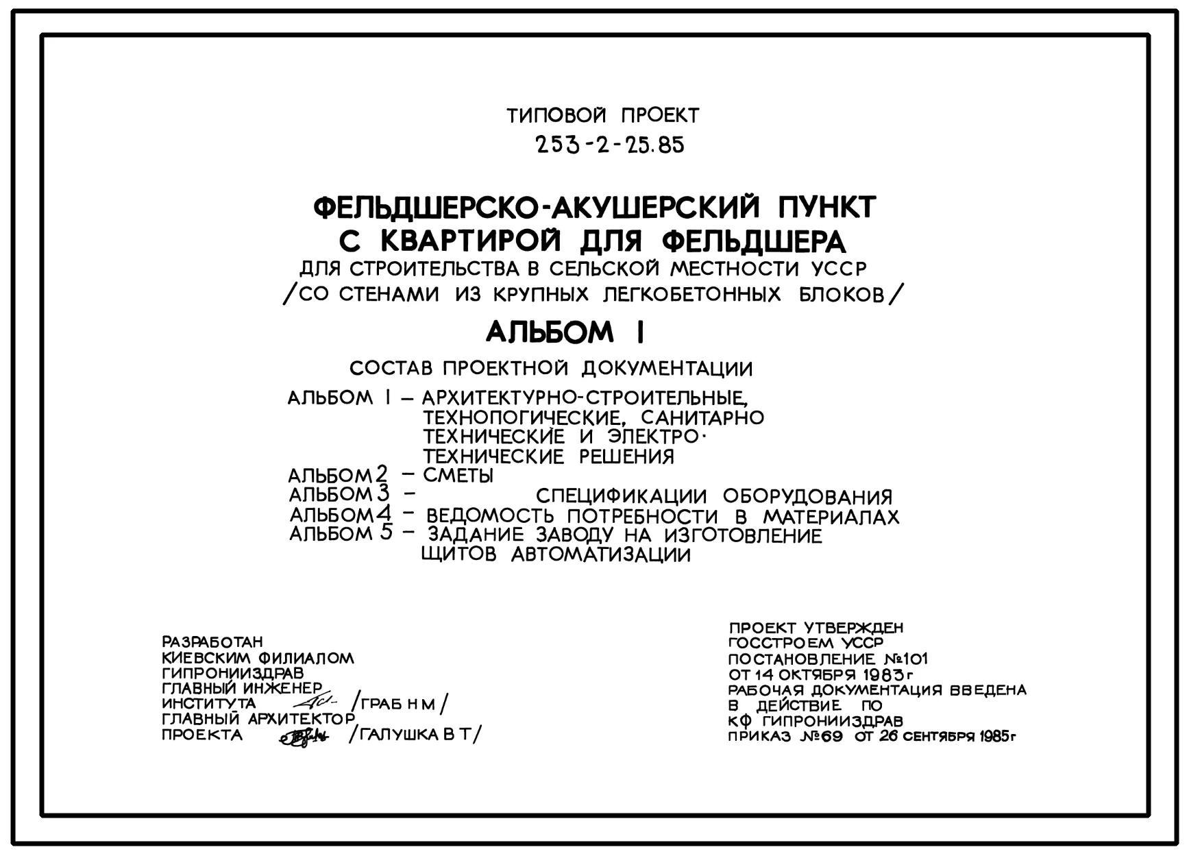Типовой проект 253-2-25.85 Фельдшерско-акушерский пункт с квартирой для фельдшера