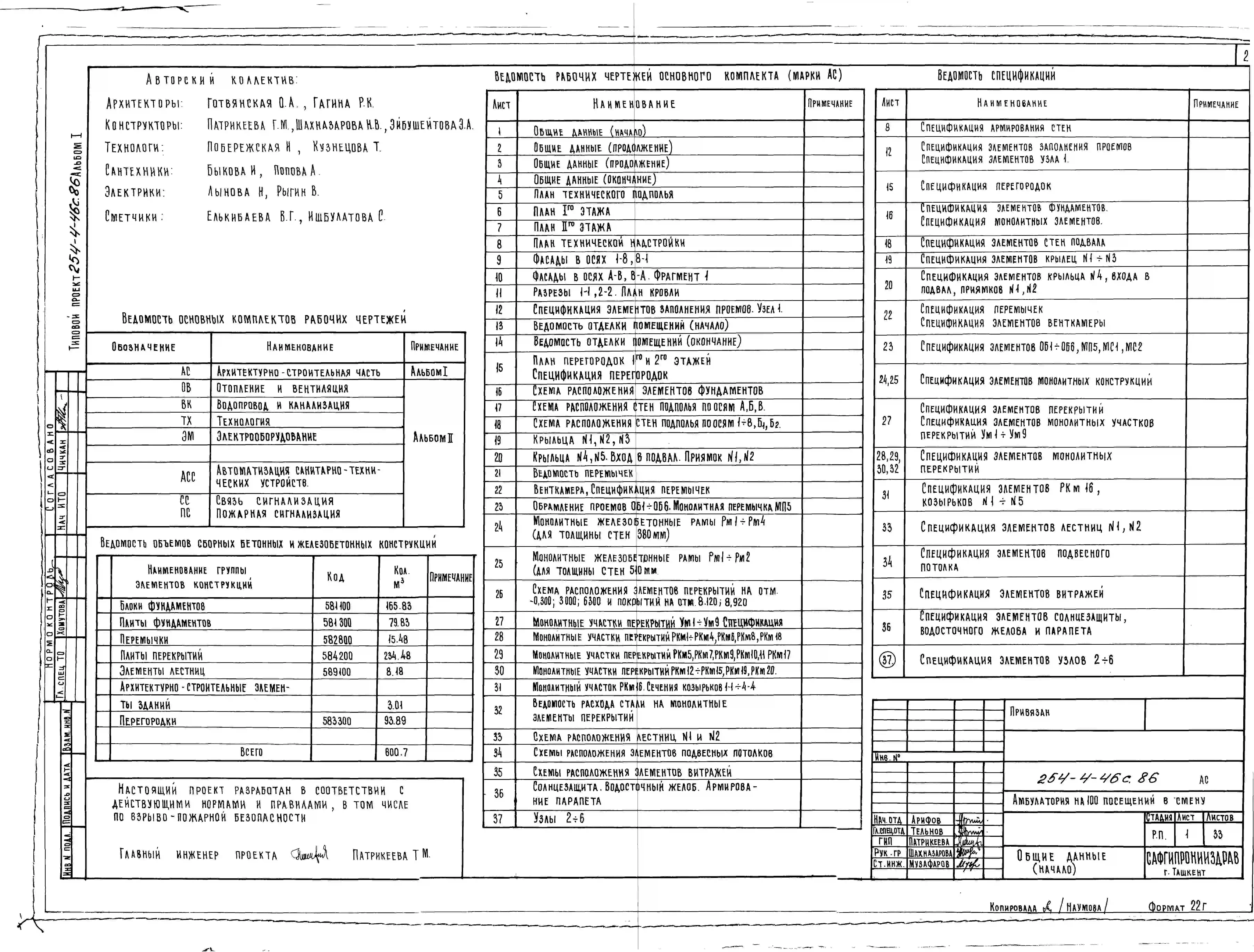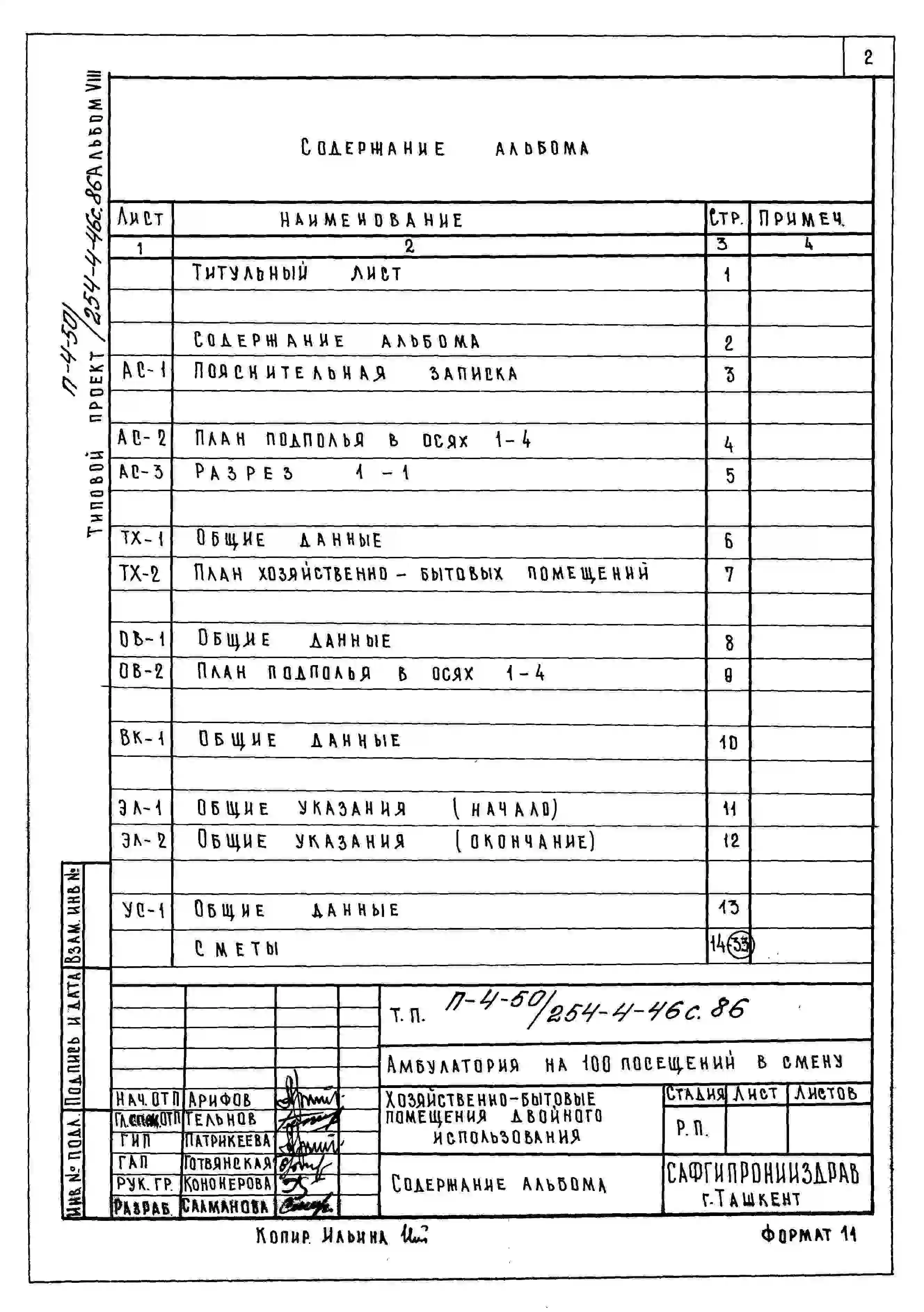 Типовой проект 254-4-46с.86 Амбулатория на 100 посещений в смену со стенами из кирпича