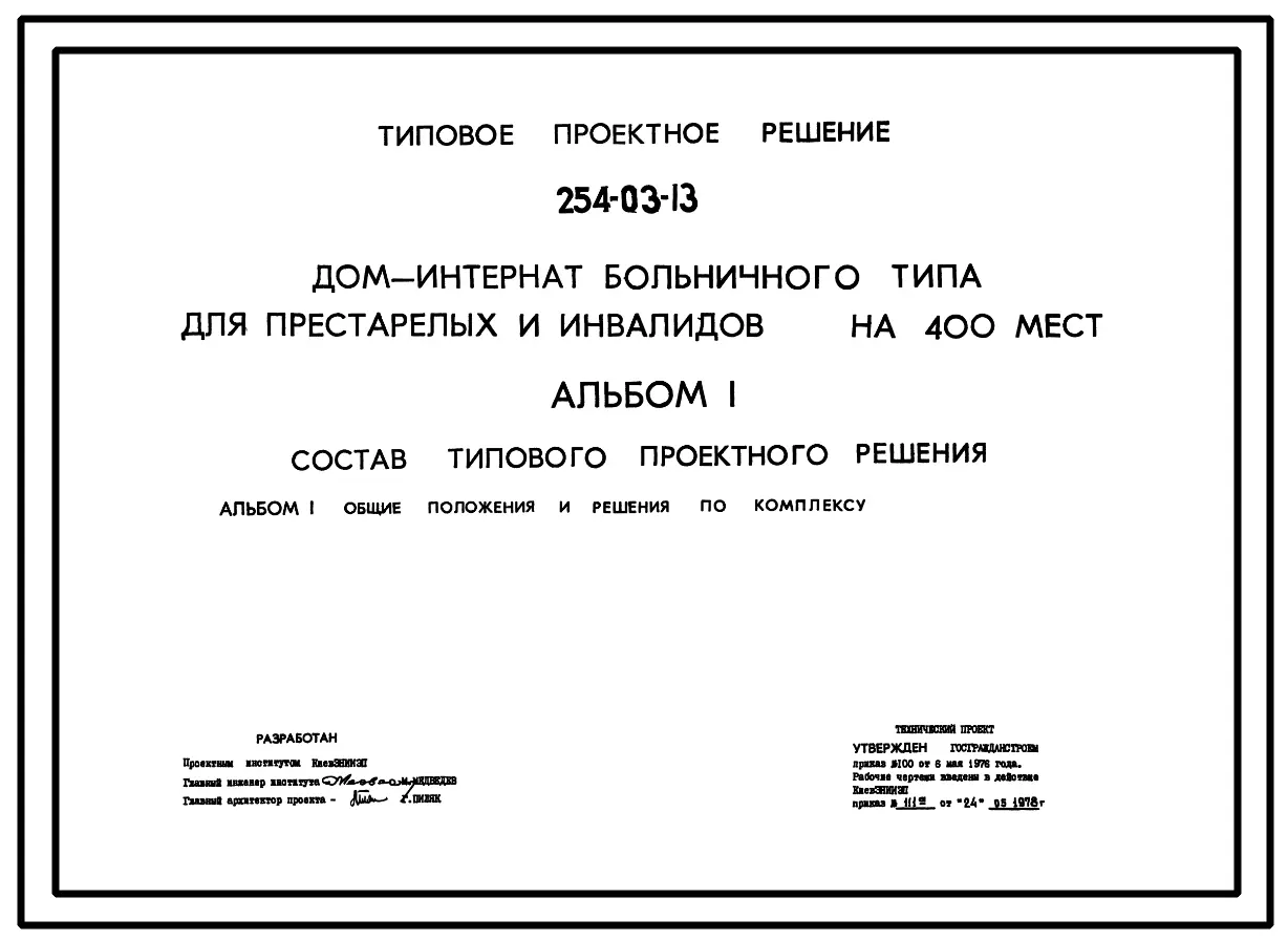 Типовой проект 254-03-13 Дом-интернат больничного типа для престарелых и инвалидов на 400 мест