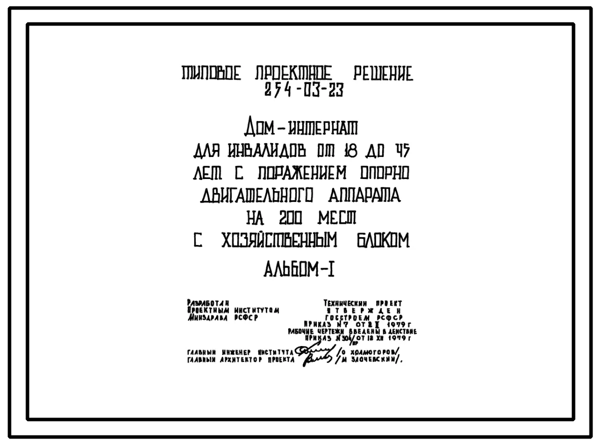 Типовой проект 254-03-23 Дом интернат для инвалидов от 18 до 45 лет с поражением опорно-двигательного аппарата на 200 мест