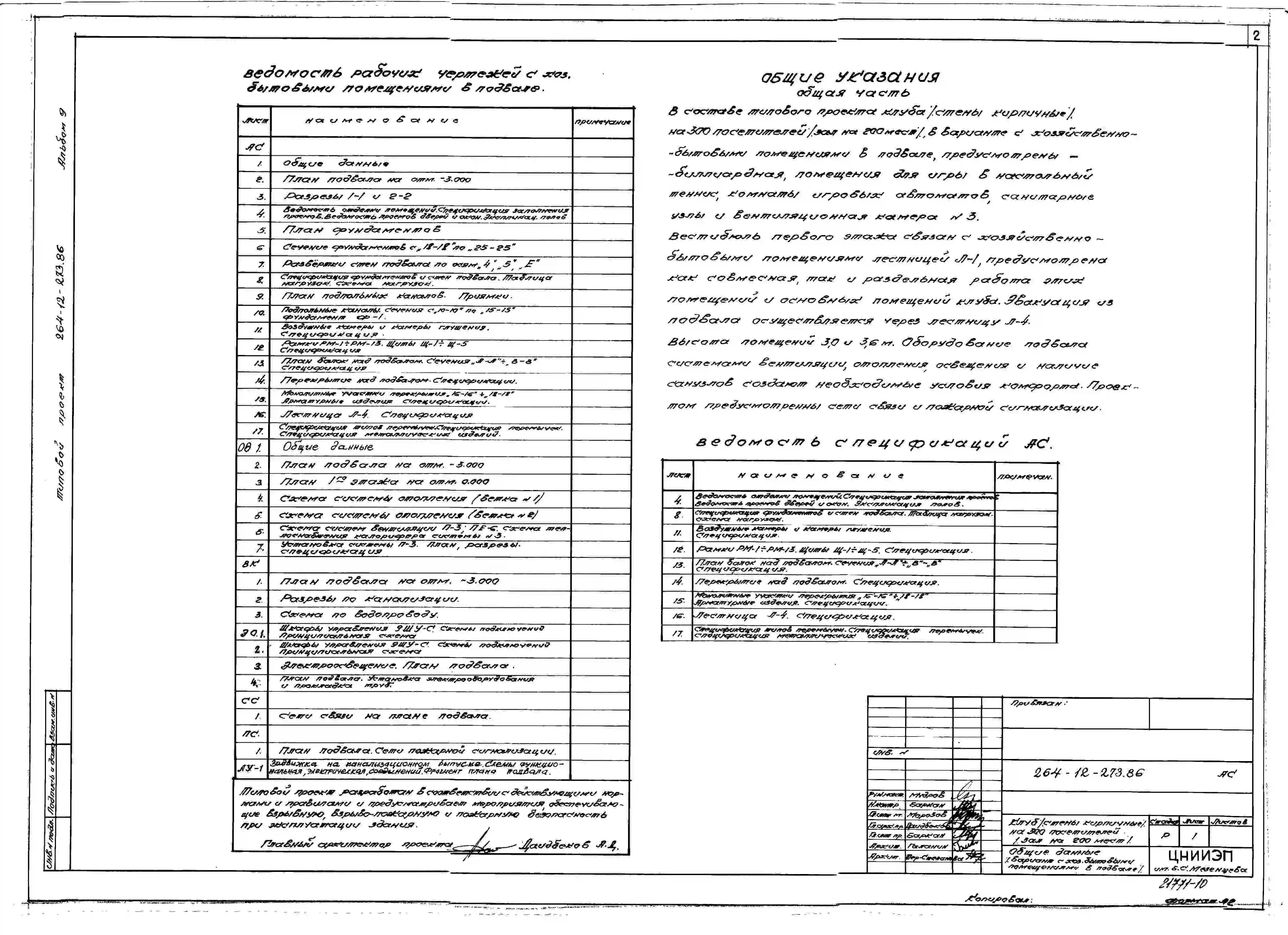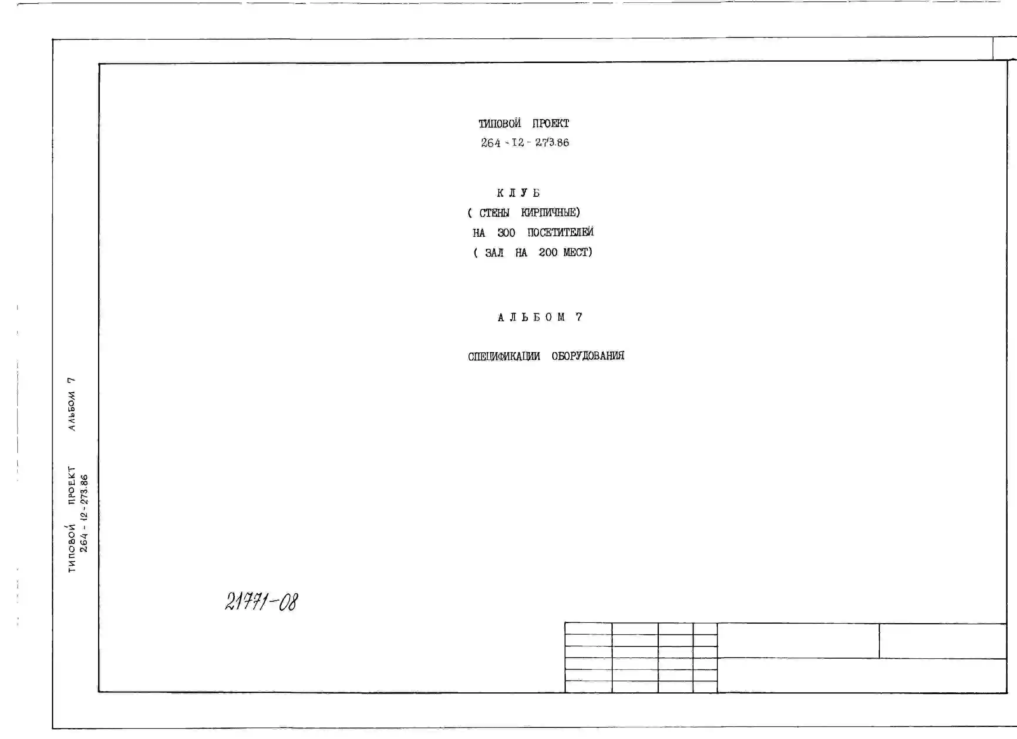 Типовой проект 264-12-273.86 Клуб (стены кирпичные) на 300 посетителей (зал на 200 мест)