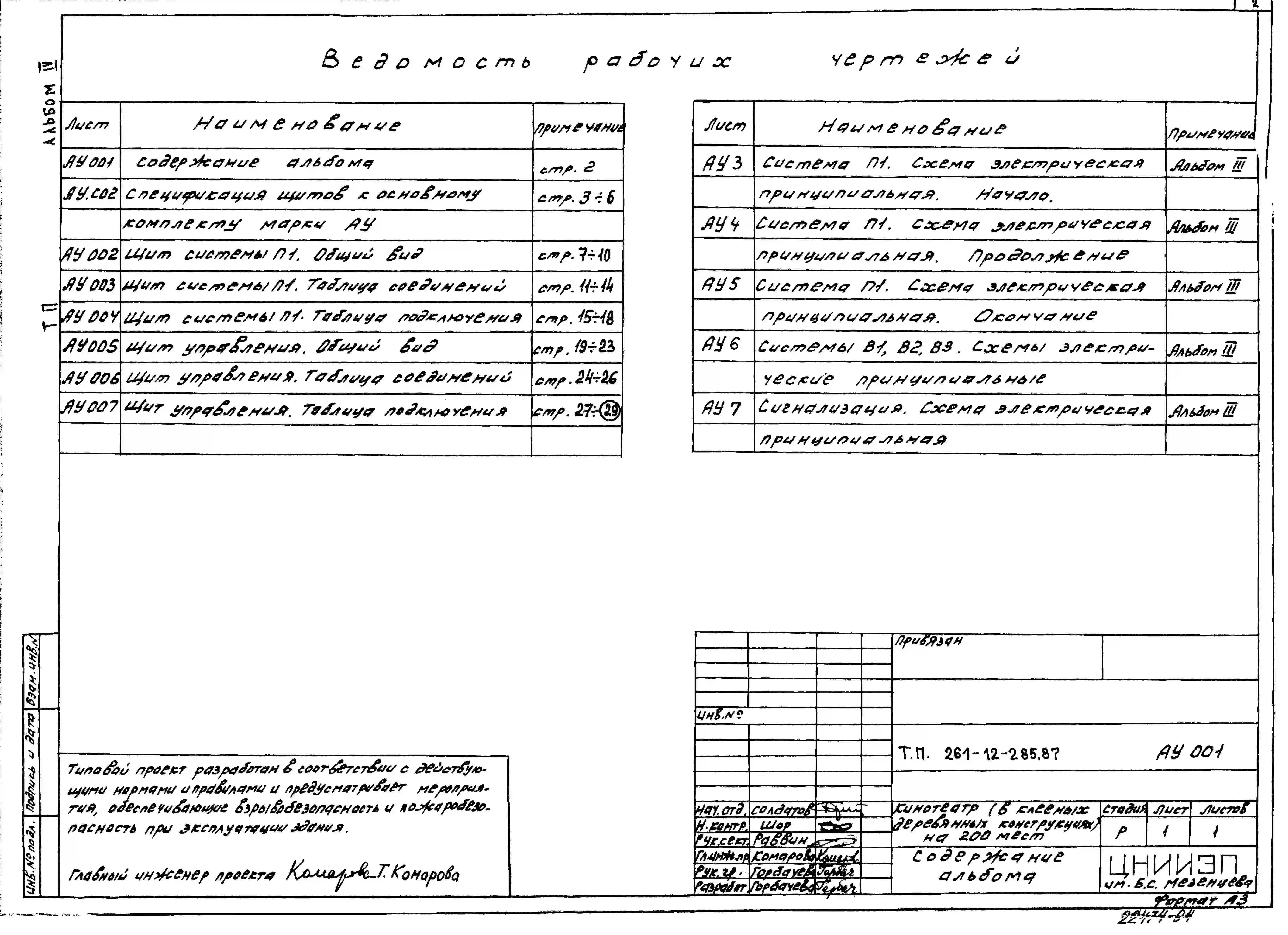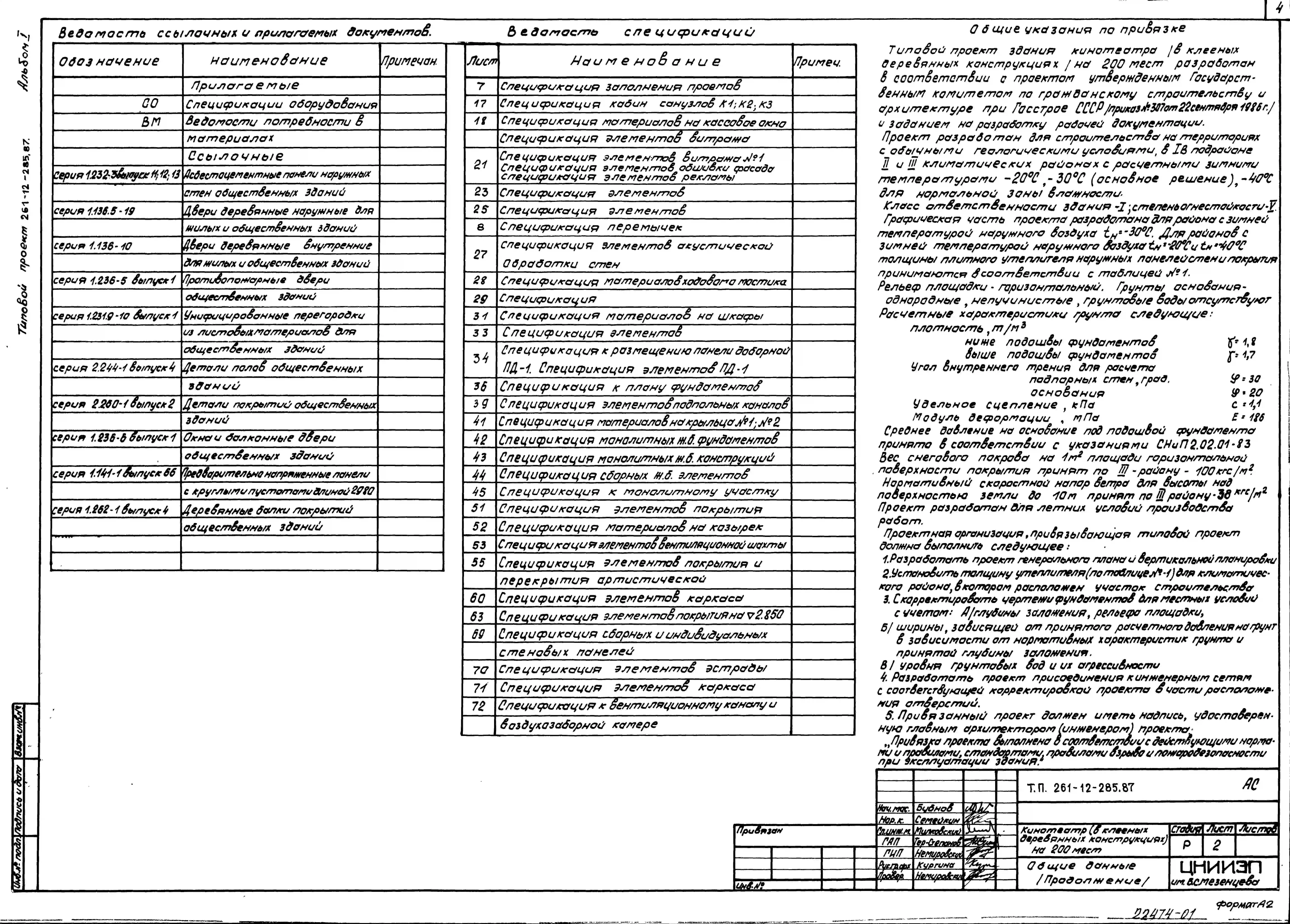 Типовой проект 261-12-285.87 Кинотеатр (в клееных деревянных конструкциях) на 200 мест