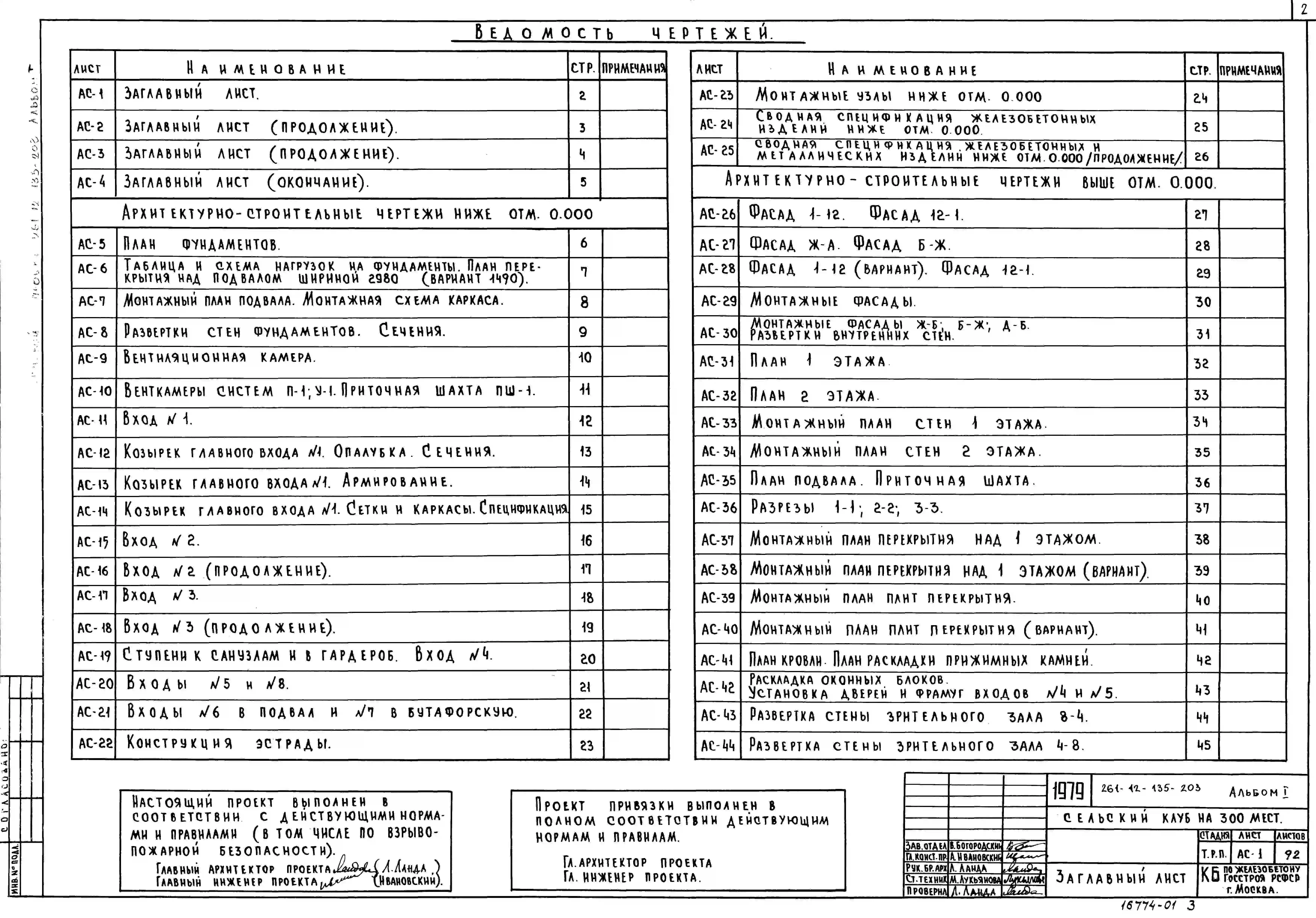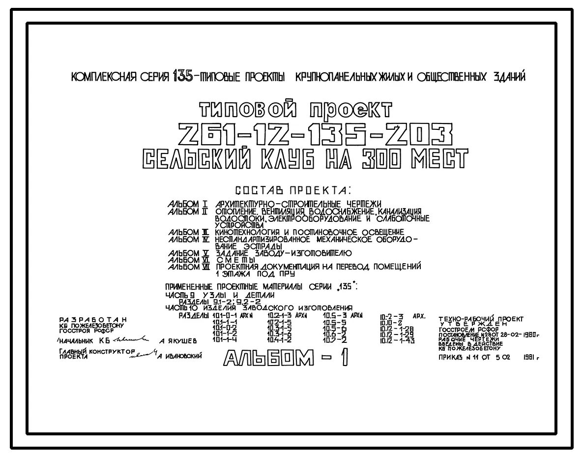 Типовой проект 261-12-135-203 Сельский клуб на 300 мест. Для строительства в 1В климатическом подрайоне, 2 и 3 климатических районах
