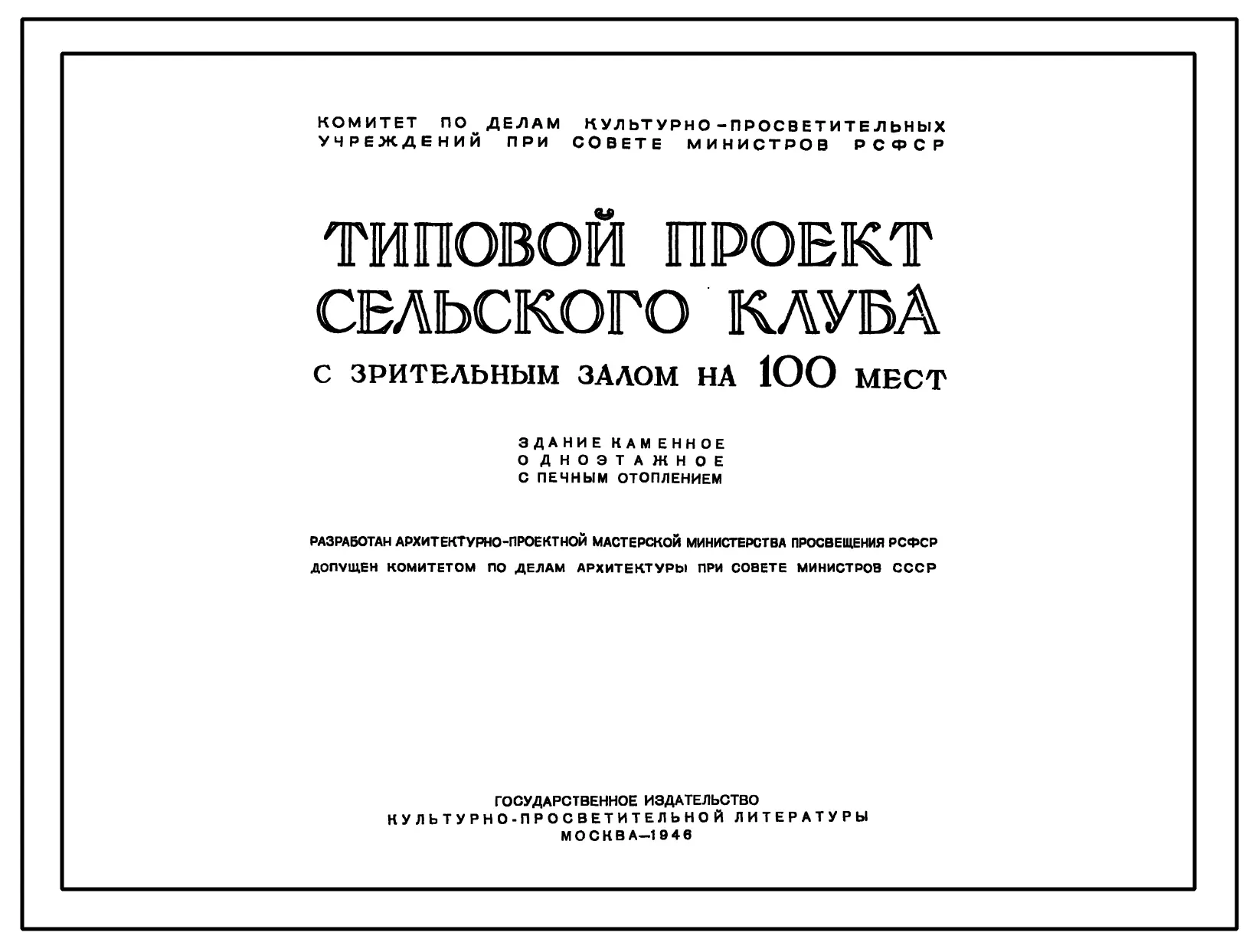 Типовой проект 182 Сельский клуб с залом на 100 мест. Стены из кирпича.