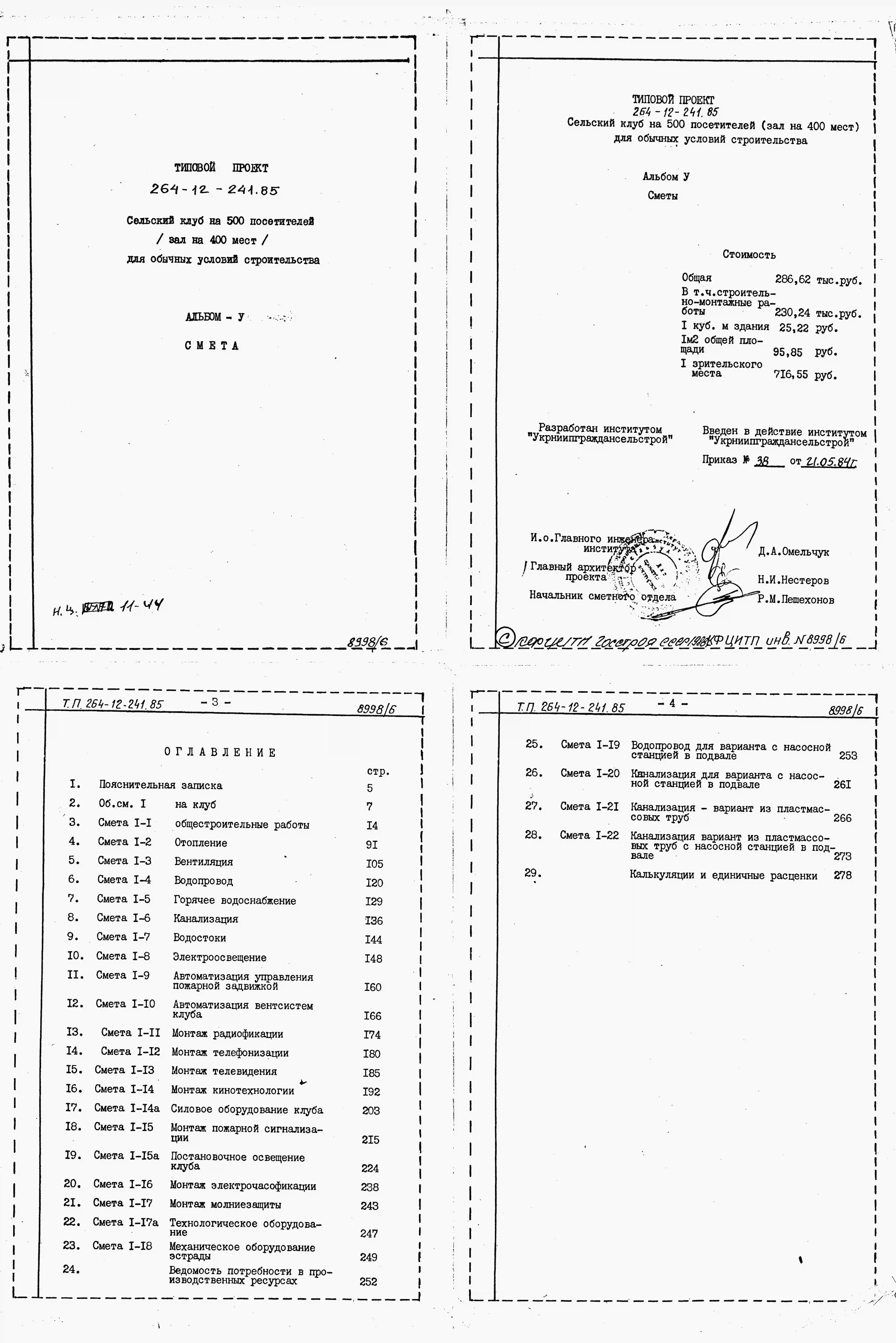 Типовой проект 264-12-241.85 Сельский клуб на 500 посетителей (зал на 400 мест)