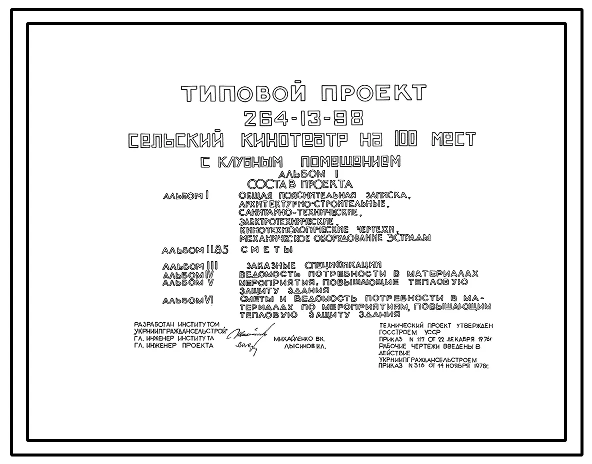 Типовой проект 264-13-98 Сельский кинотеатр на 100 мест с клубными помещениями