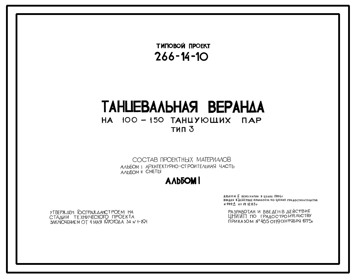 Типовой проект 266-14-10 Танцевальная веранда на 100-150 танцующих пар. Тип III (Прямоугольная со скатной кровлей).