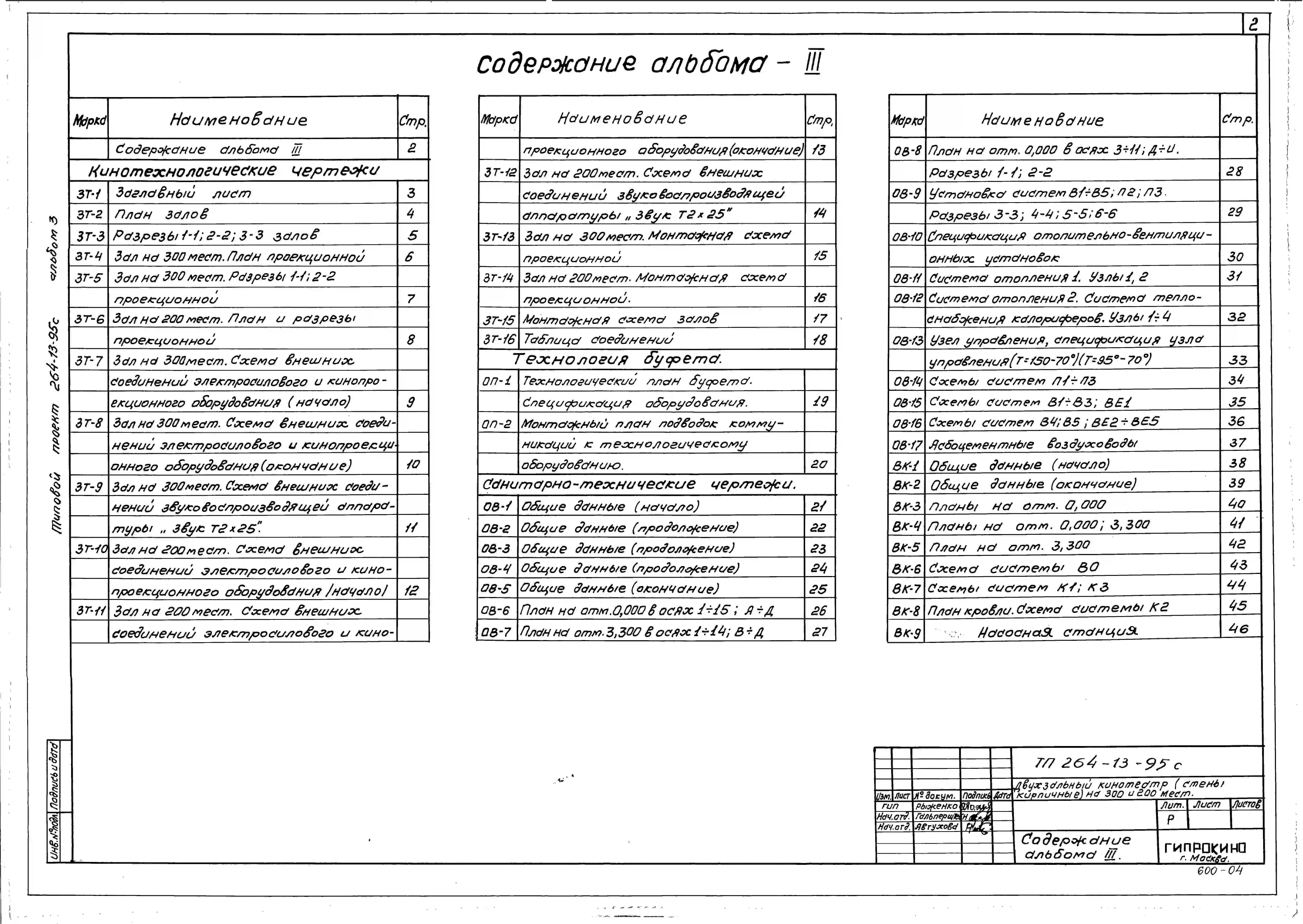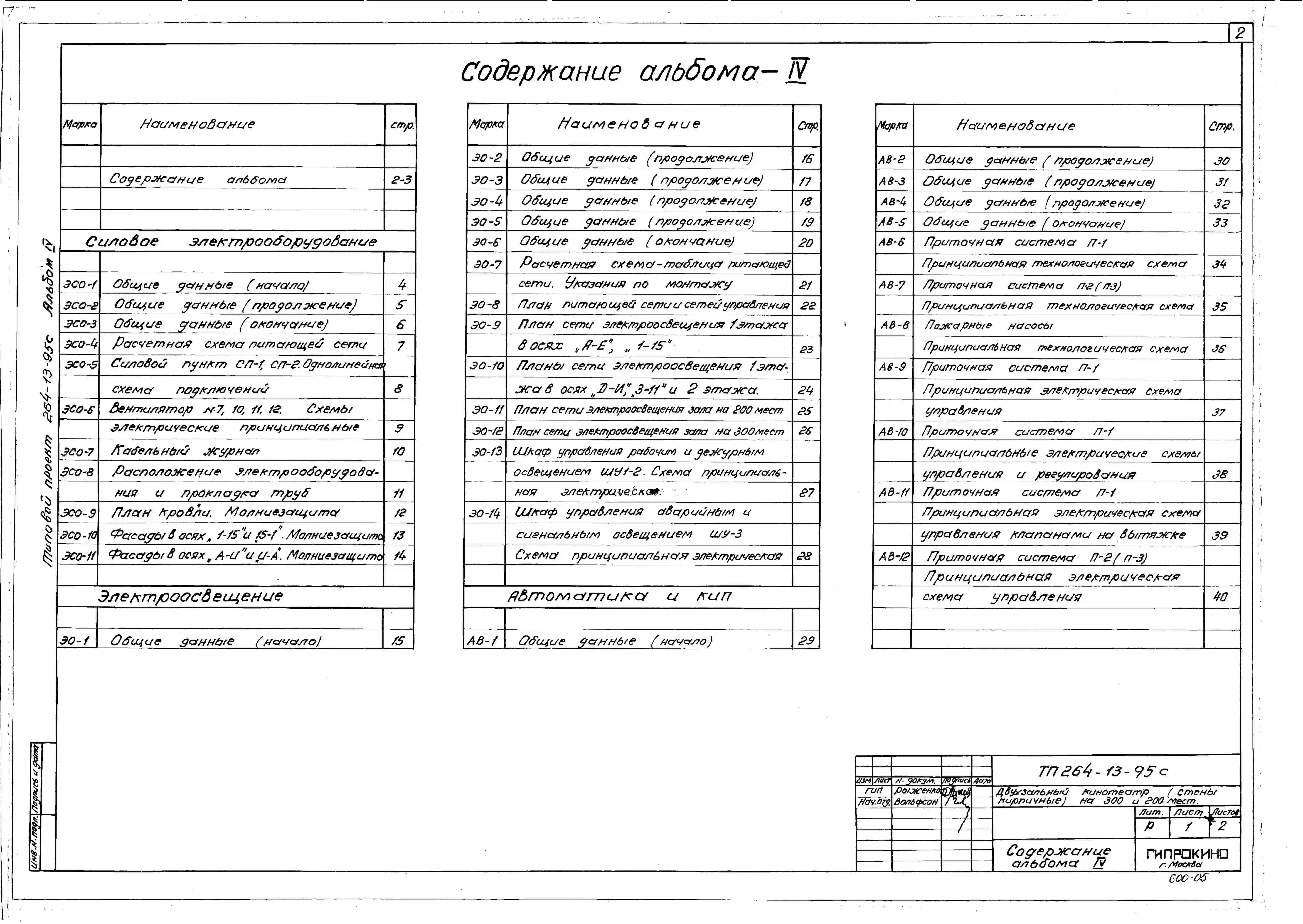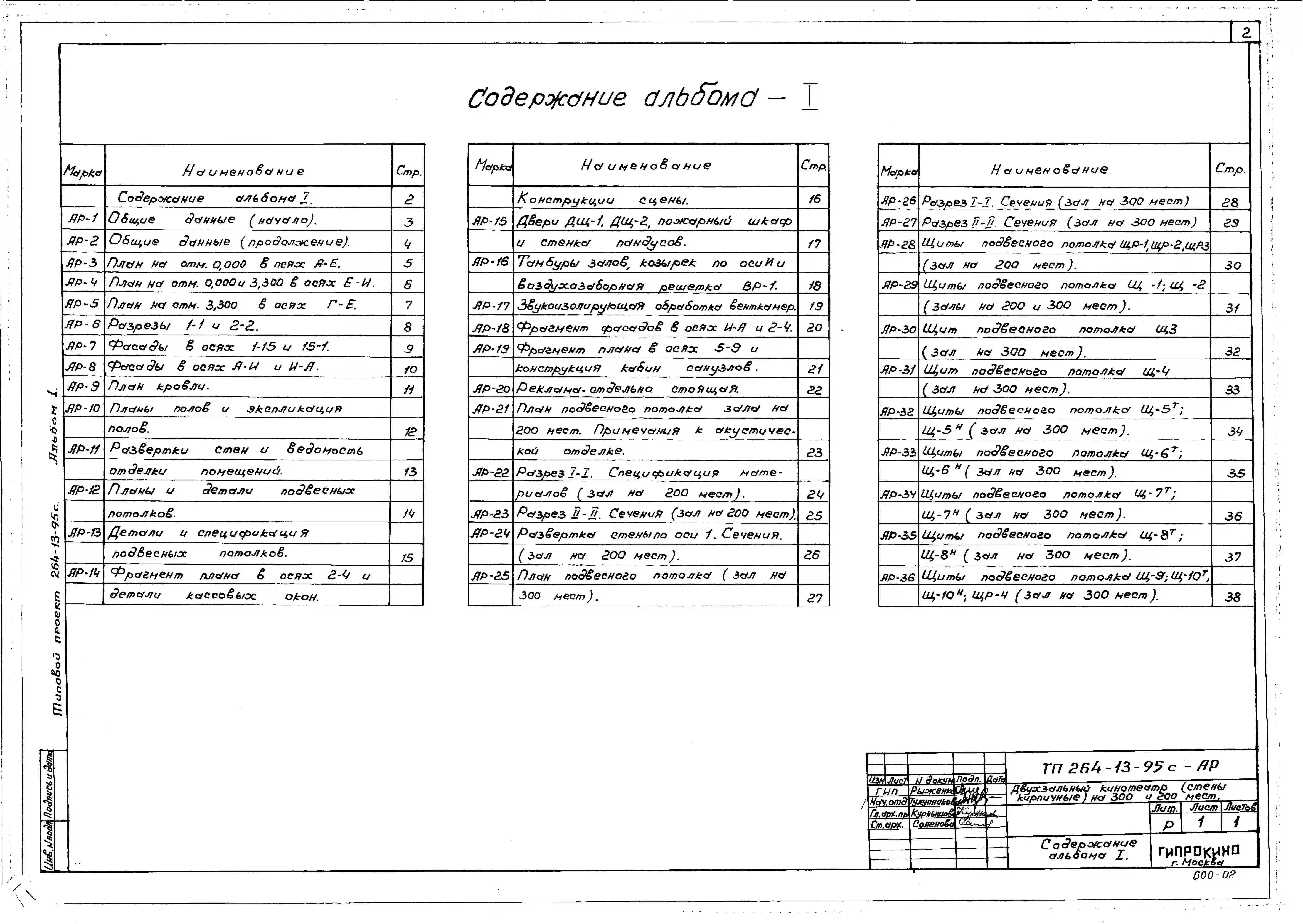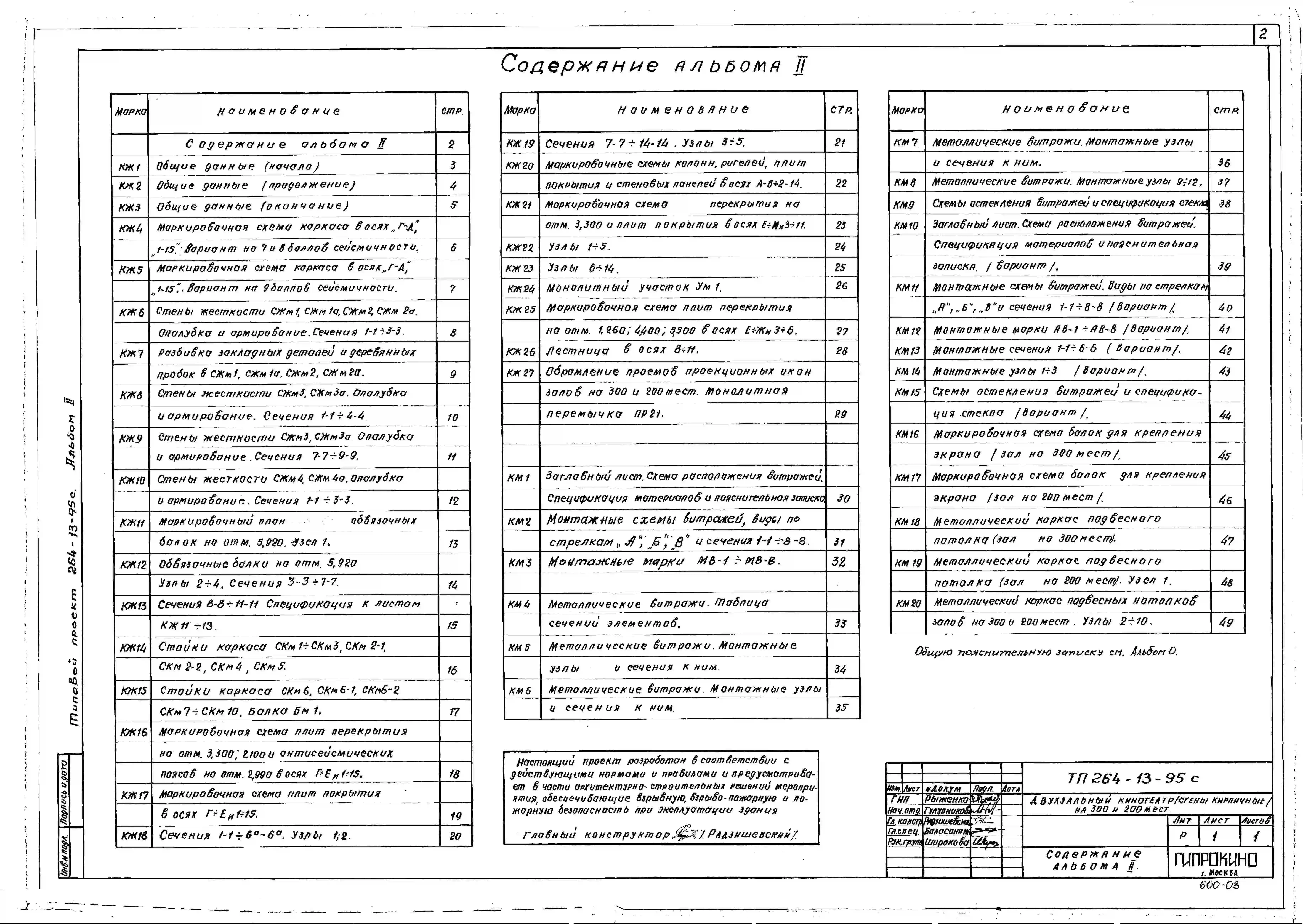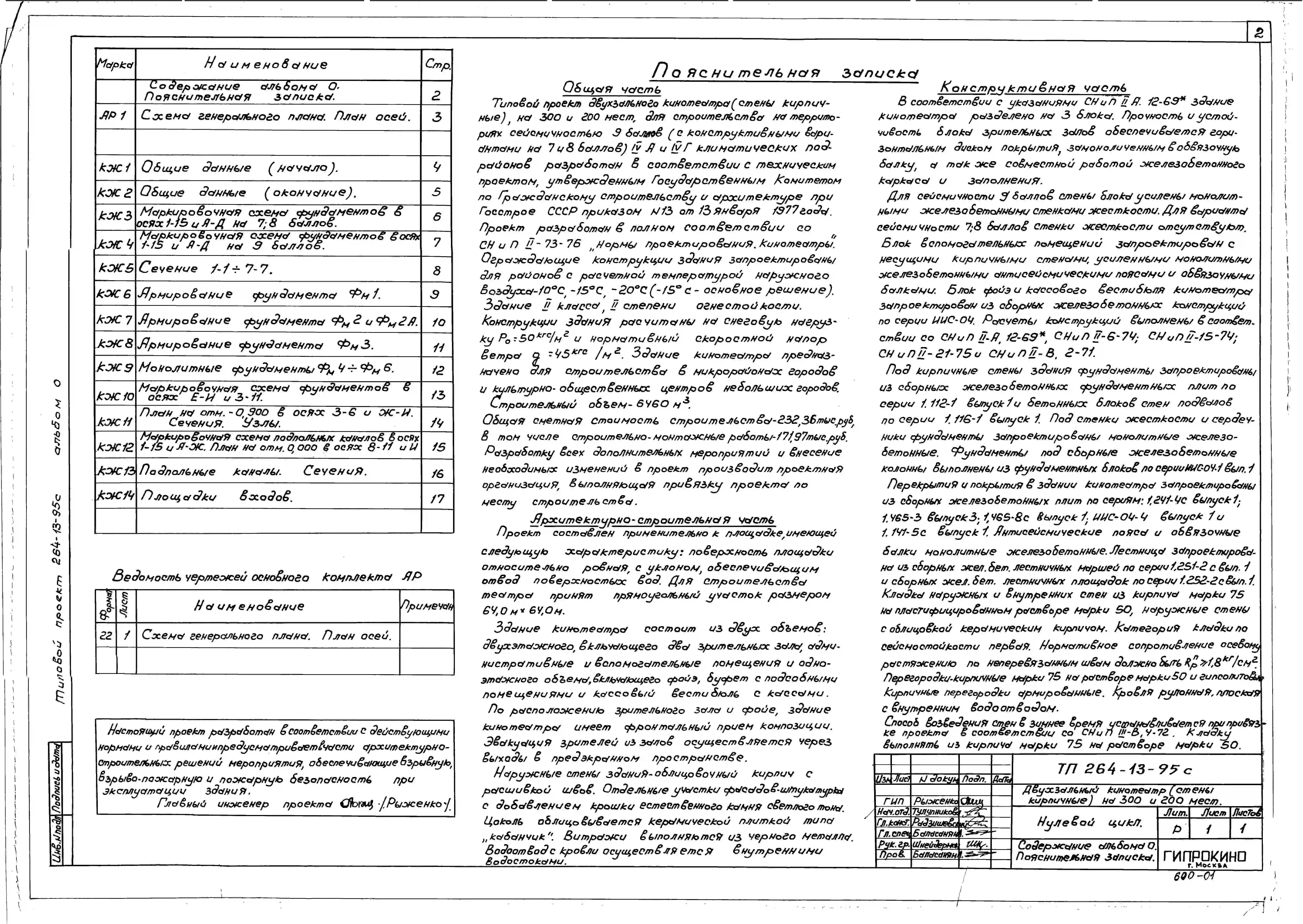 Типовой проект 264-13-95с Двухзальный кинотеатр на 300 и 200 мест для строительства в 4А и 4Г климатических подрайонах сейсмичностью 9 баллов