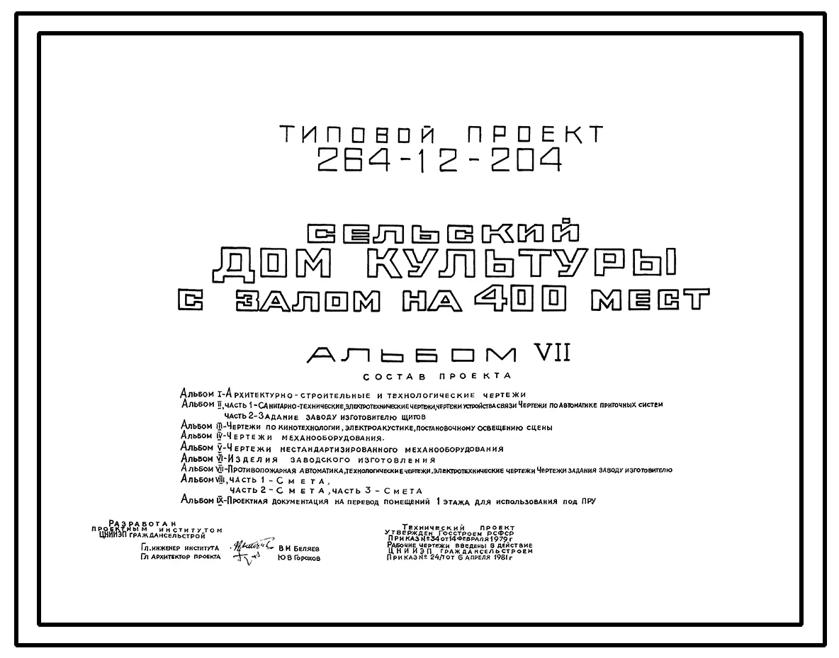 Типовой проект 264-12-204 Сельский дом культуры с залом на 400 мест. Для строительства в 1В климатическом подрайоне, 2 и 3 климатических районах