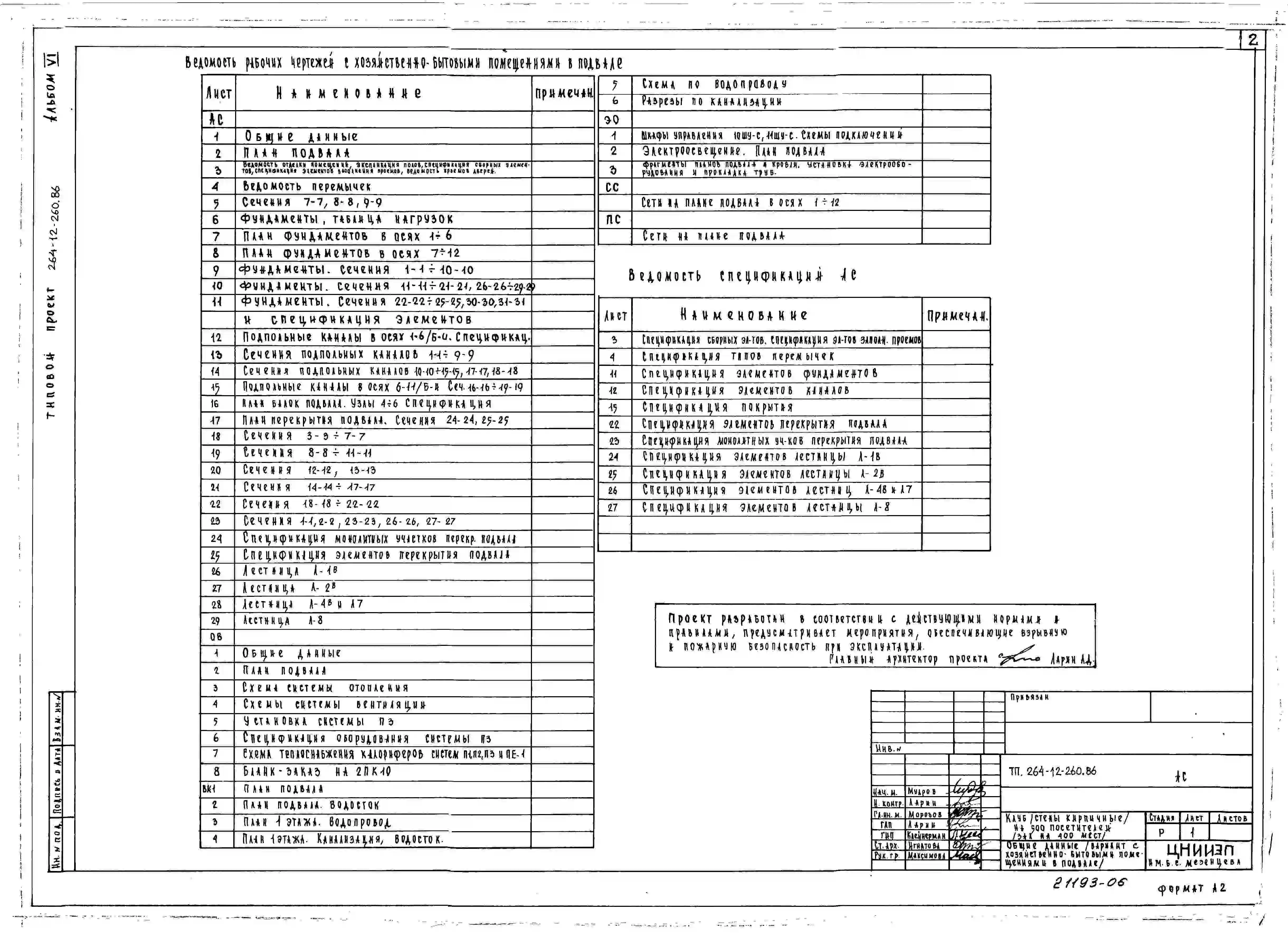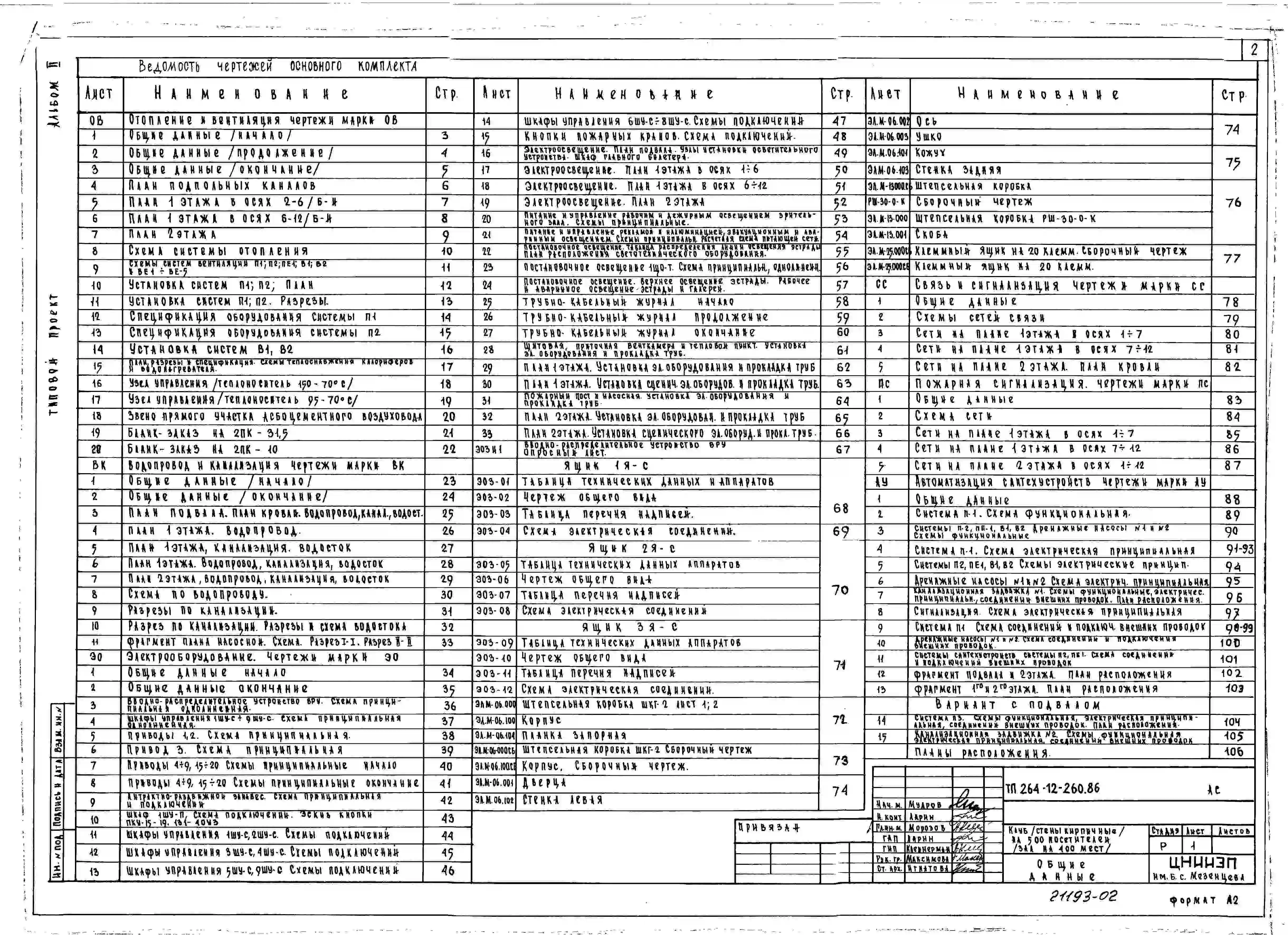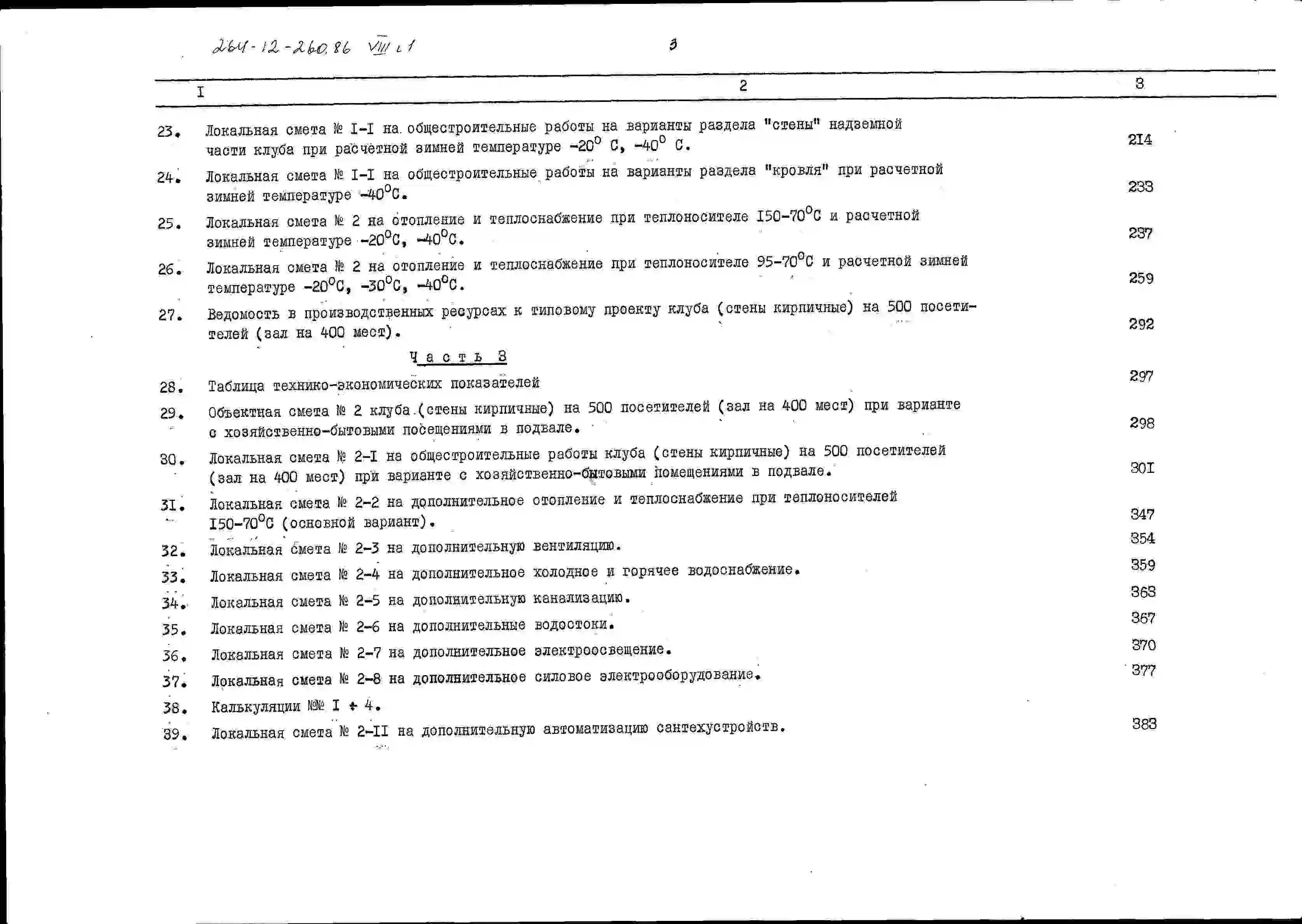 Типовой проект 264-12-260.86 Клуб на 500 посетителей (зал на 400 мест). Стены кирпичные
