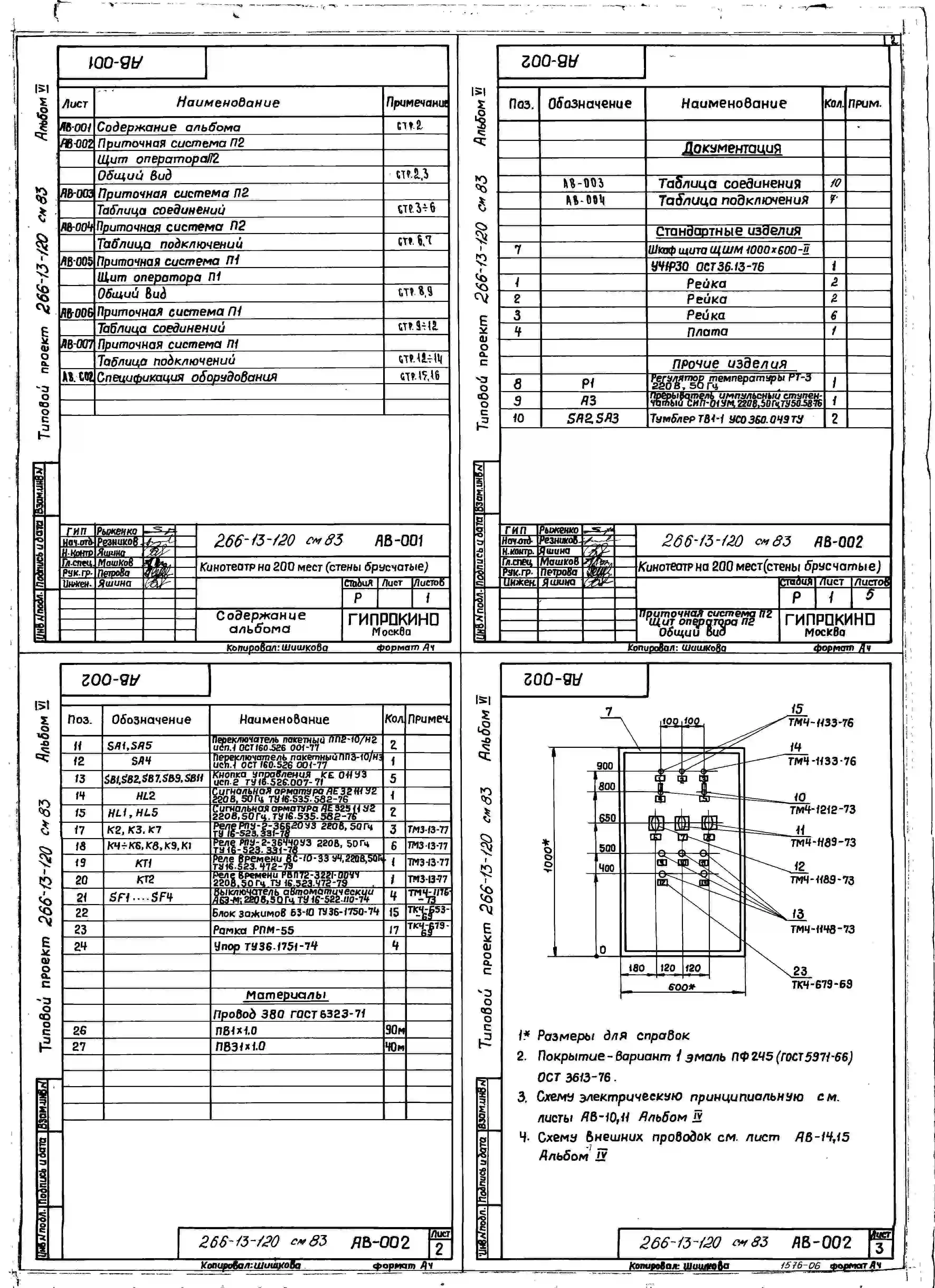 Типовой проект 266-13-120см.83 Кинотеатр на 200 мест (стены брусчатые). Для строительства в 1А,1Б,1Г климатических подрайонах сейсмичностью 7 и 8 баллов на вечномерзлых грунтах с использованием по 1 принципу.