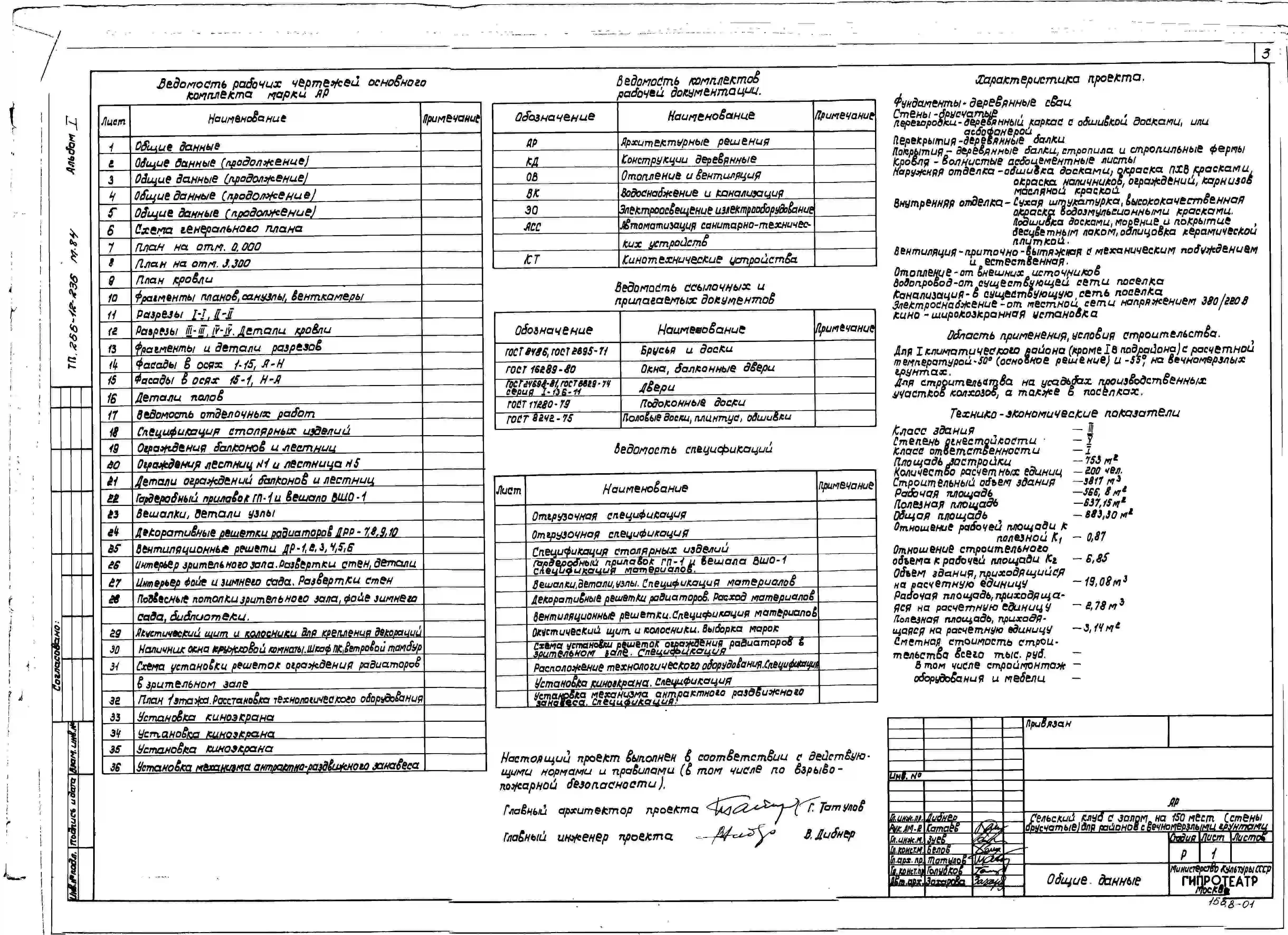 Типовой проект 266-12-236м.84 Сельский клуб с залом на 150 мест (стены брусчатые). Для строительства в 1А,1Б,1Г климатических подрайонах на вечномерзлых грунтах.