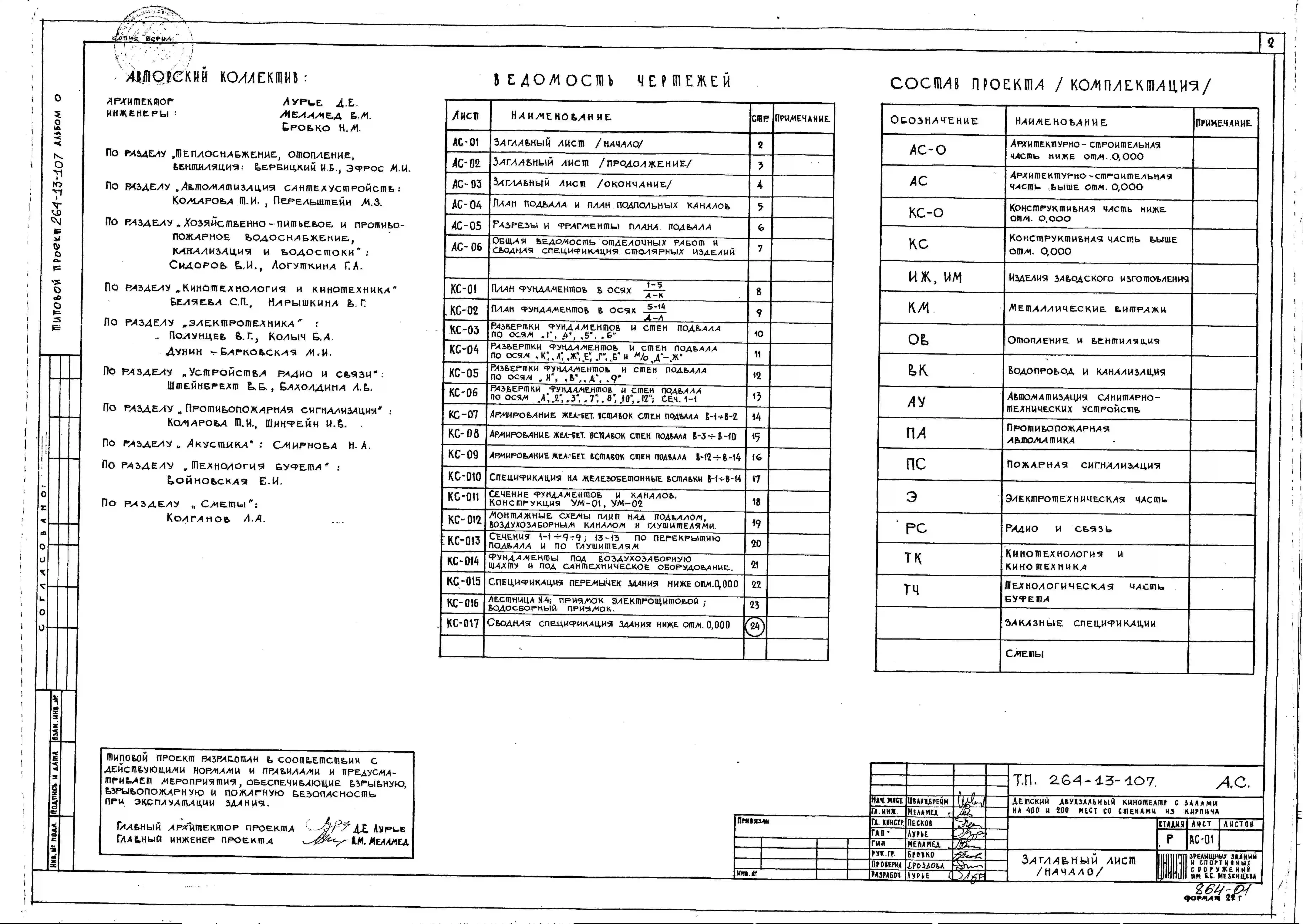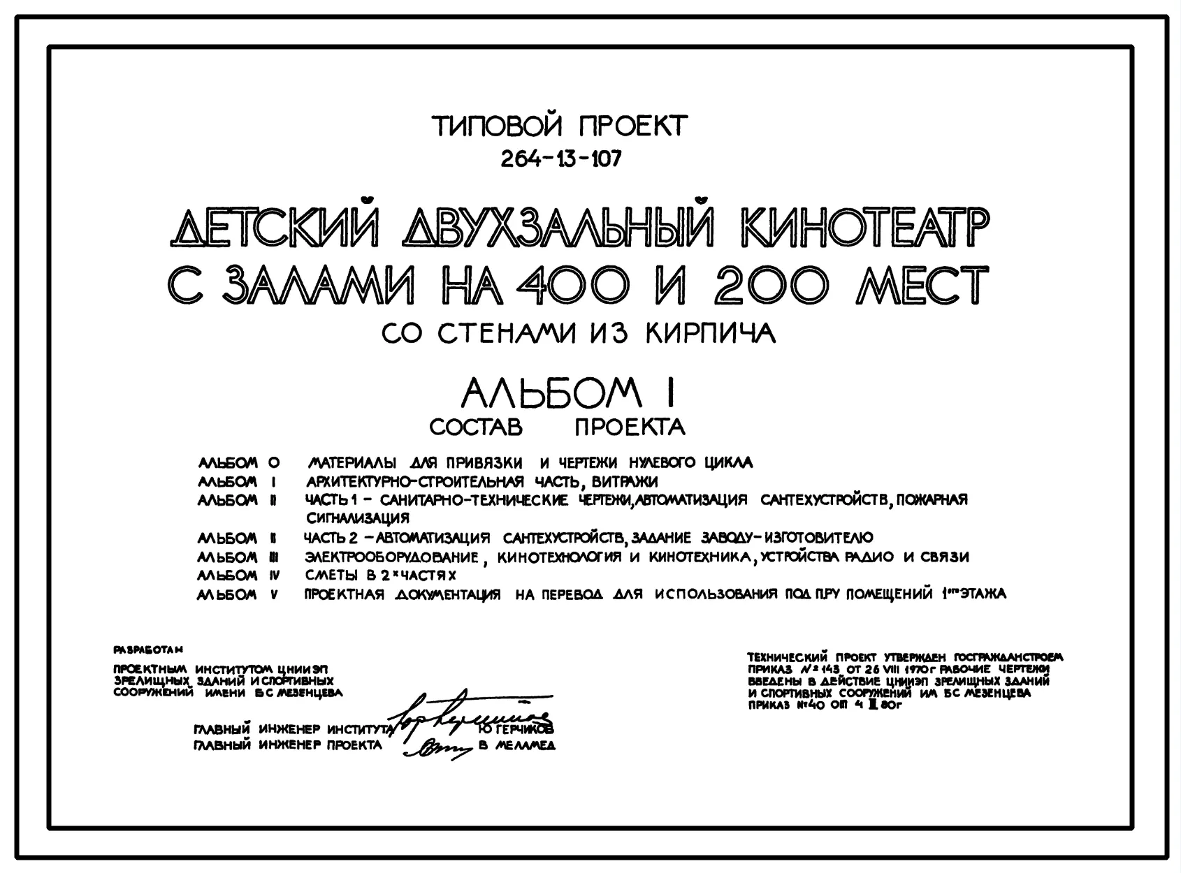 Типовой проект 264-13-107 Детский двухзальный кинотеатр с залами на 400 и 200 мест. Для строительства в 1В климатическом подрайоне, 2 и 3 климатических районах