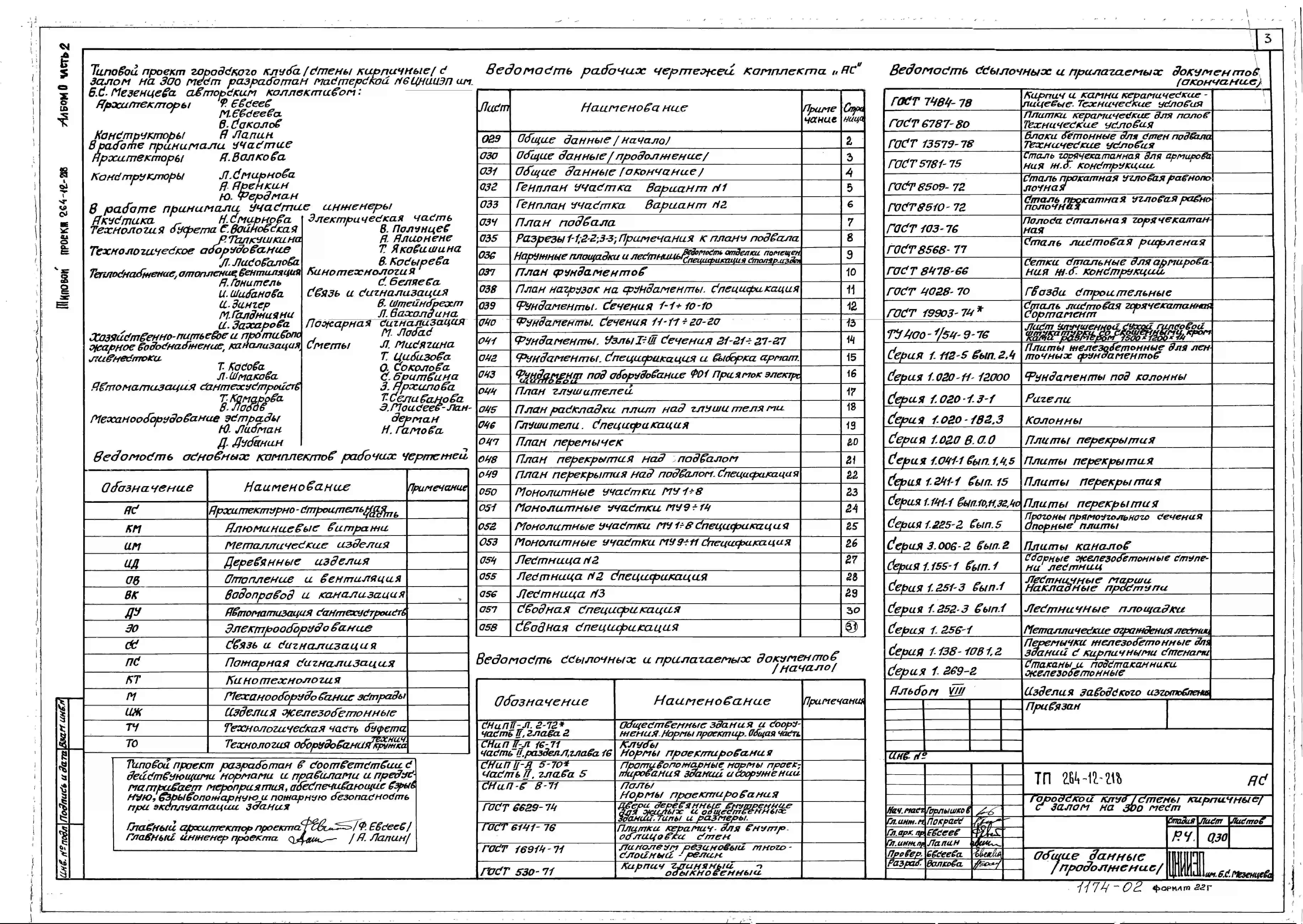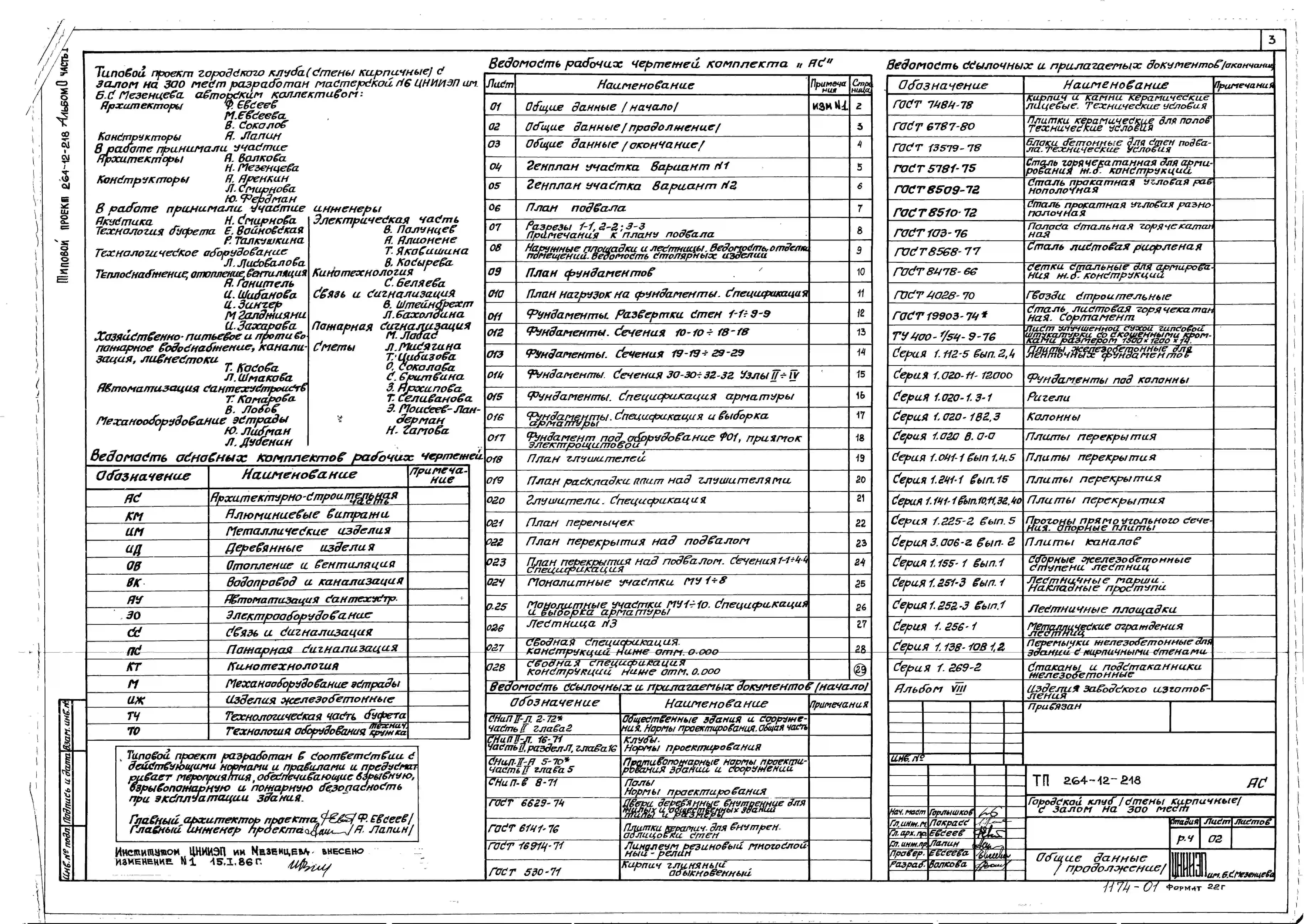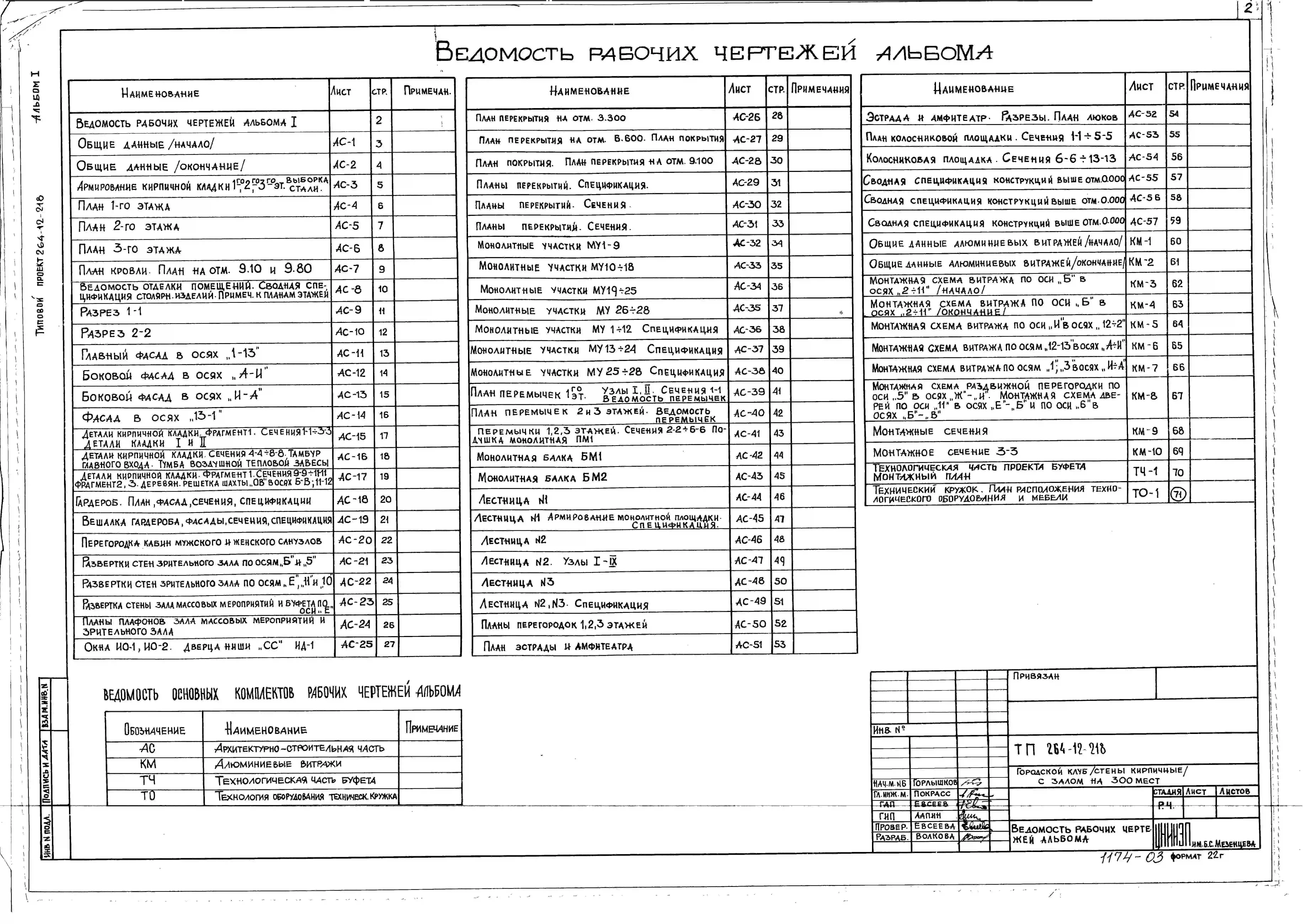 Типовой проект 264-12-218 Городской клуб (стены кирпичные) с залом на 300 мест.