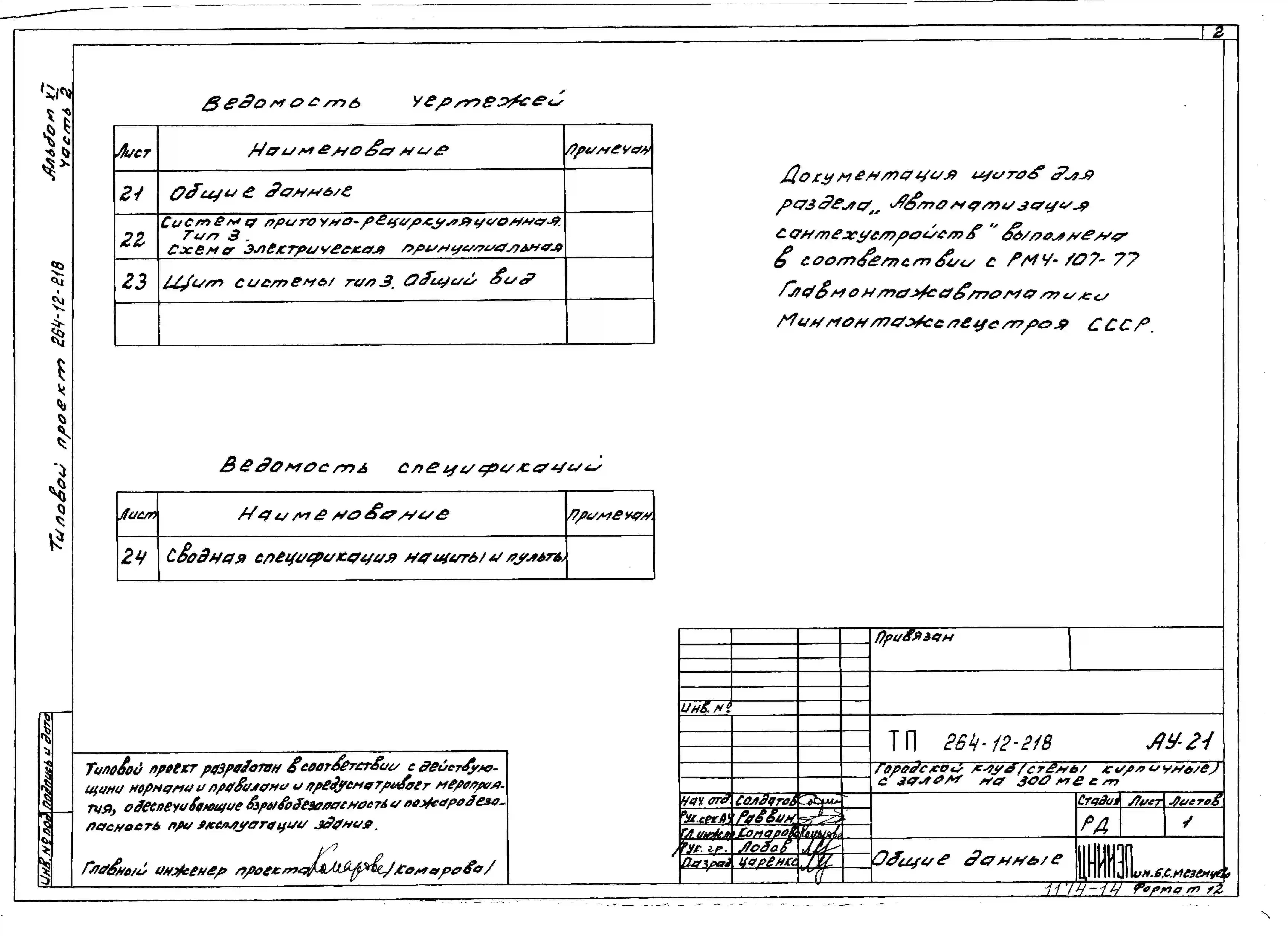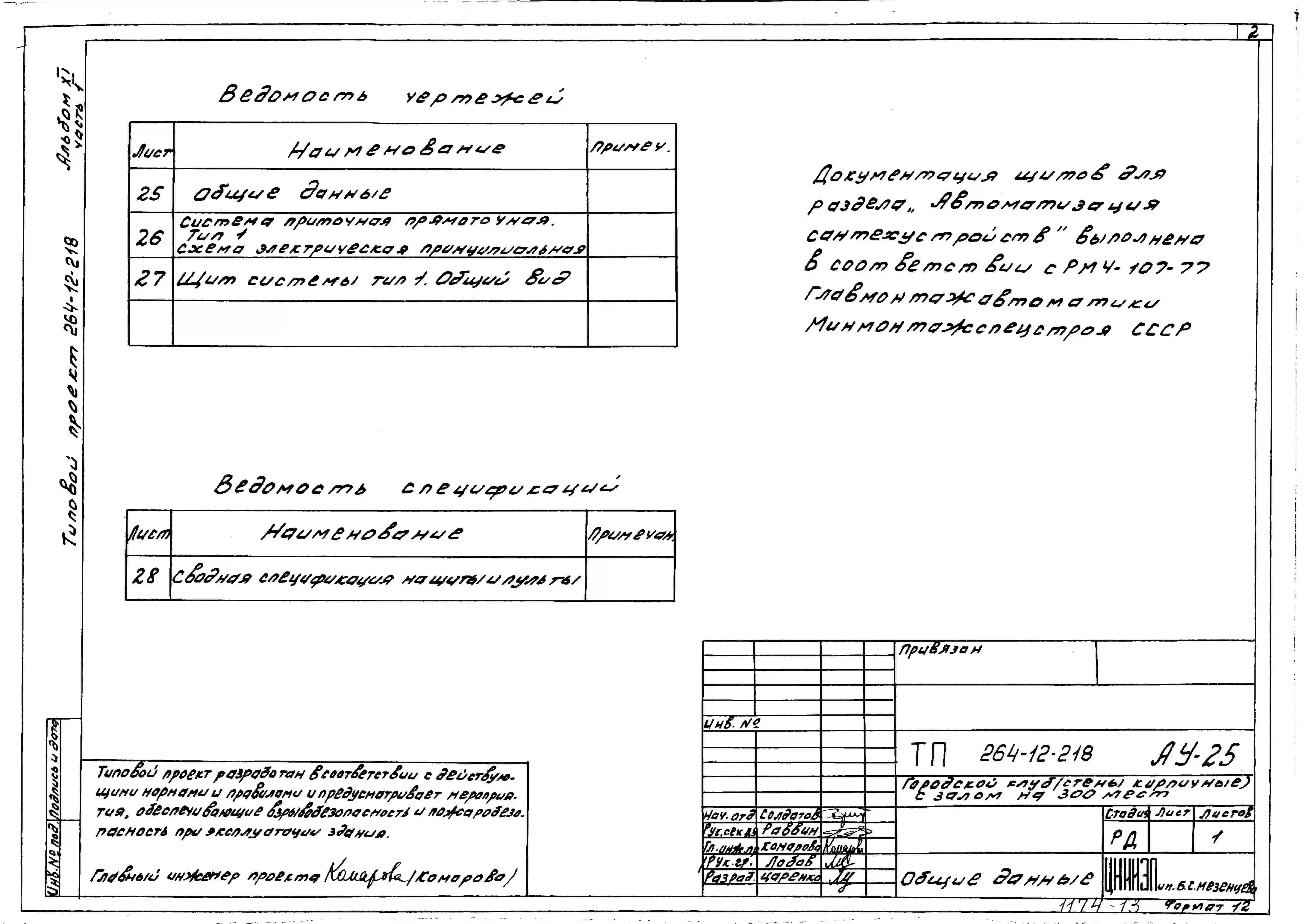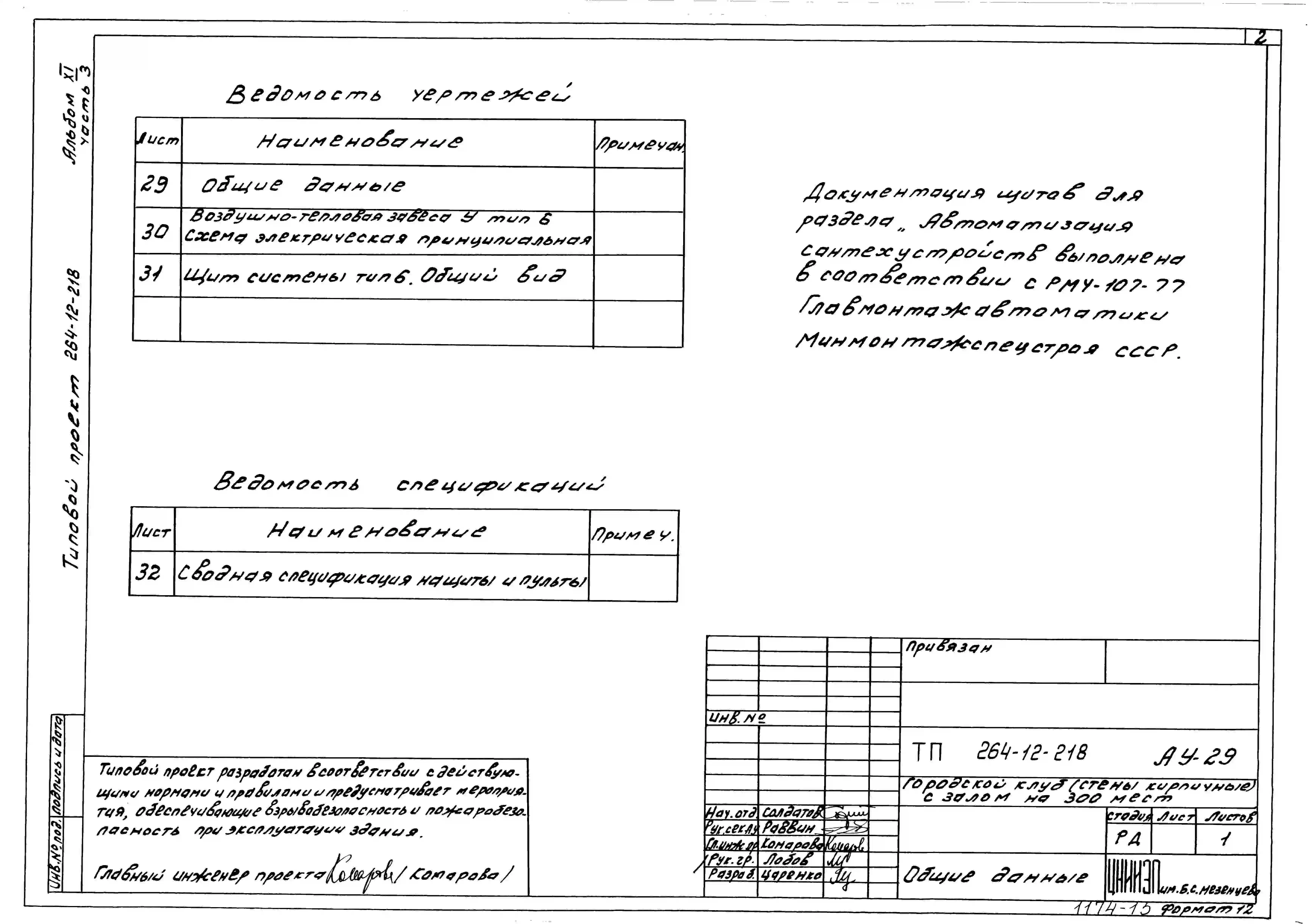 Типовой проект 264-12-218 Городской клуб (стены кирпичные) с залом на 300 мест.