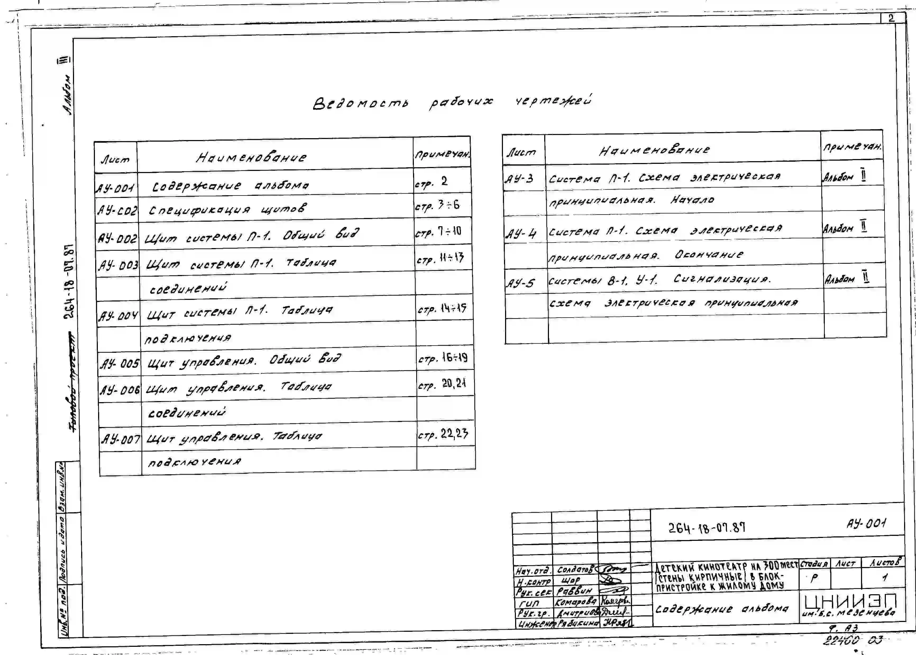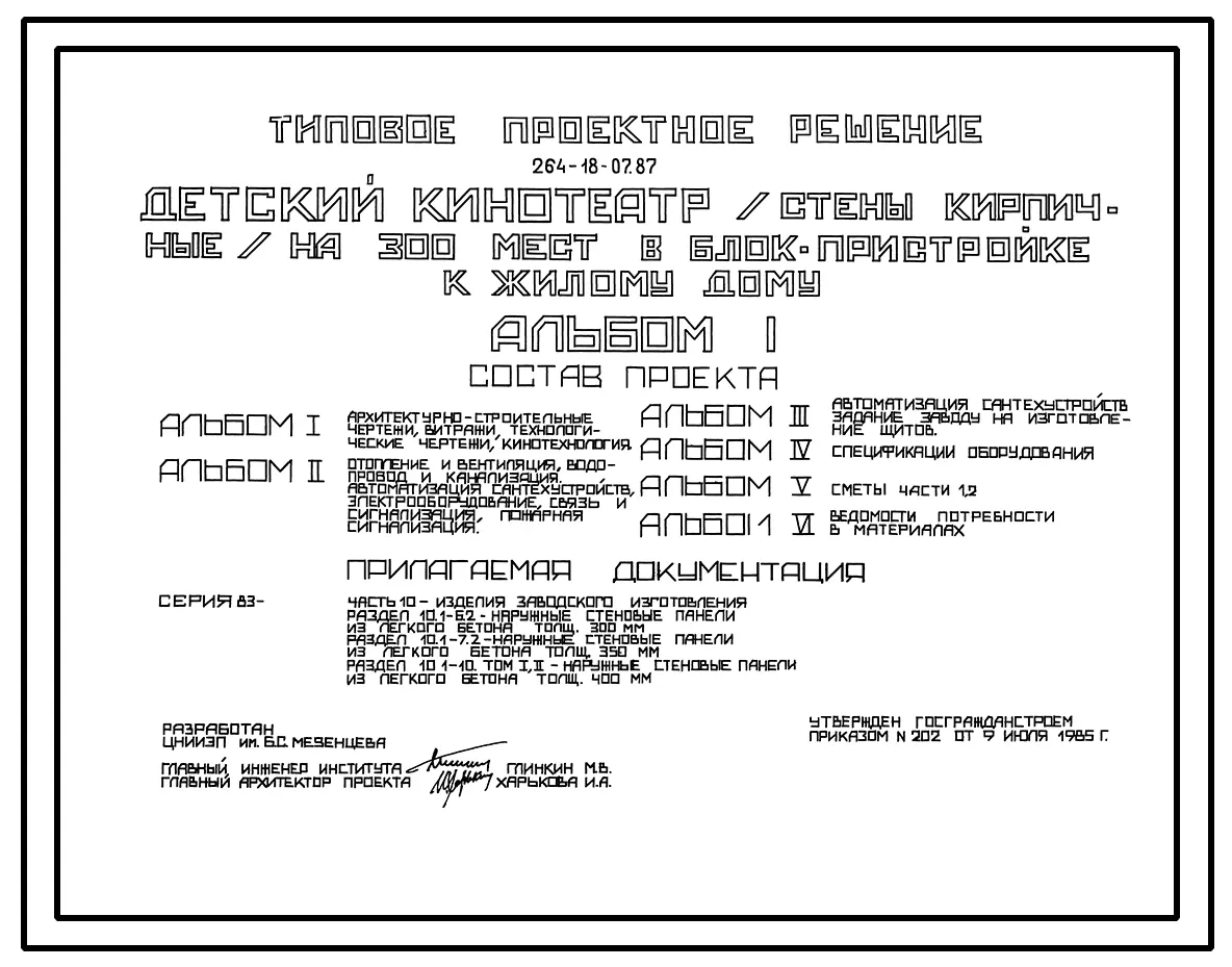 Типовой проект 264-18-07.87 Детский кинотеатр на 300 мест в блок-пристройке к жилому дому