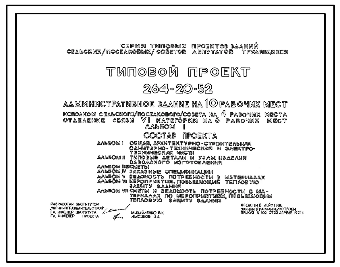 Типовой проект 264-20-52 Административное здание на 10 рабочих мест
