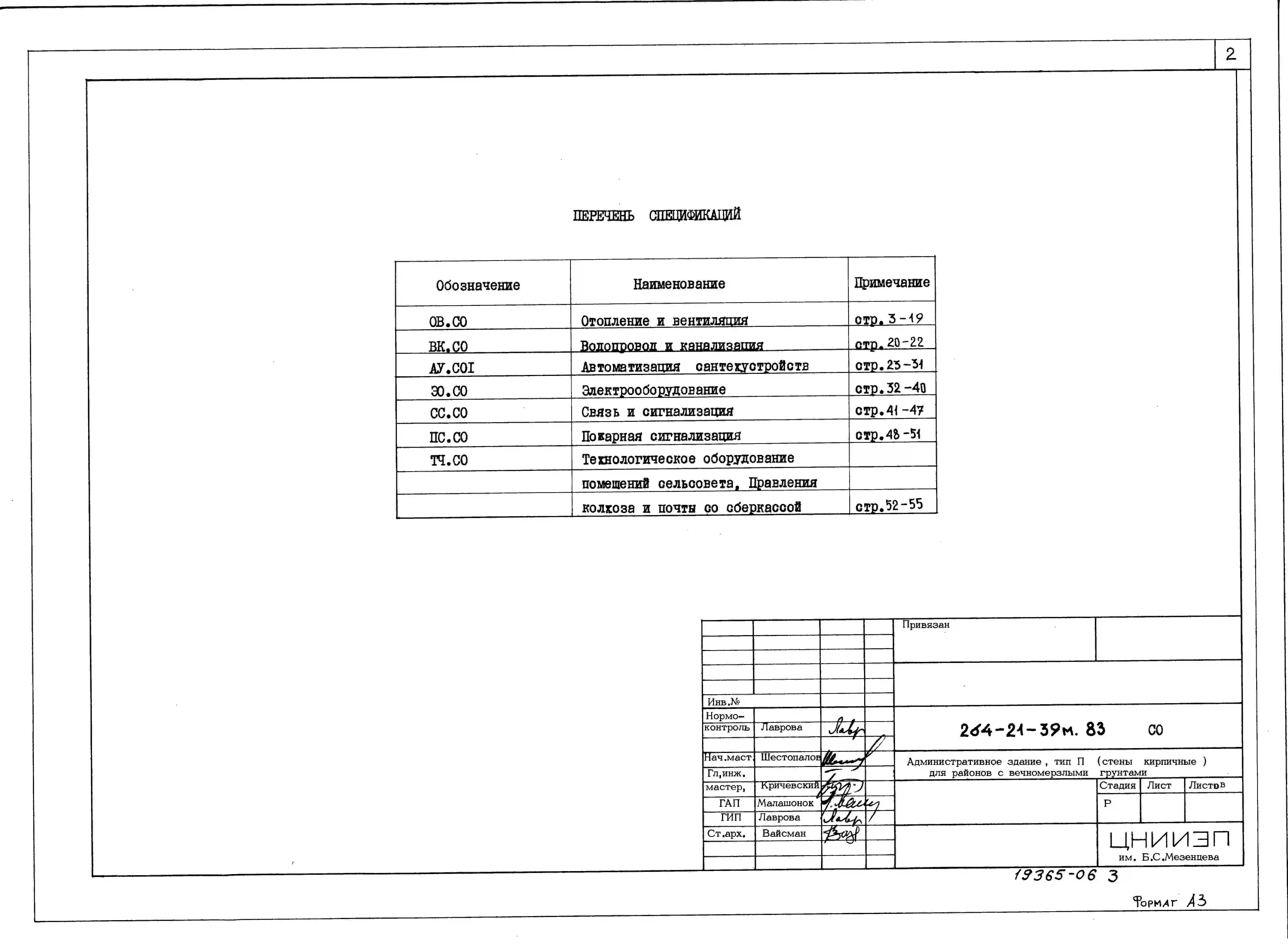 Типовой проект 264-21-39м.83 Административное здание (стены кирпичные). Для строительства в 1А,1Б и 1Г климатических подрайонах на вечномерзлых грунтах.