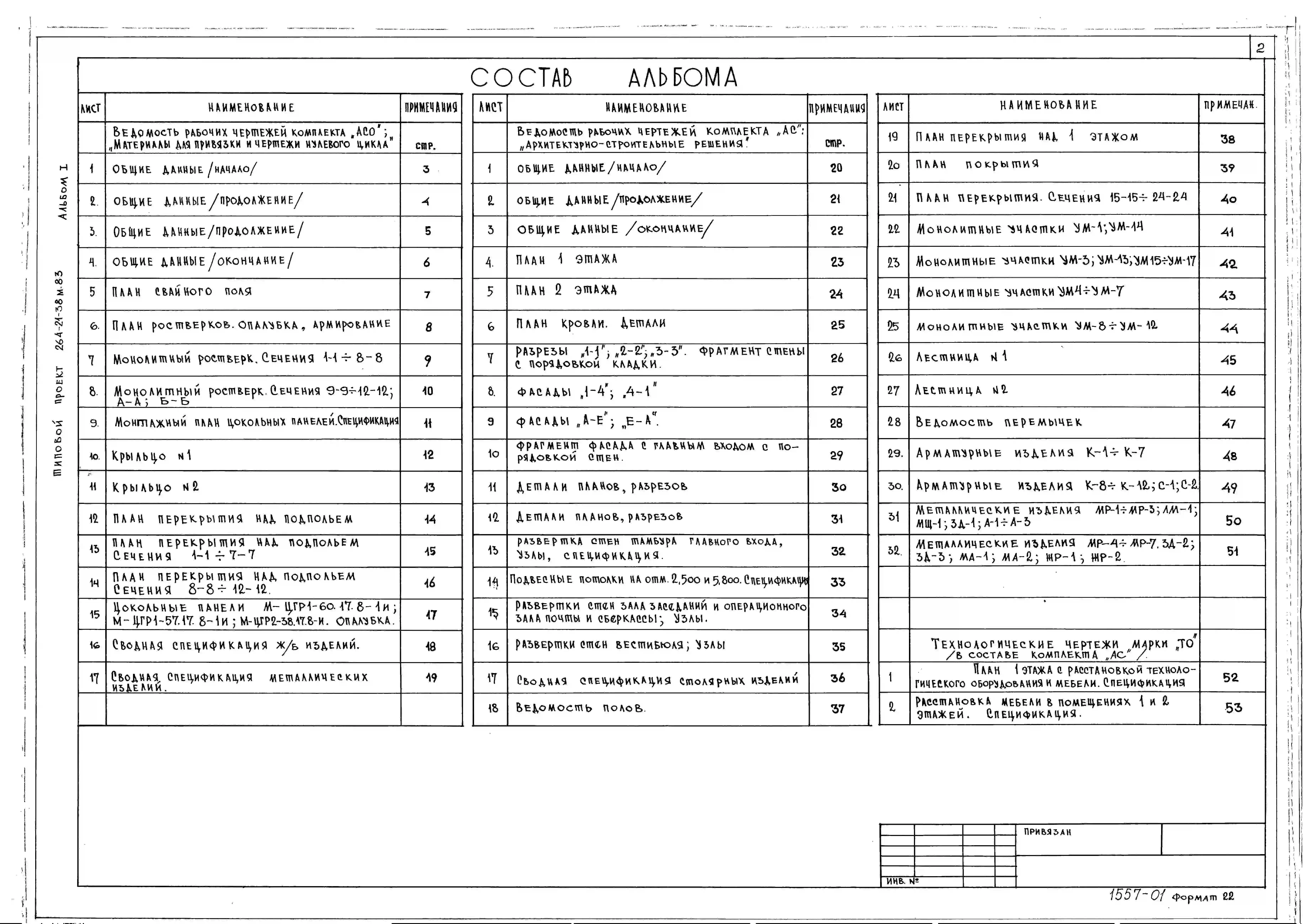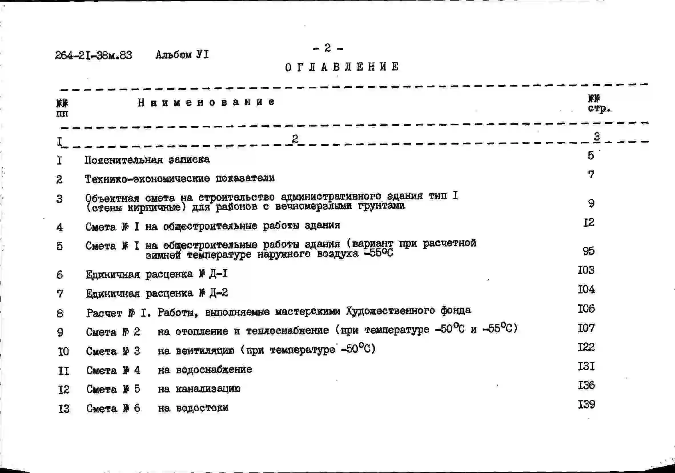 Типовой проект 264-21-38м.83 Административное здание (стены кирпичные). Для строительства в 1А,1Б,1Г климатических подрайонах на вечномерзлых грунтах, используемых по принципу 1.