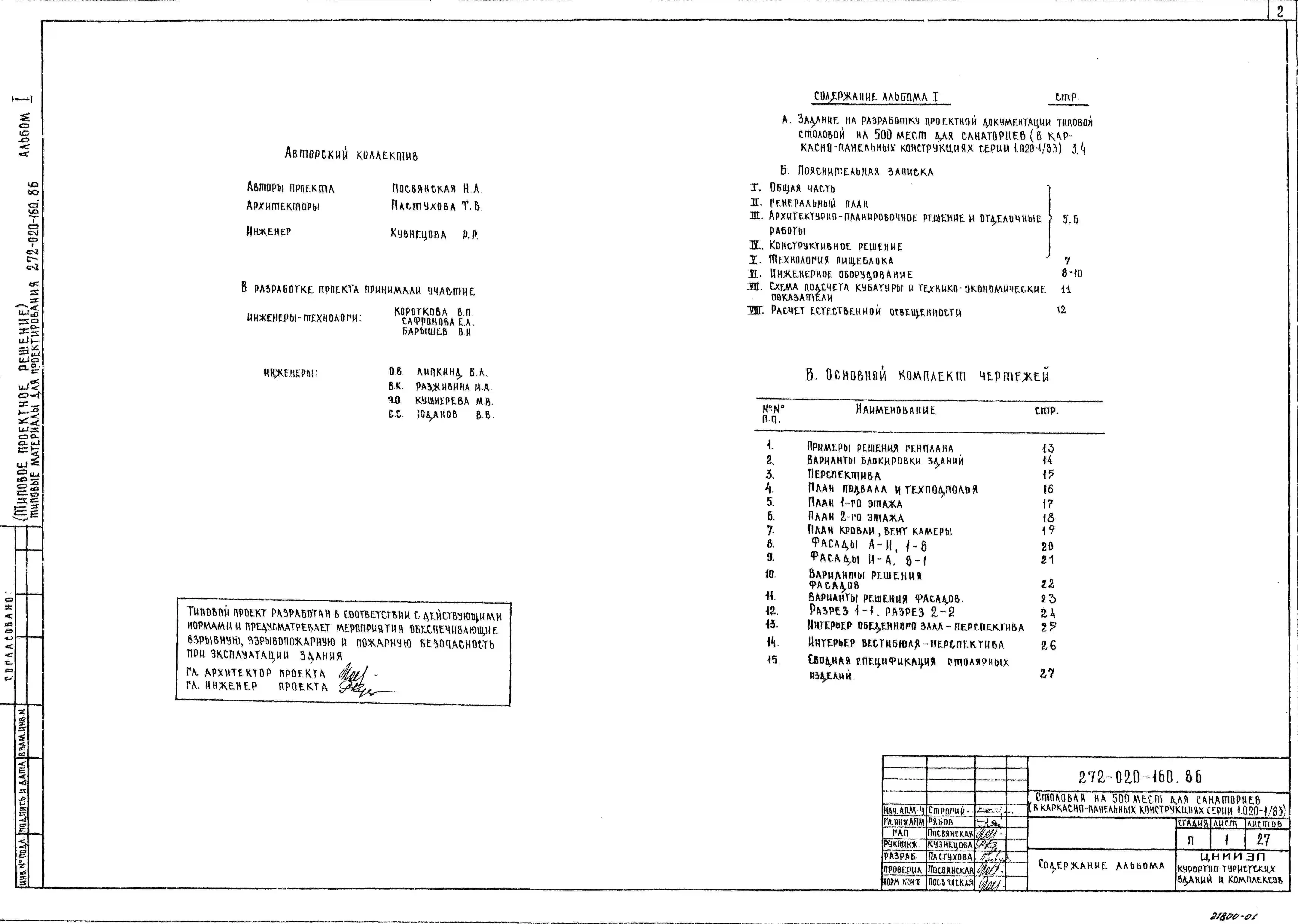 Типовой проект 272-020-160.86 Столовая на 500 мест для санаториев.Здание в конструкциях серии 1.020-1/83