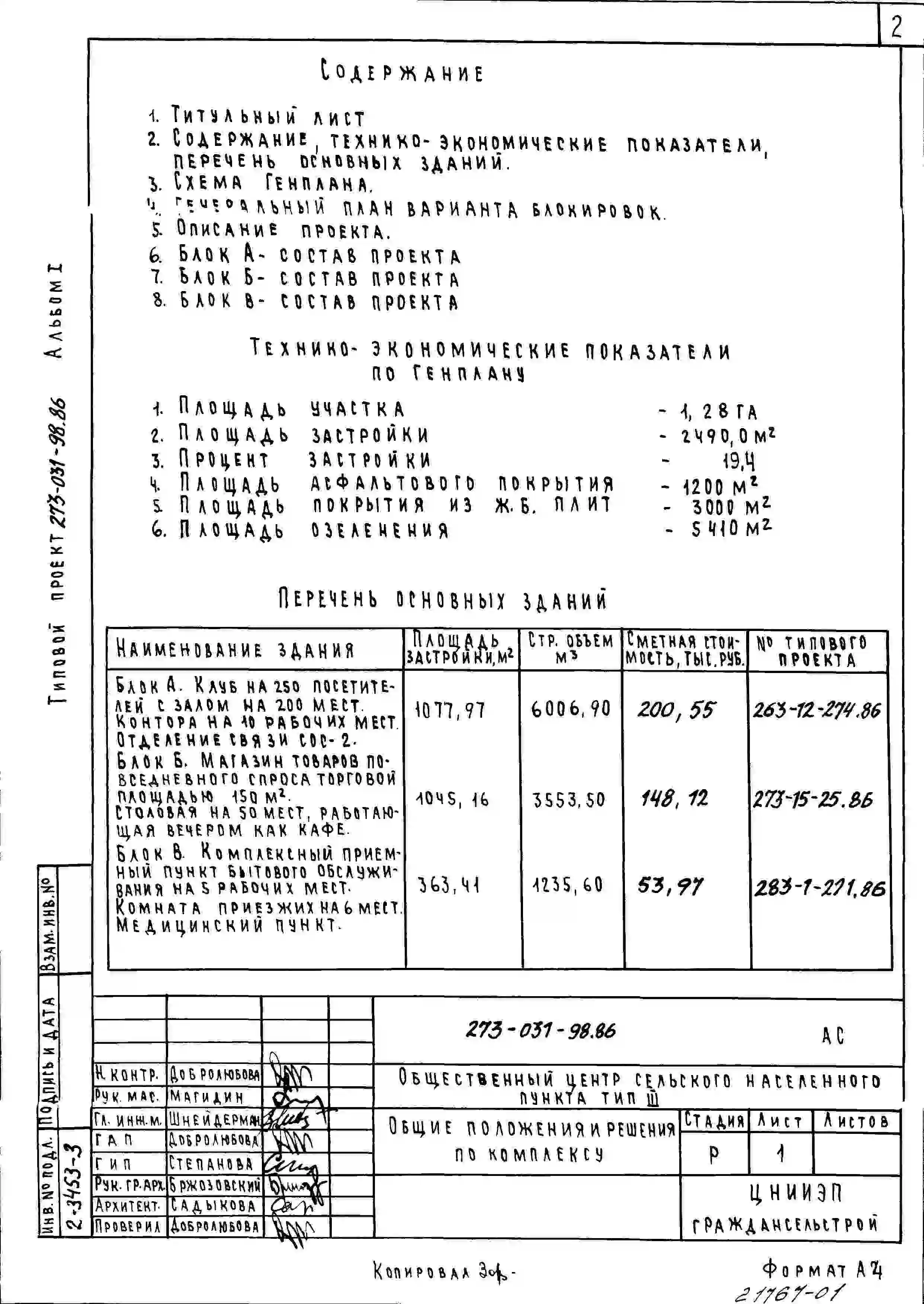 Типовой проект 273-031-98.86 Общественный центр сельского населенного пункта Тип 3 стены из крупных легко-бетонных блоков.
