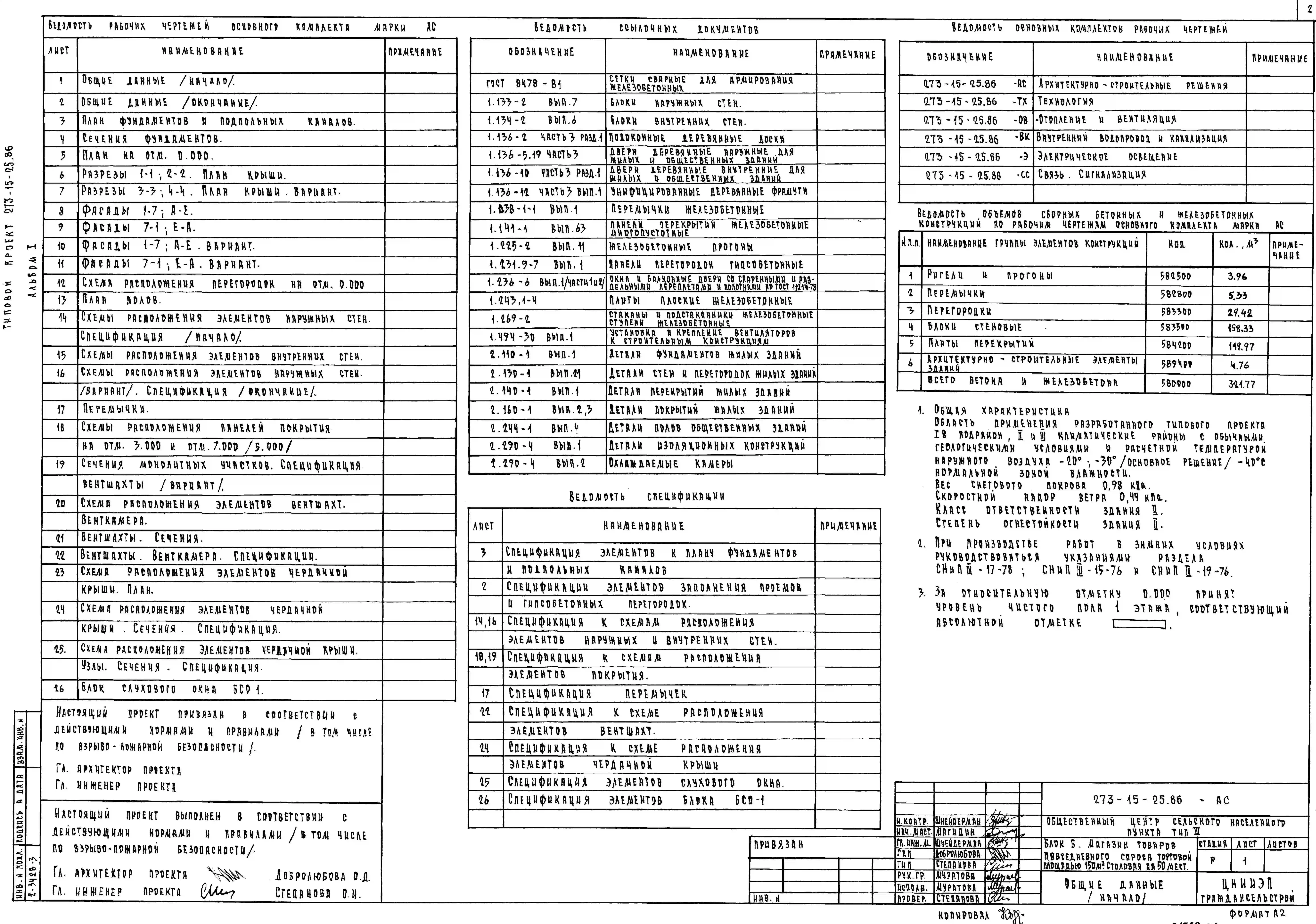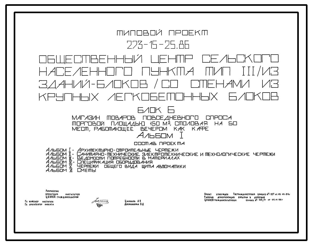 Типовой проект 273-15-25.86 Общественный центр сельского населенного пункта (из зданий-блоков). Тип 3. Стены из крупных легкобетонных блоков. Блок. Б Магазин 150 м.кв, столовая на 50 мест (кафе в вечернее время)