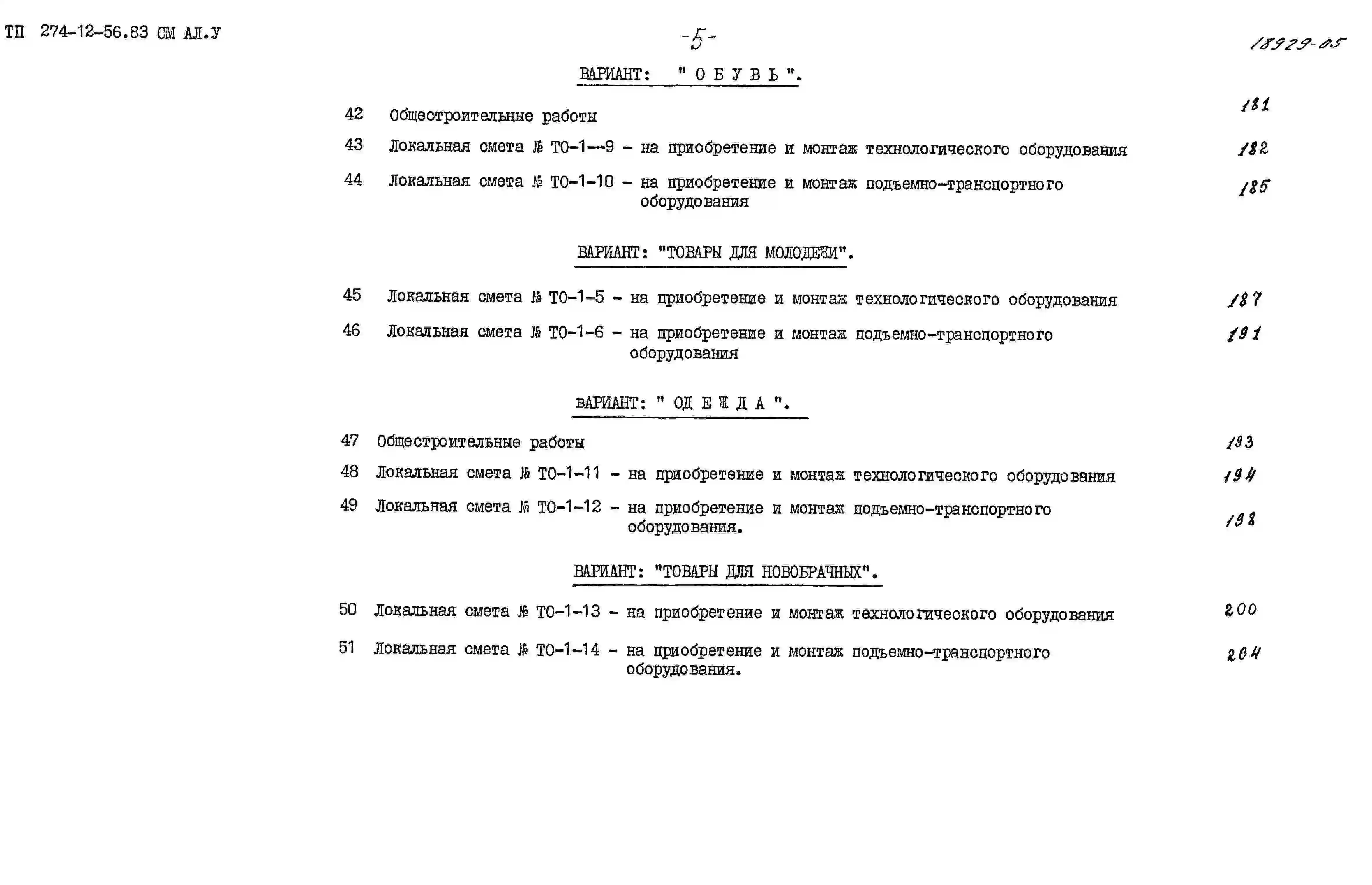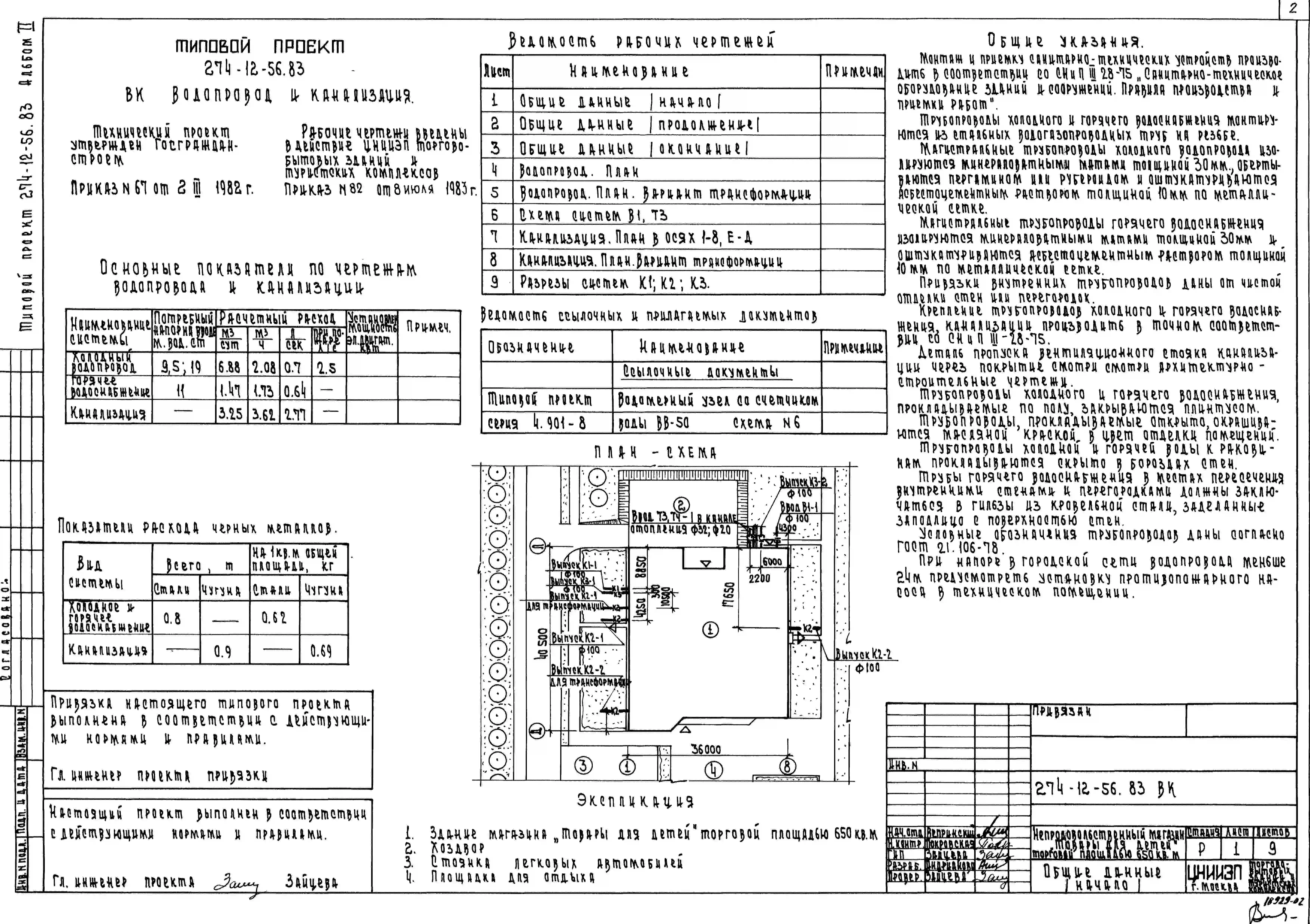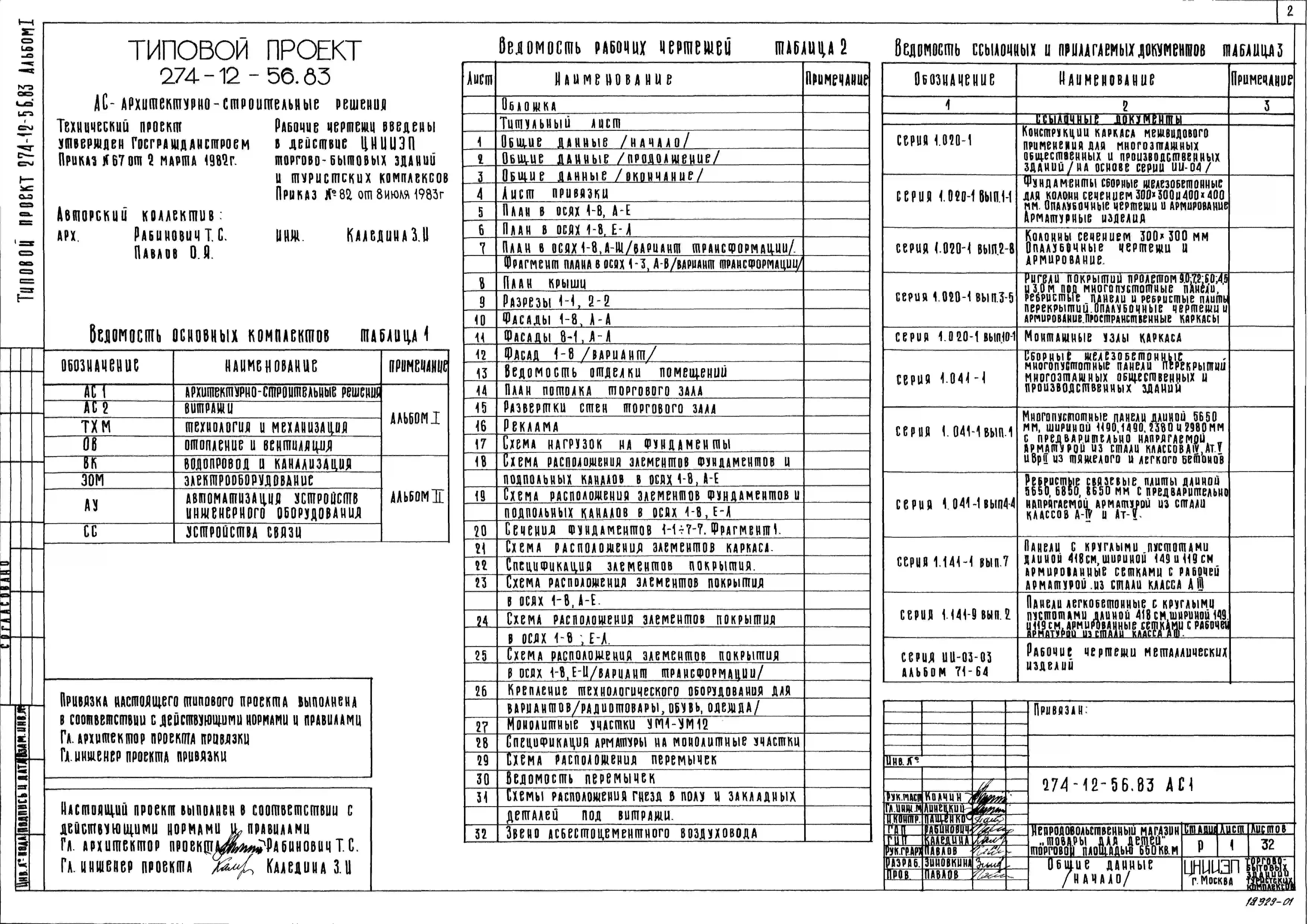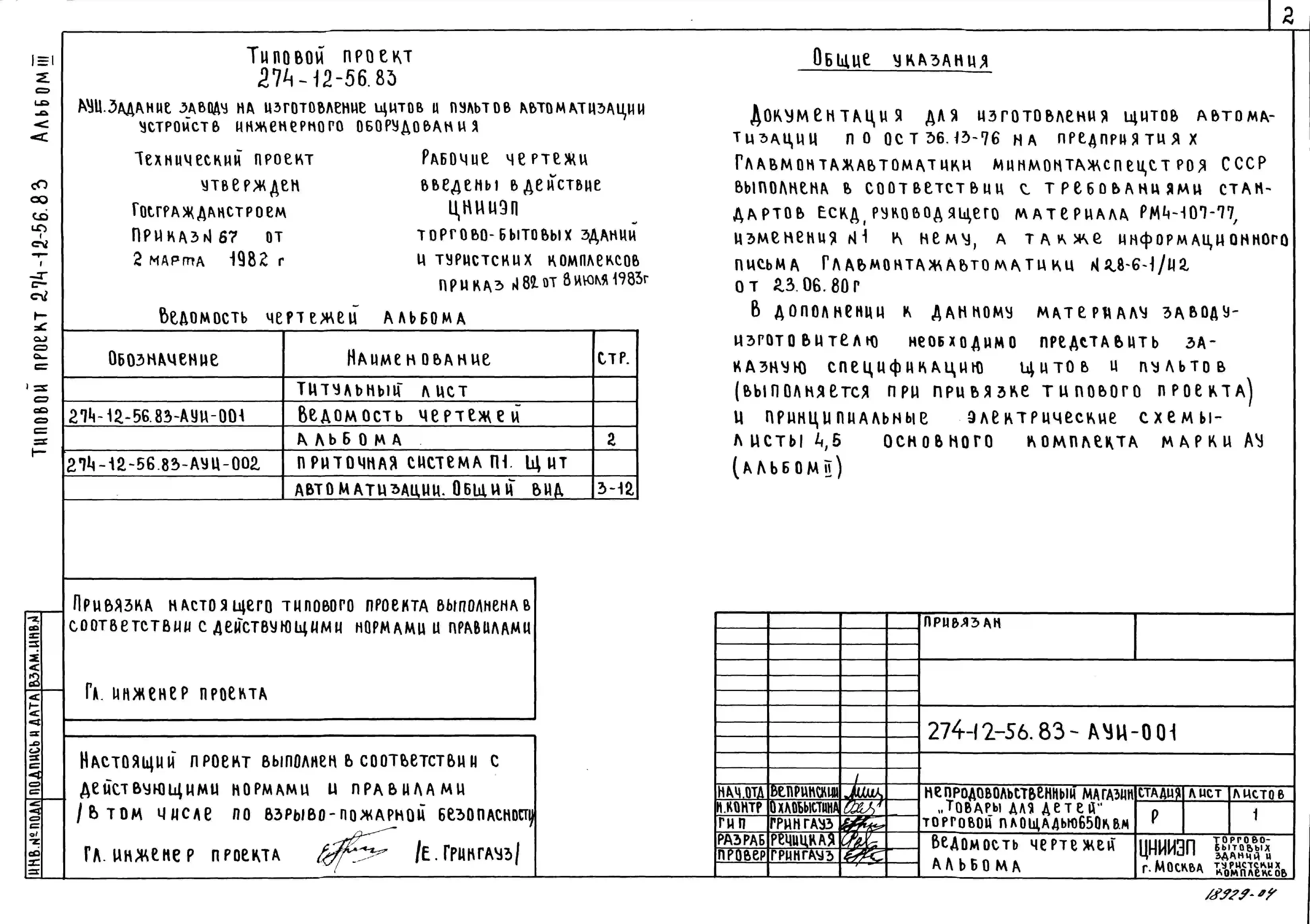 Типовой проект 274-12-56.83 Унифицированное здание непродовольственного магазина «Товары для детей» торговой площадью 650 м, с вариантами технических планировок: «Товары для молодёжи», «Радиотовары», «Товары для новобрачных», «Обувь», «Одежда».