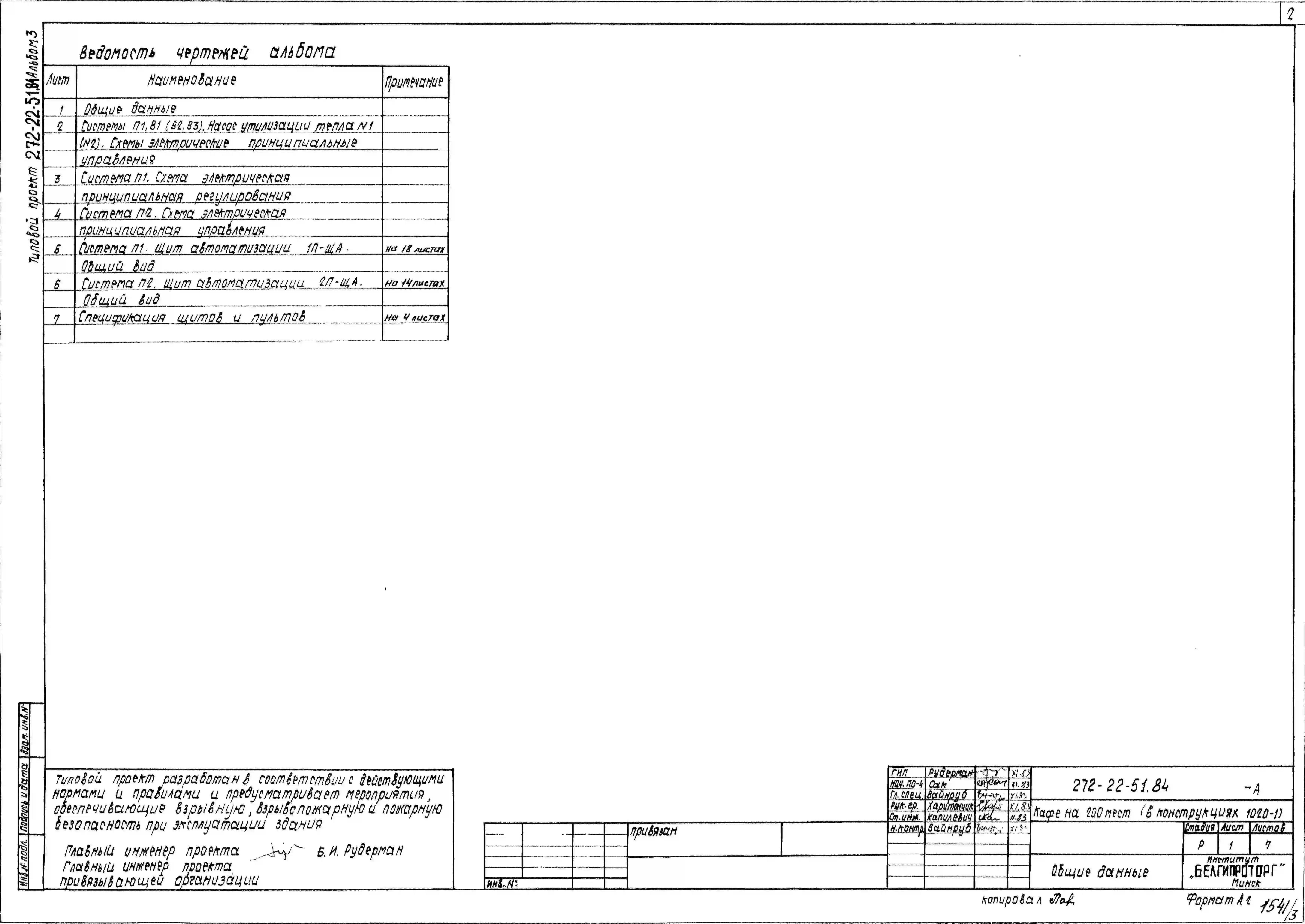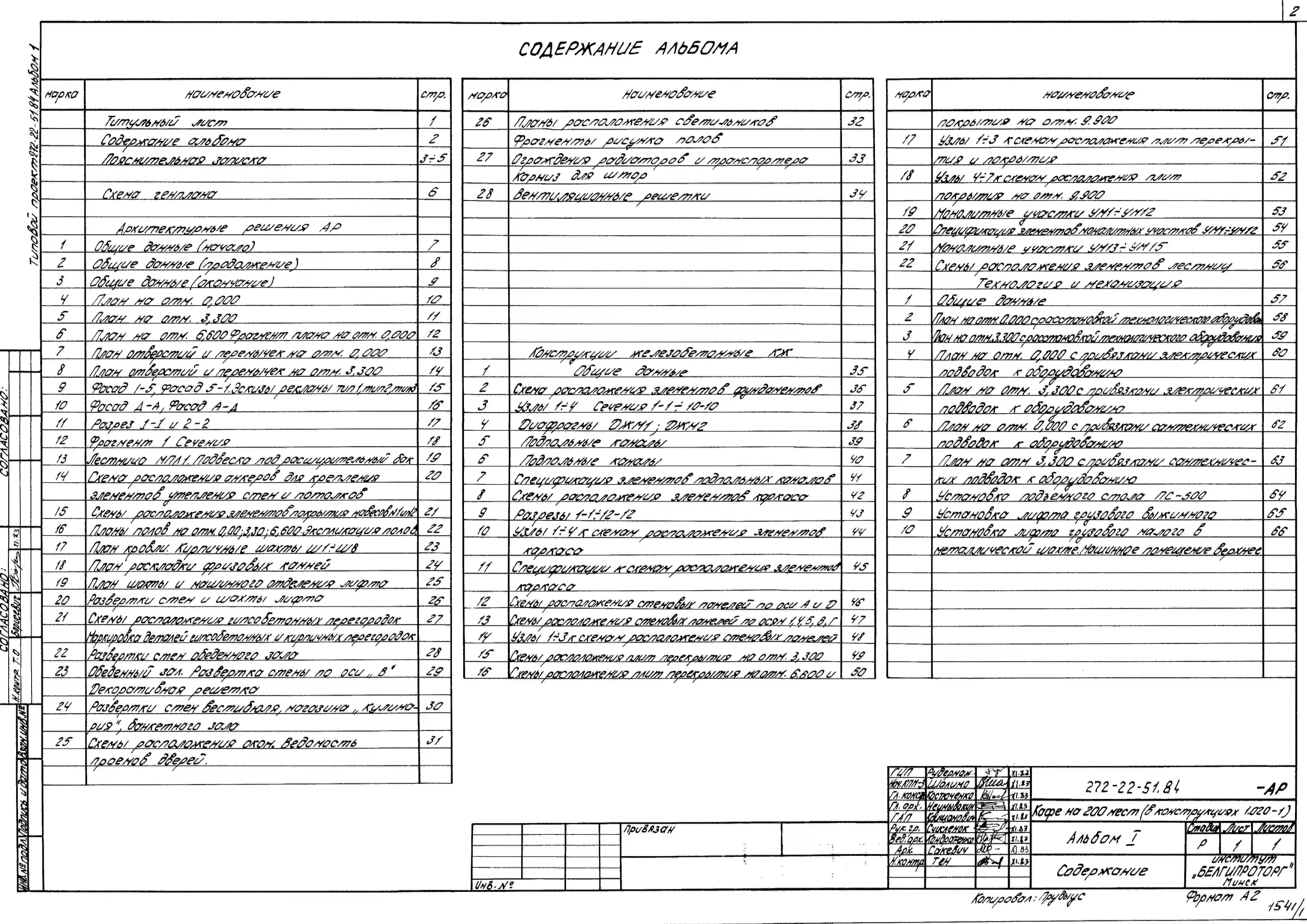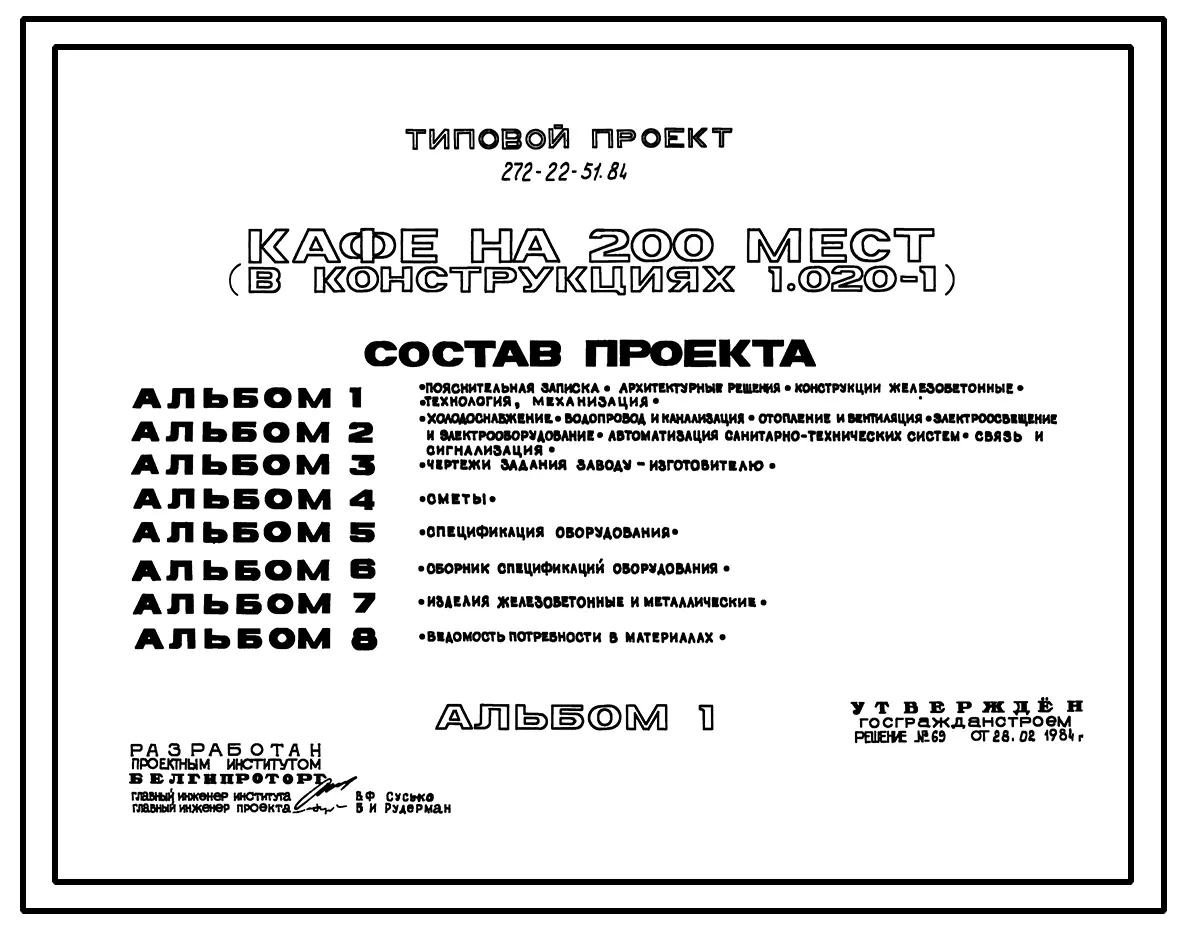 Типовой проект 272-22-51.84 Кафе на 200 мест. Здание двух-, трехэтажное. Каркас сборный железобетонный серии 1.020-1. Стены из легкобетонных панелей.