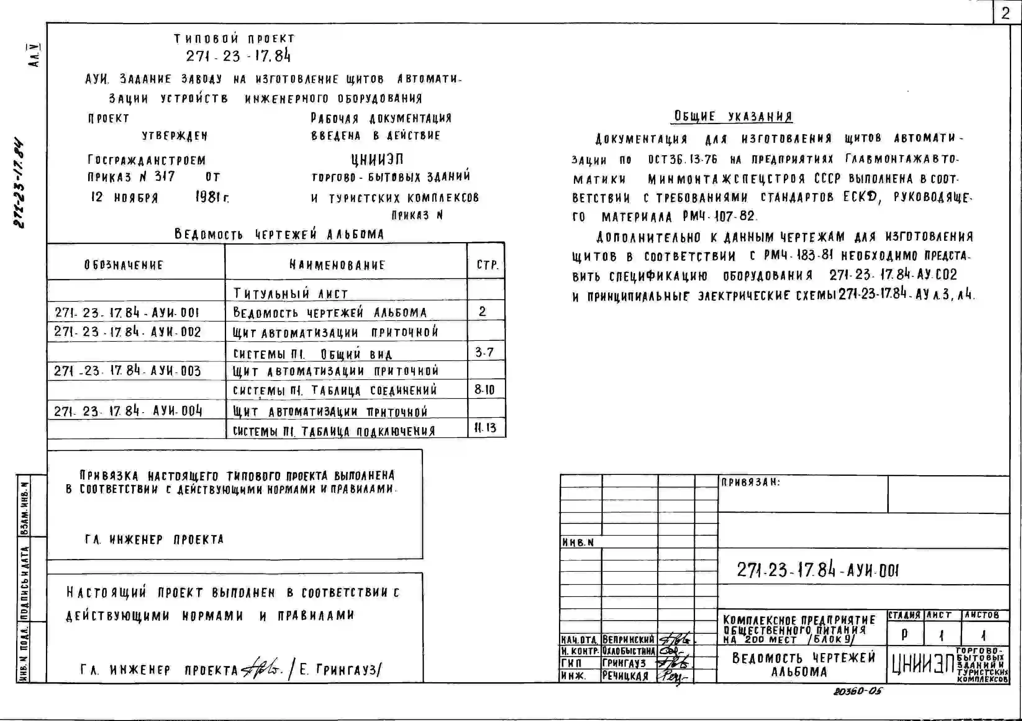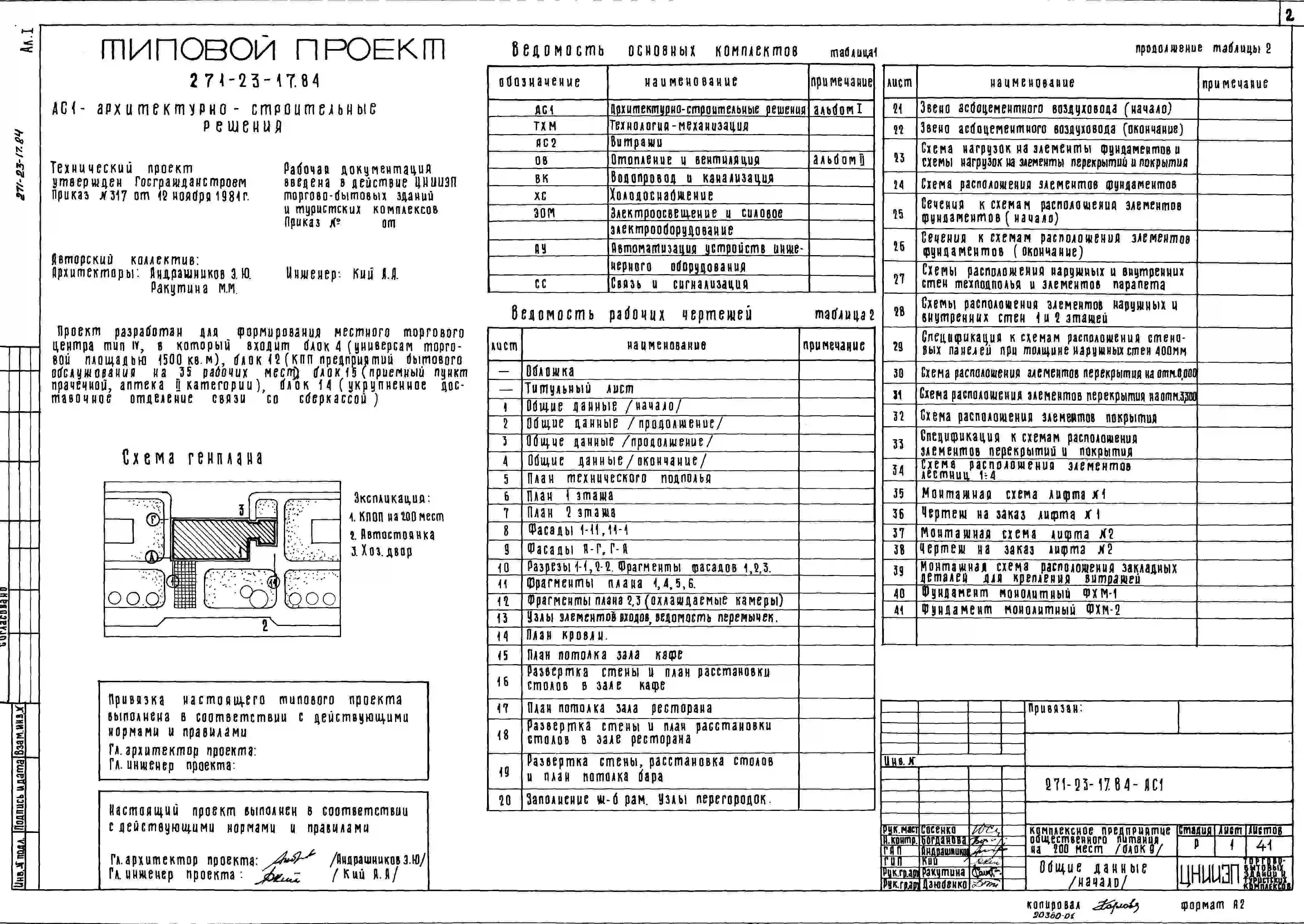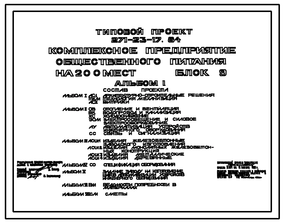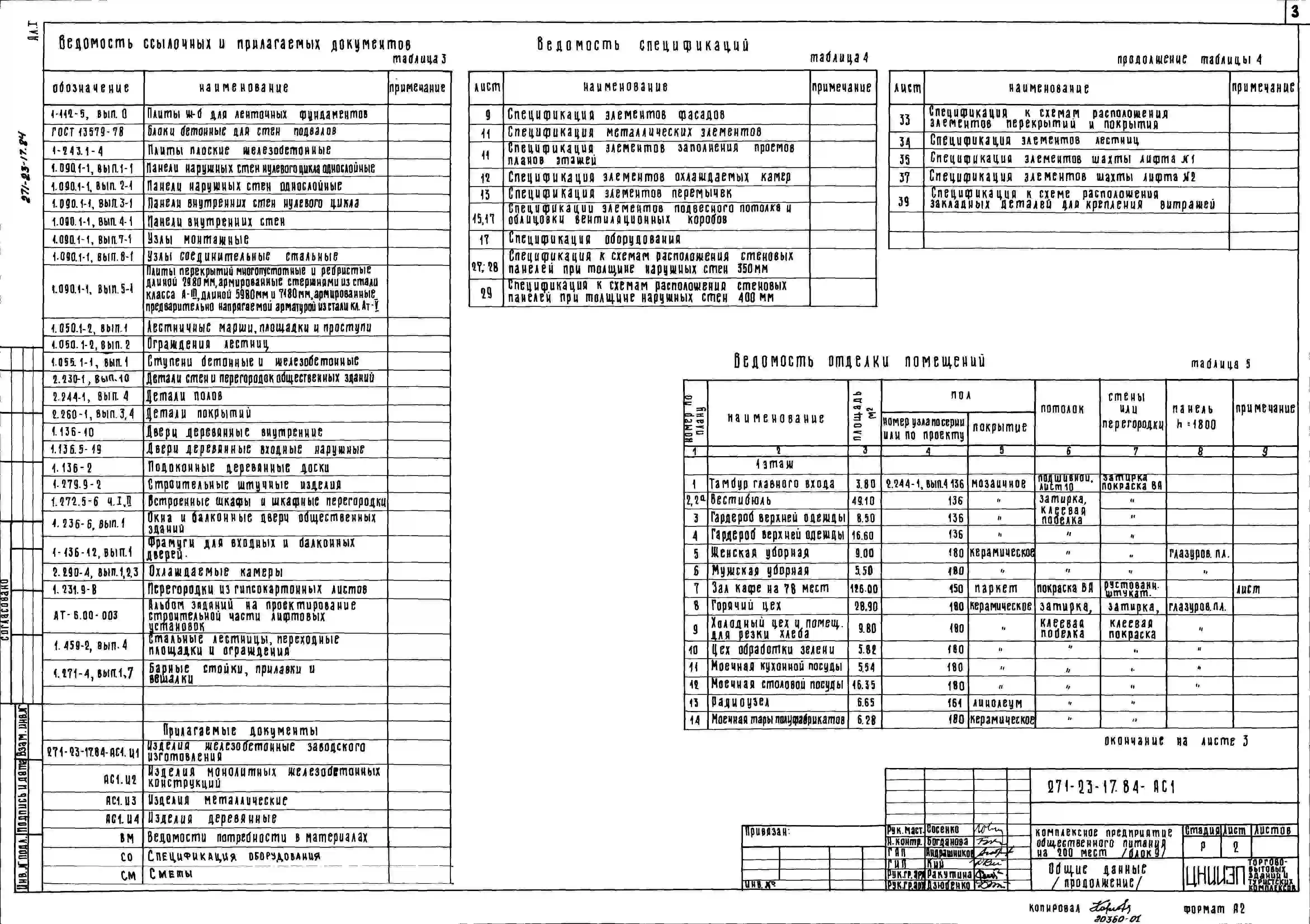 Типовой проект 271-23-17.84 Комплексное предприятие общественного питания на 200 мест. Блок 9. Здание двухэтажное. Конструкции серии 1.090.1-1. Стены из легкобетонных панелей.