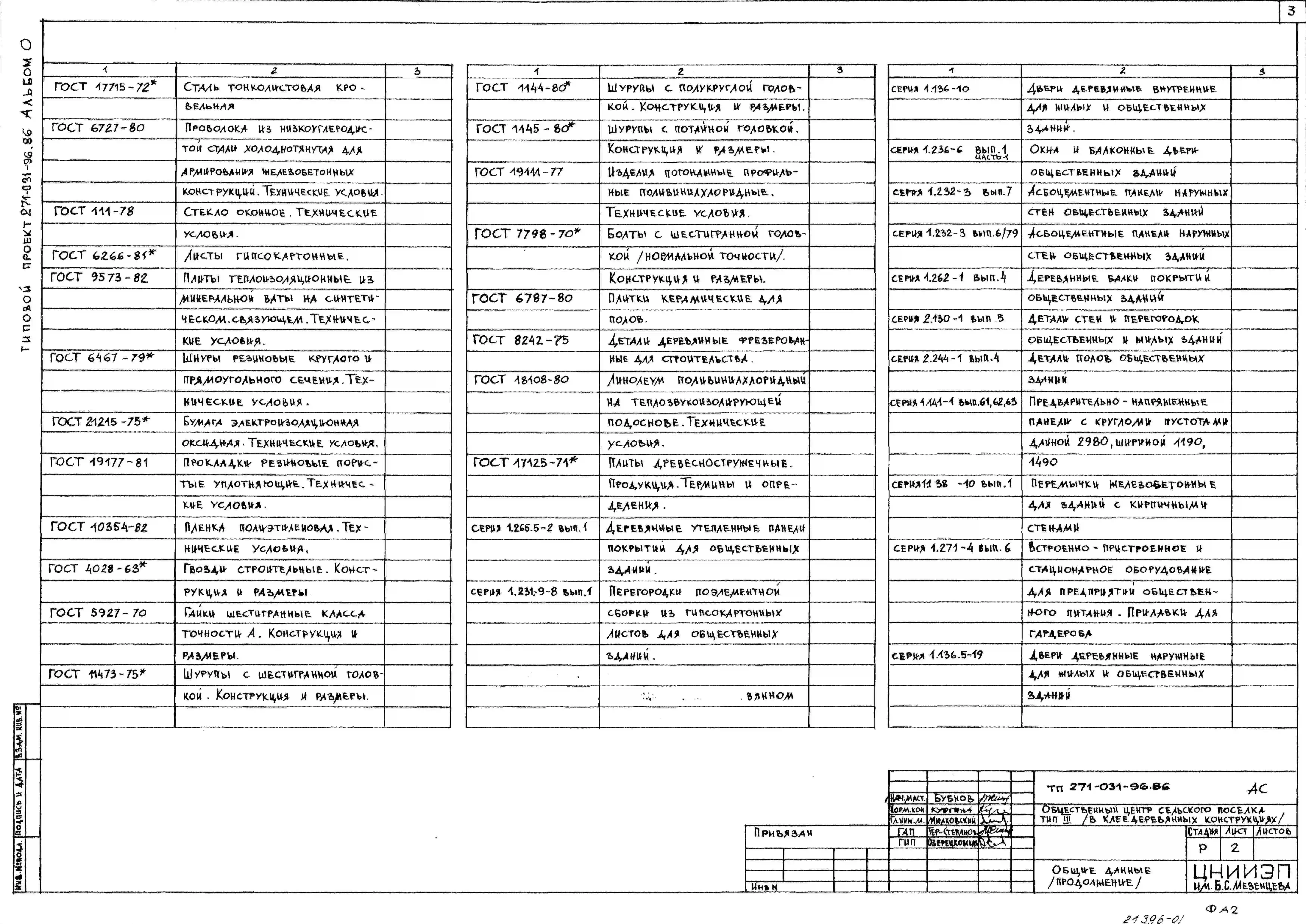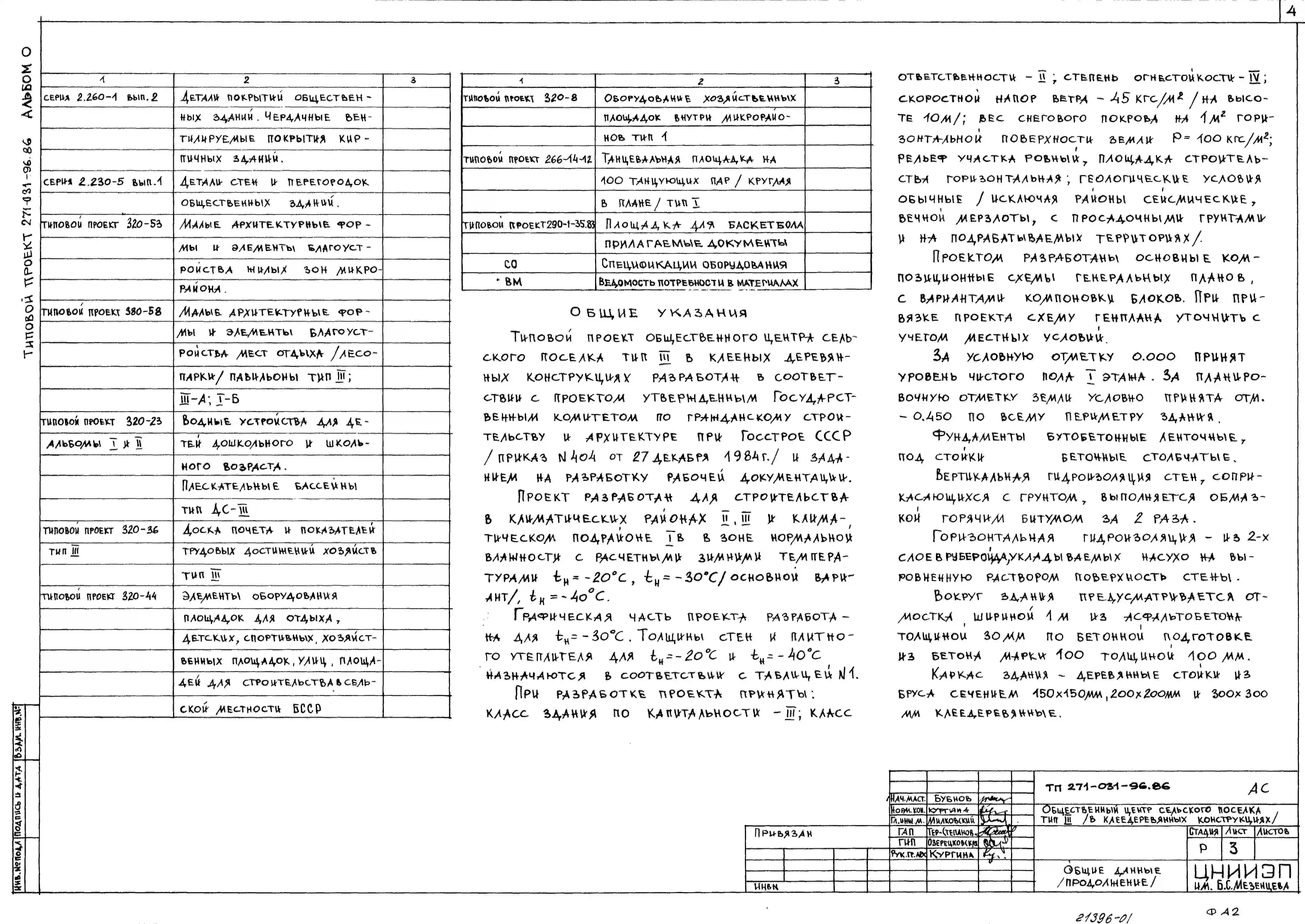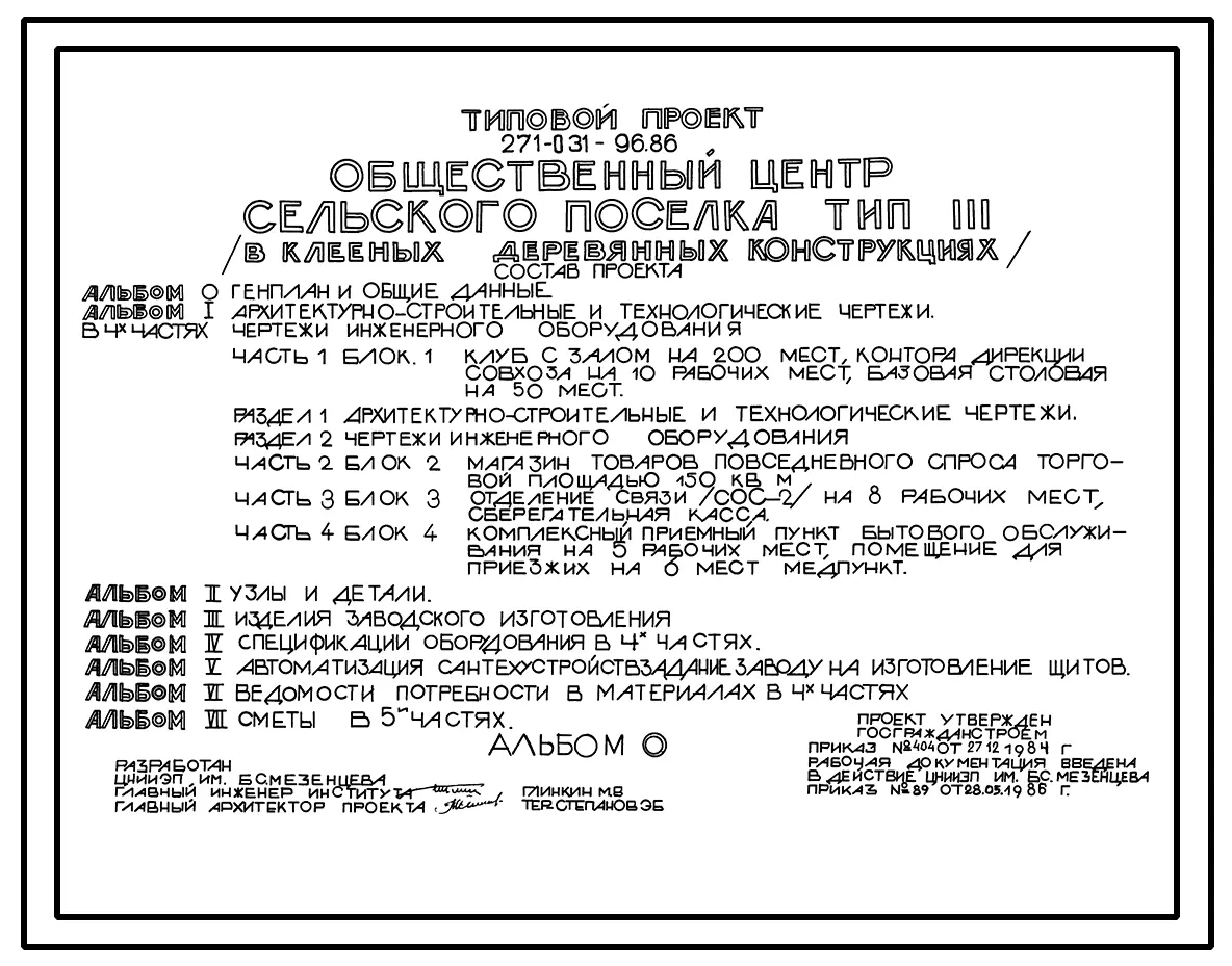 Типовой проект 271-031-96.86 Общественный центр сельского поселка. Тип III(в клееных деревянных конструкциях)