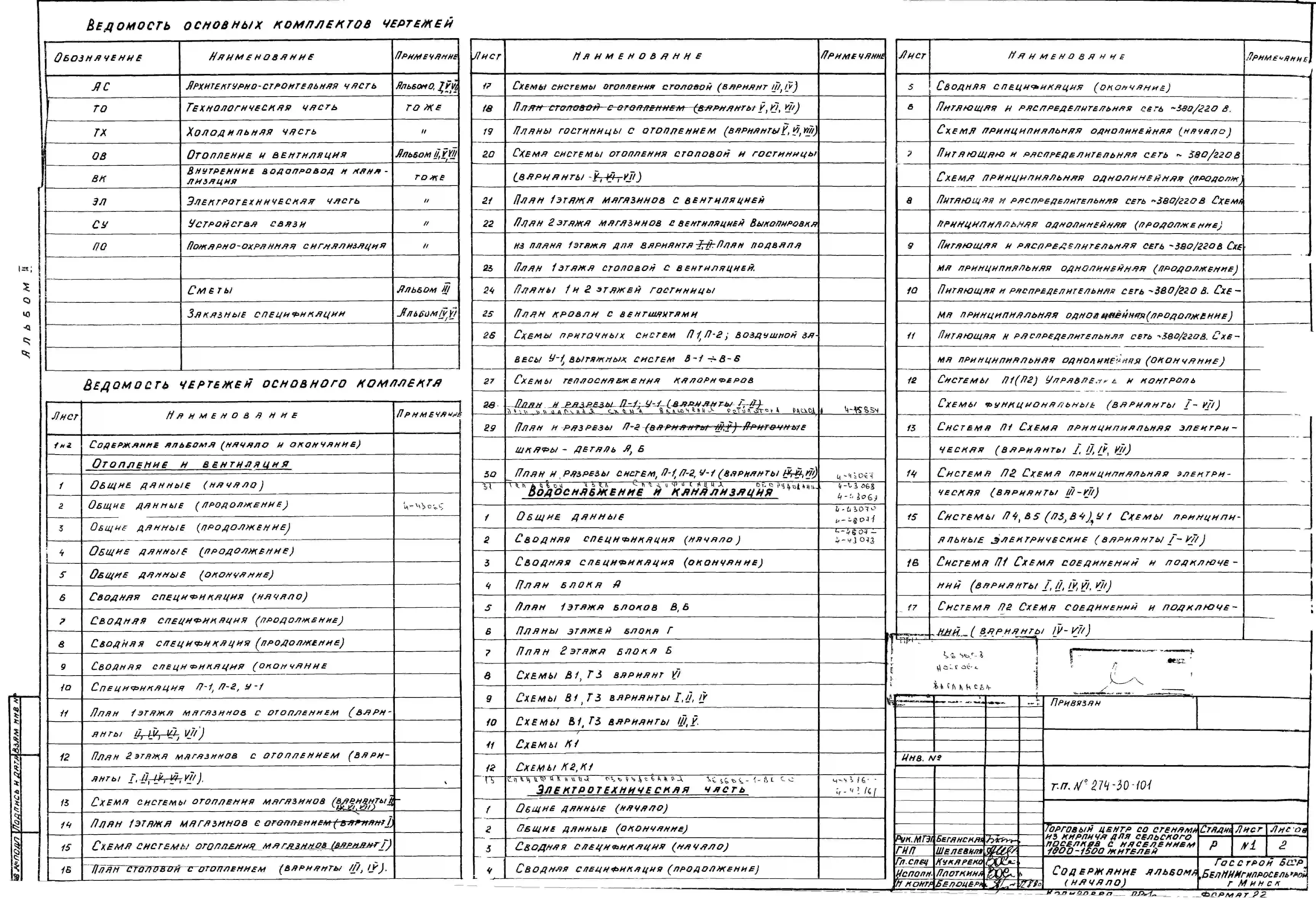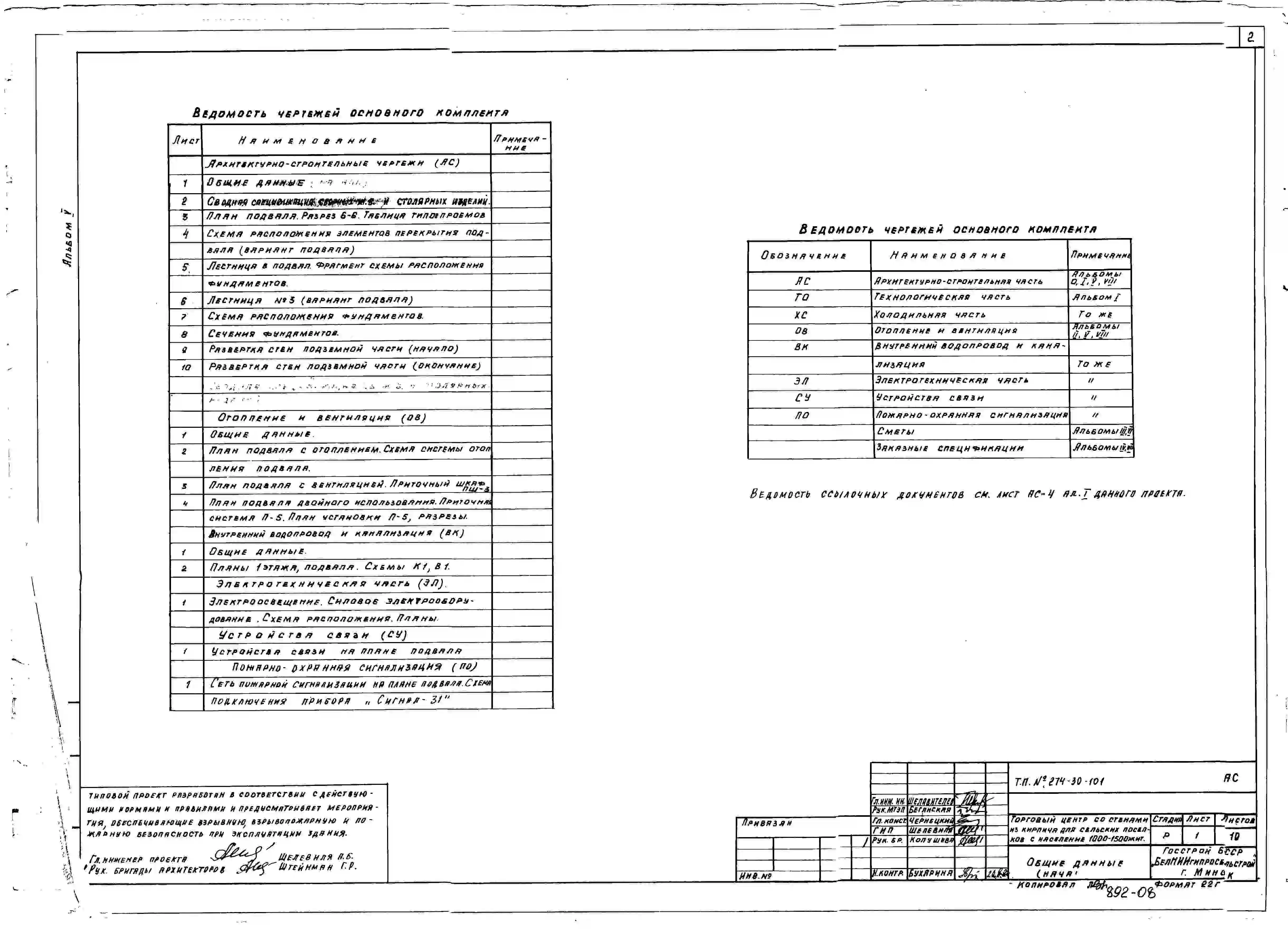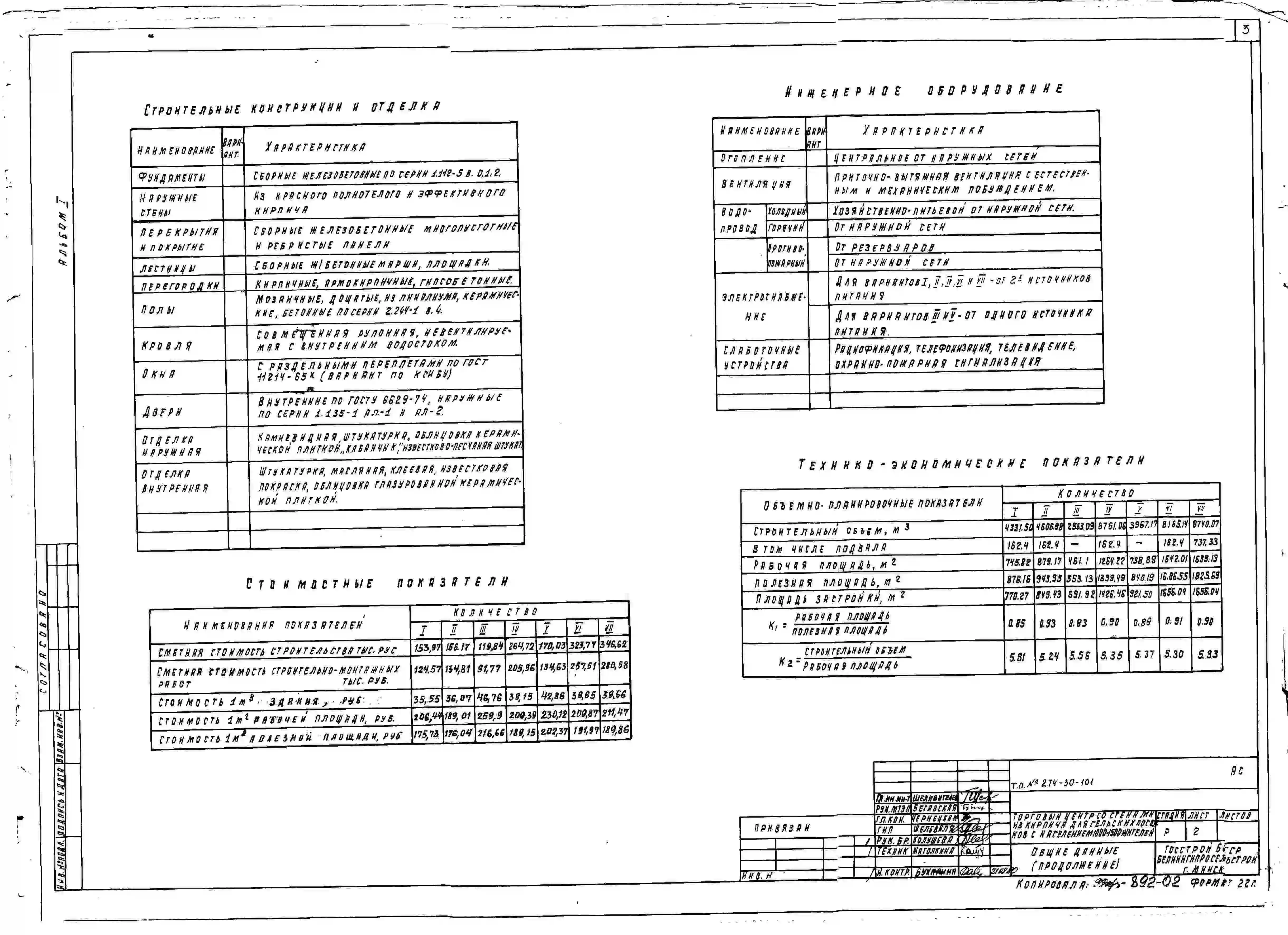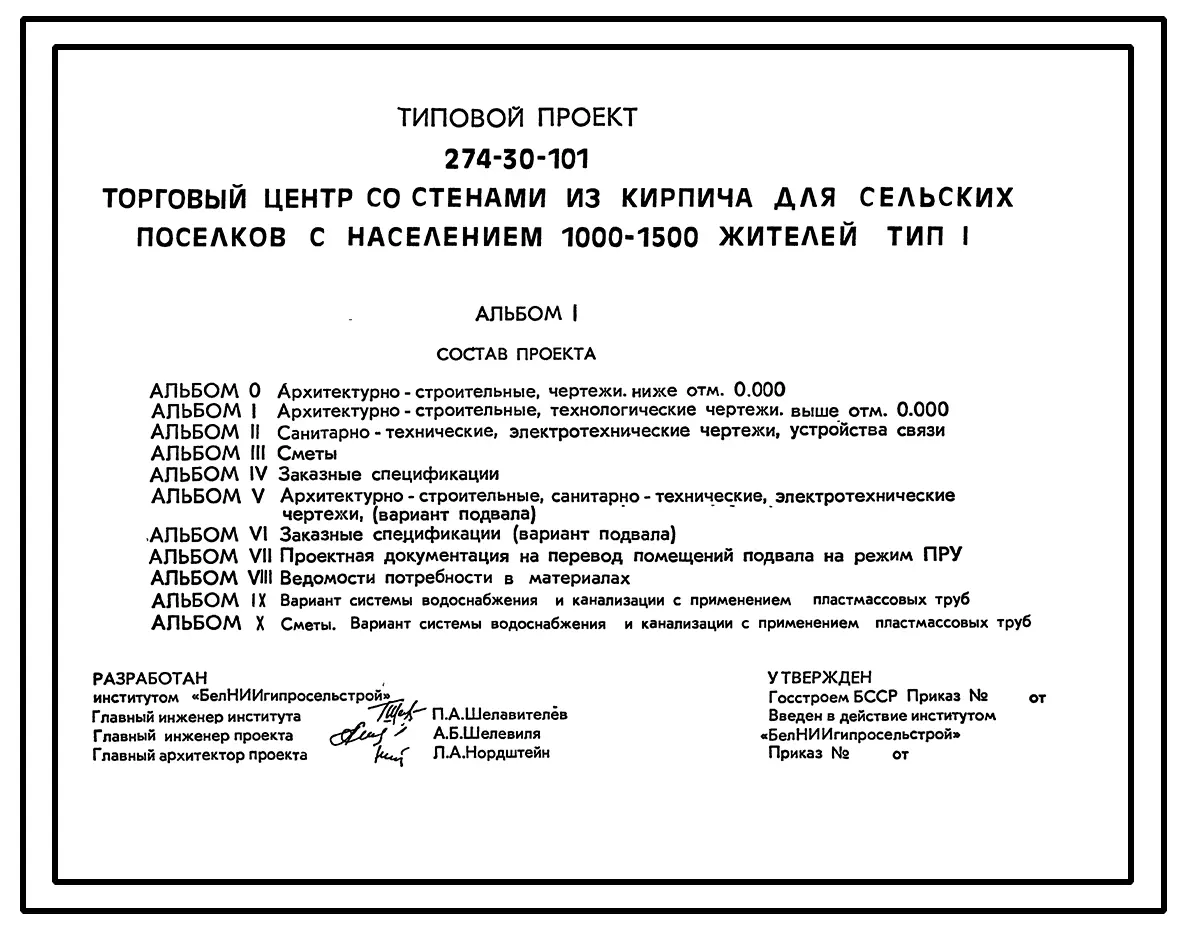 Типовой проект 274-30-101 Торговый центр со стенами из кирпича для сельских поселков с населением 1000-1500 жителей