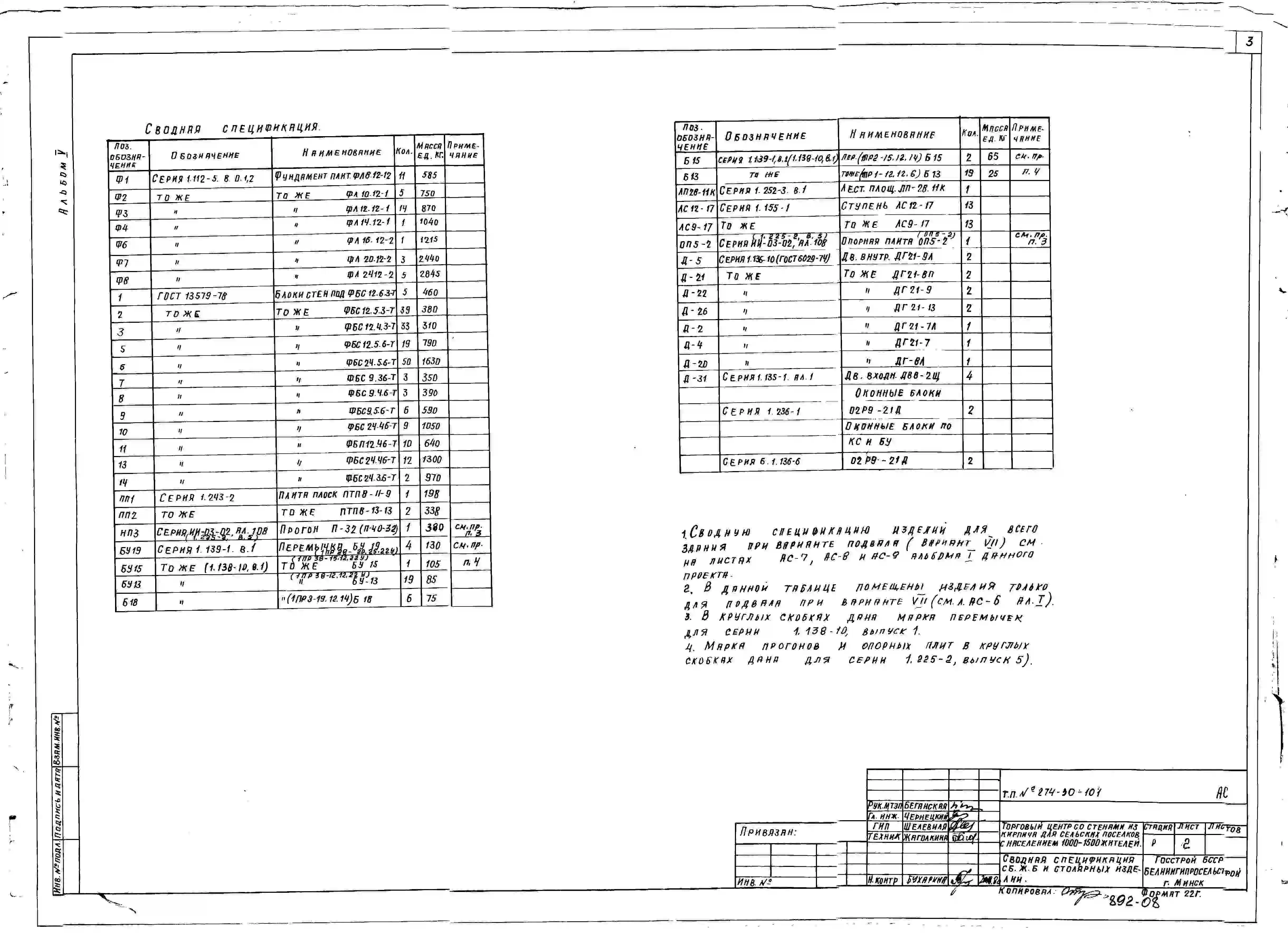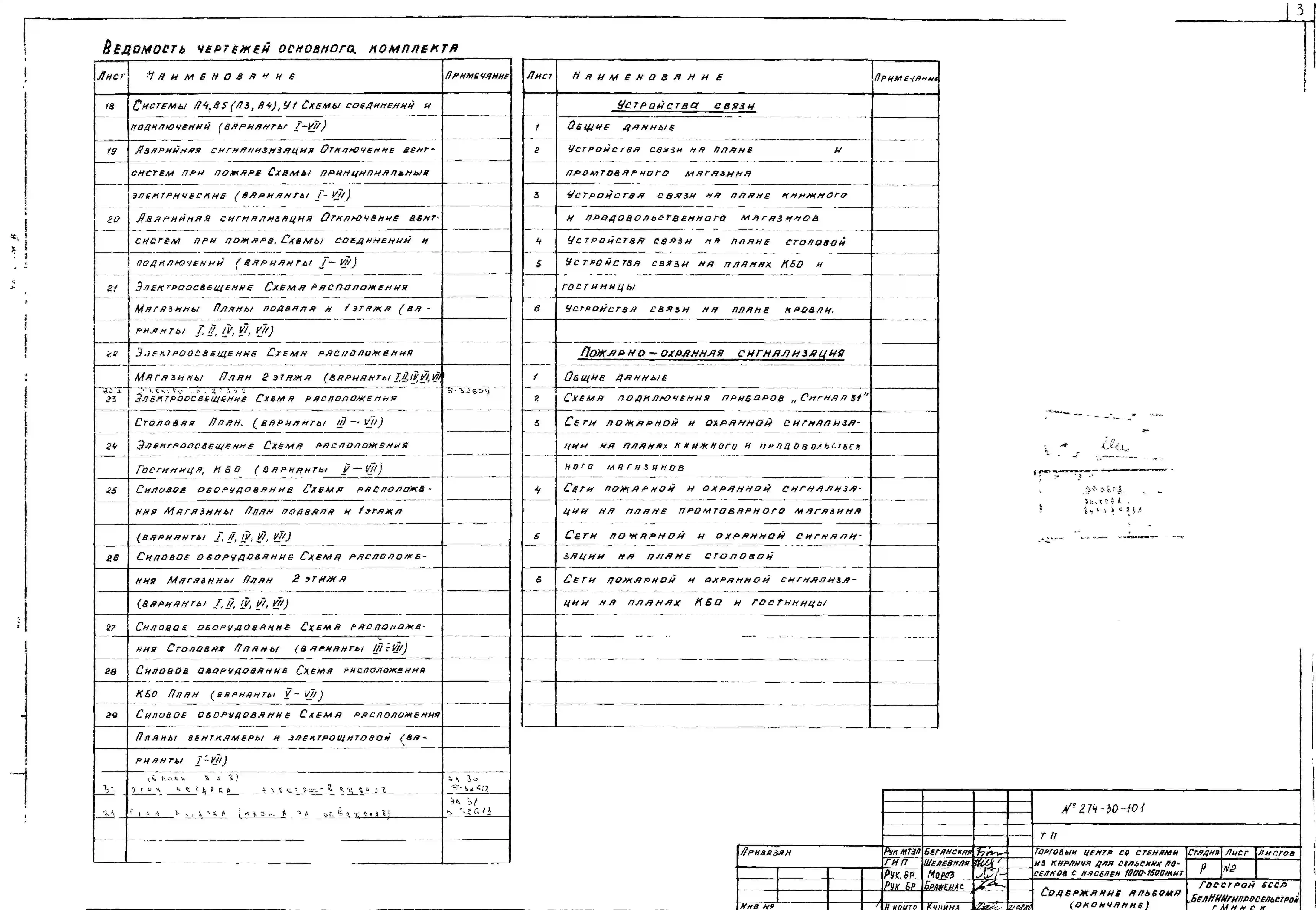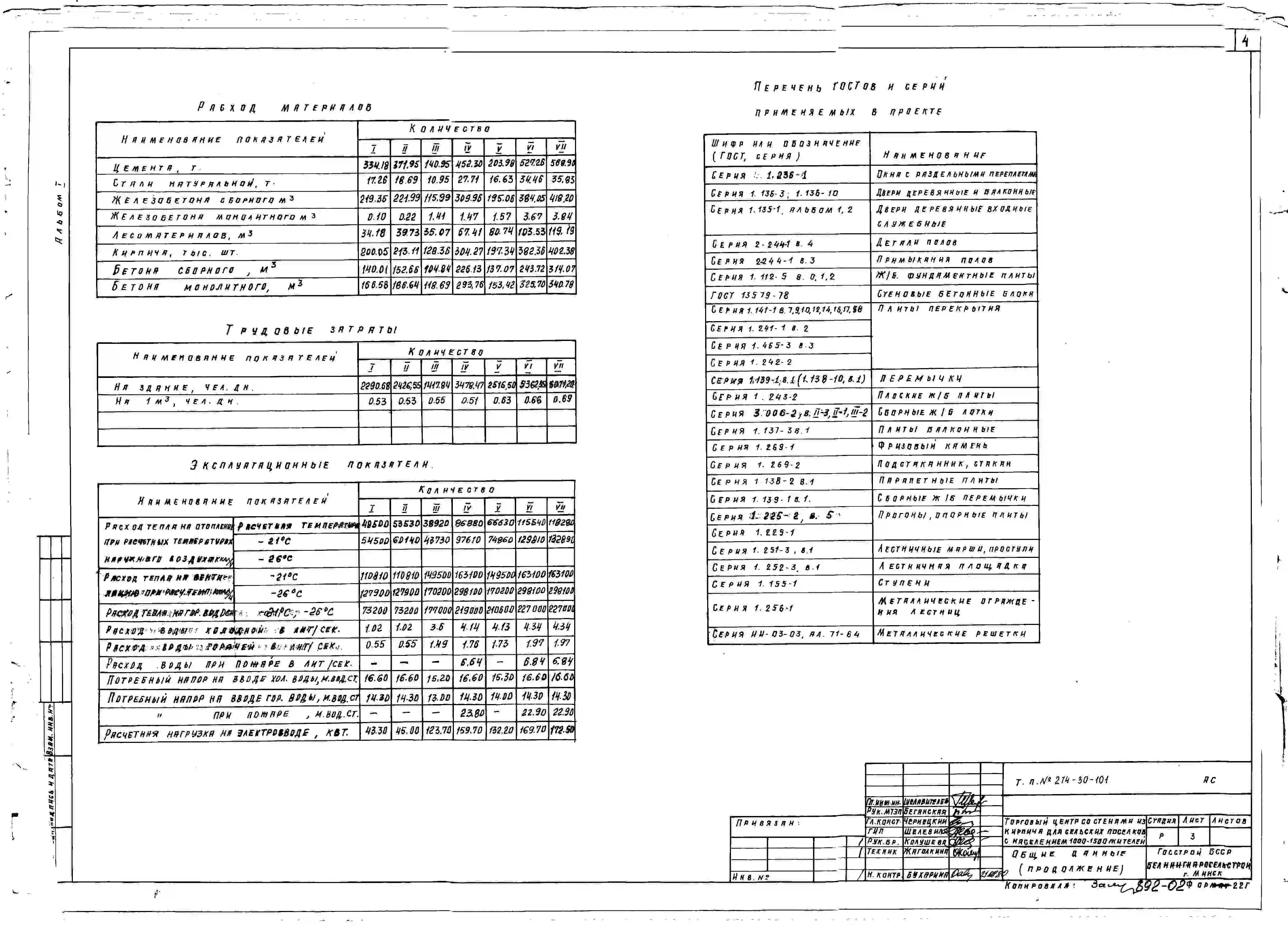 Типовой проект 274-30-101 Торговый центр со стенами из кирпича для сельских поселков с населением 1000-1500 жителей