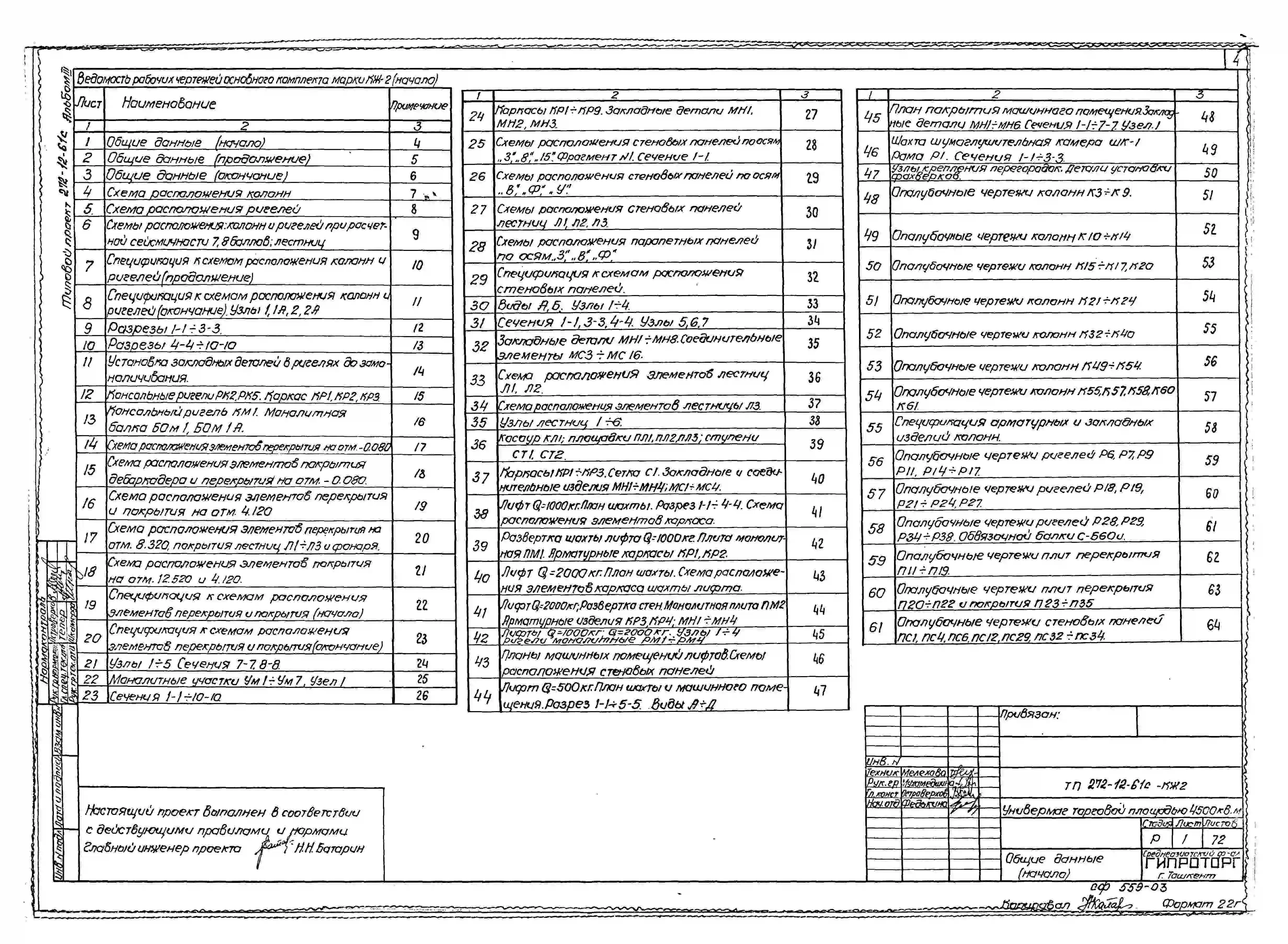 Типовой проект 272-12-61с Универмаг торговой площадью 4500 м2. Сейсмичность 7, 8,9 баллов.