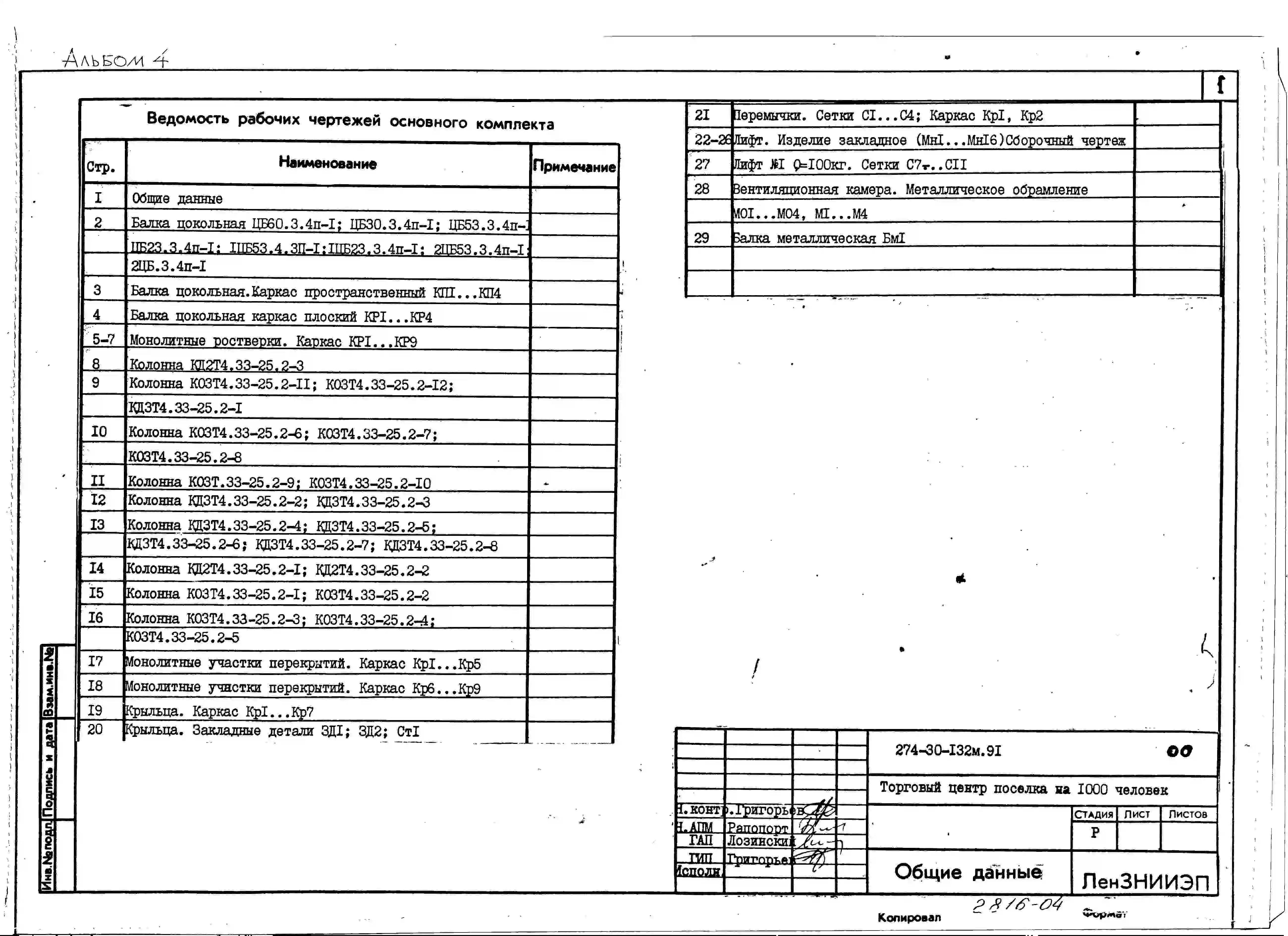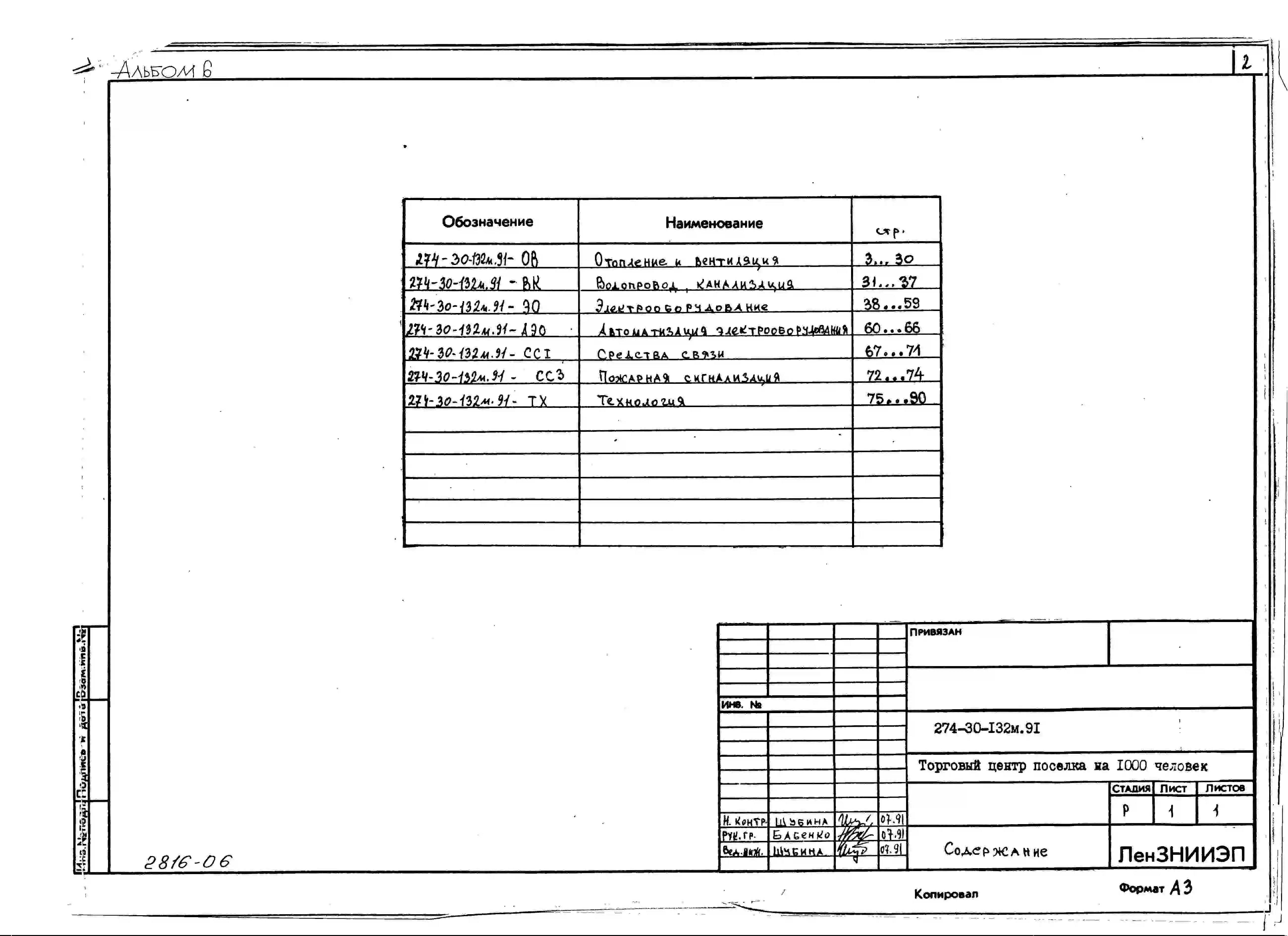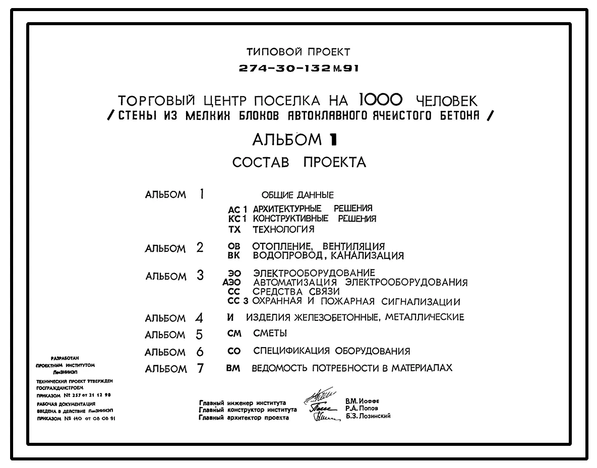 Типовой проект 274-30-132м.91 Торговый центр поселка на 1000 человек (стены из мелких блоков автоклавного ячеистого бетона)