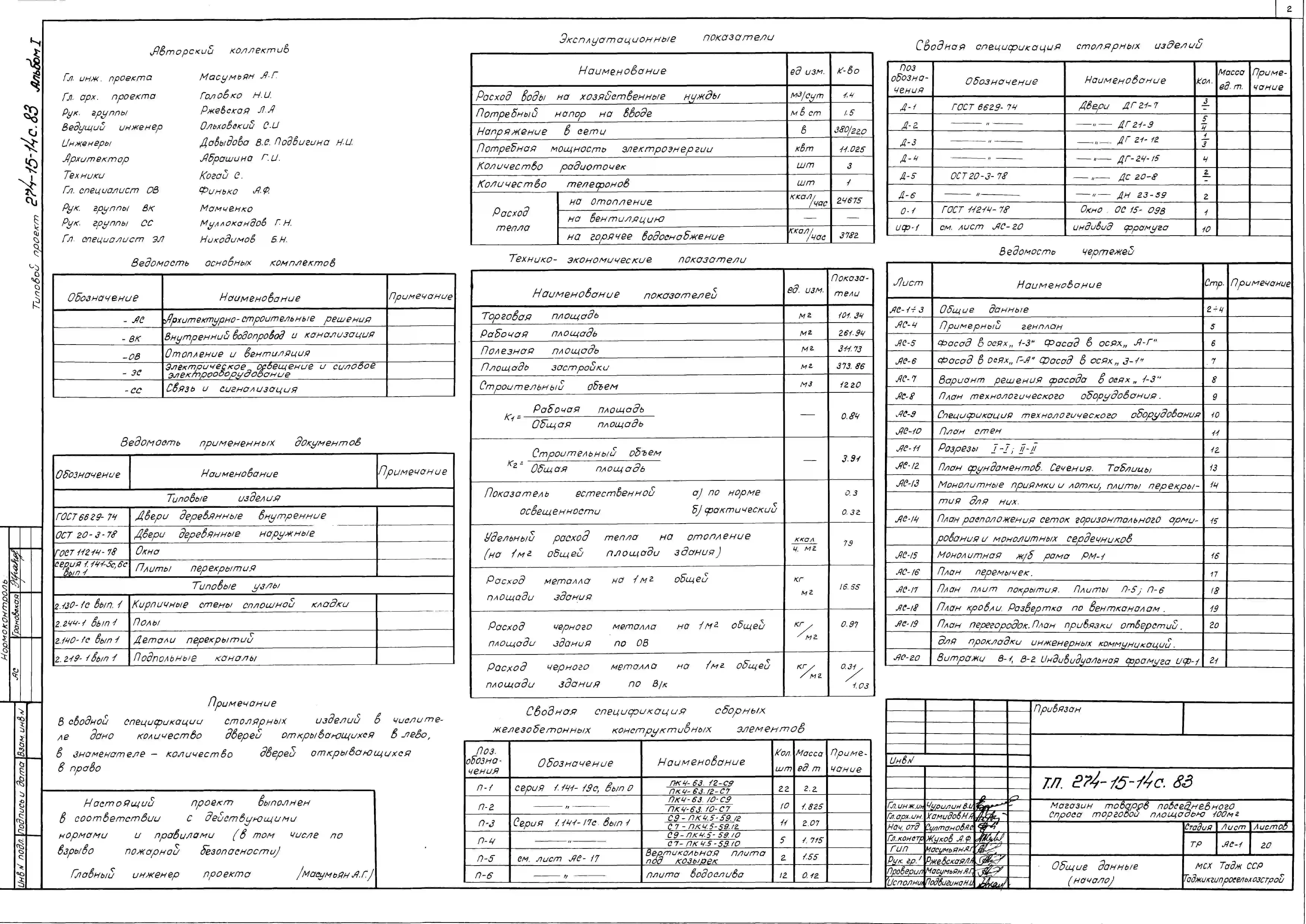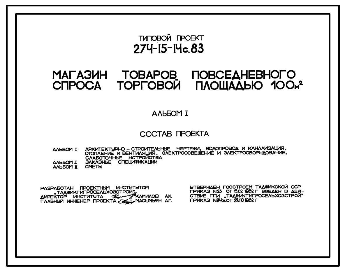Типовой проект 274-15-14с.83 Магазин товаров повседневного спроса общей площадью 100 кв. м