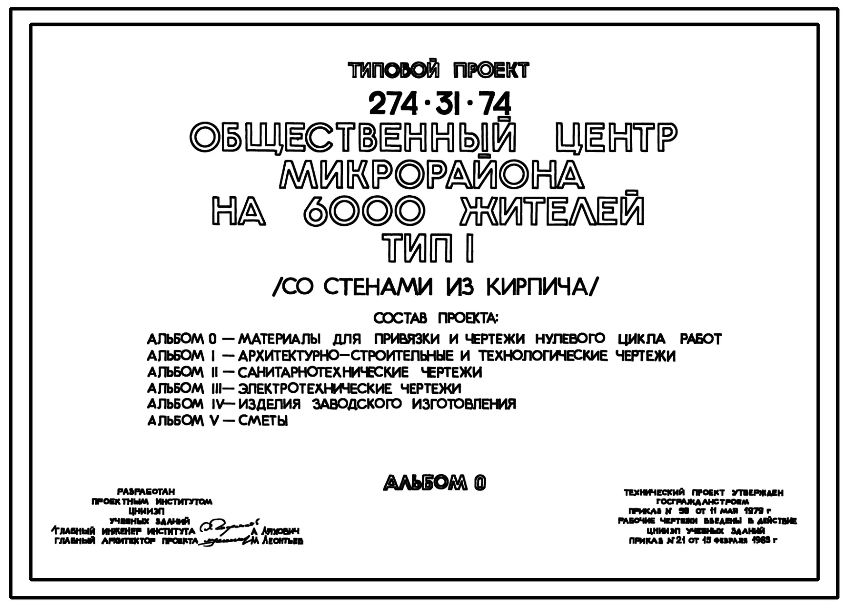 Типовой проект 274-31-74 Общественный центр микрорайона на 6000 жителей. Для строительства в 1В климатическом подрайоне, 2 и 3 климатических районах