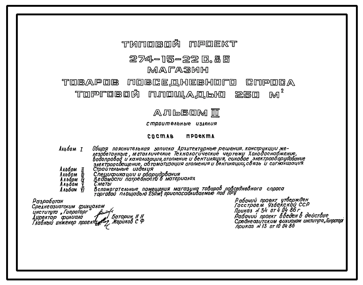 Типовой проект 274-15-22с.86 Магазин товаров повседневного спроса торговой площадью 250 м2. Для строительства в районах с сейсмичностью 8 баллов с конструктивными вариантами на 7 и 9 баллов