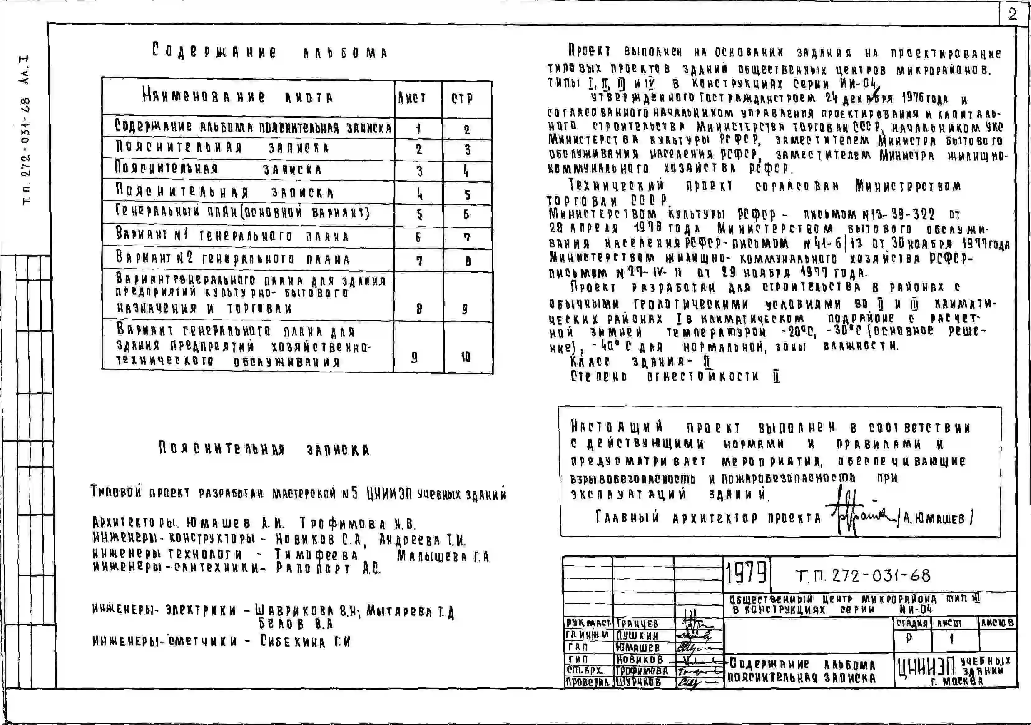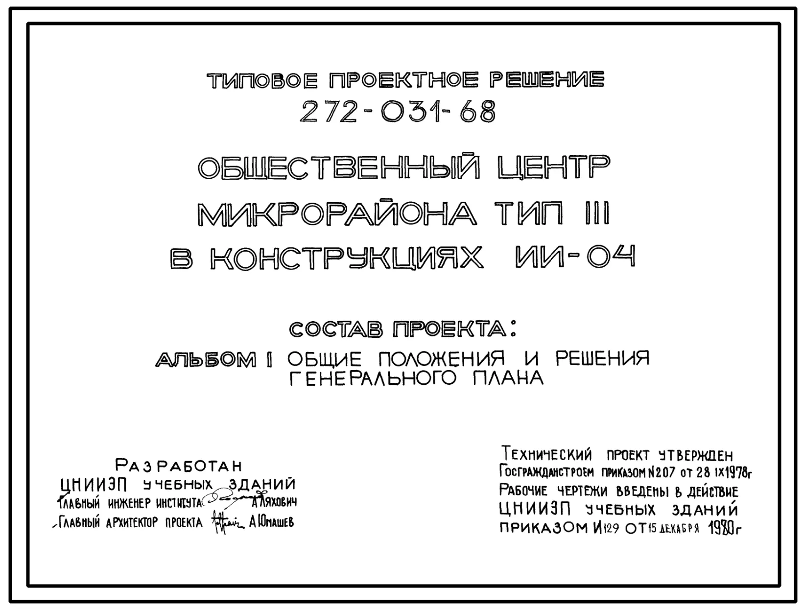 Типовой проект 272-031-68 Общественный центр микрорайона на 12000 жителей. В конструкциях серии ИИ-04