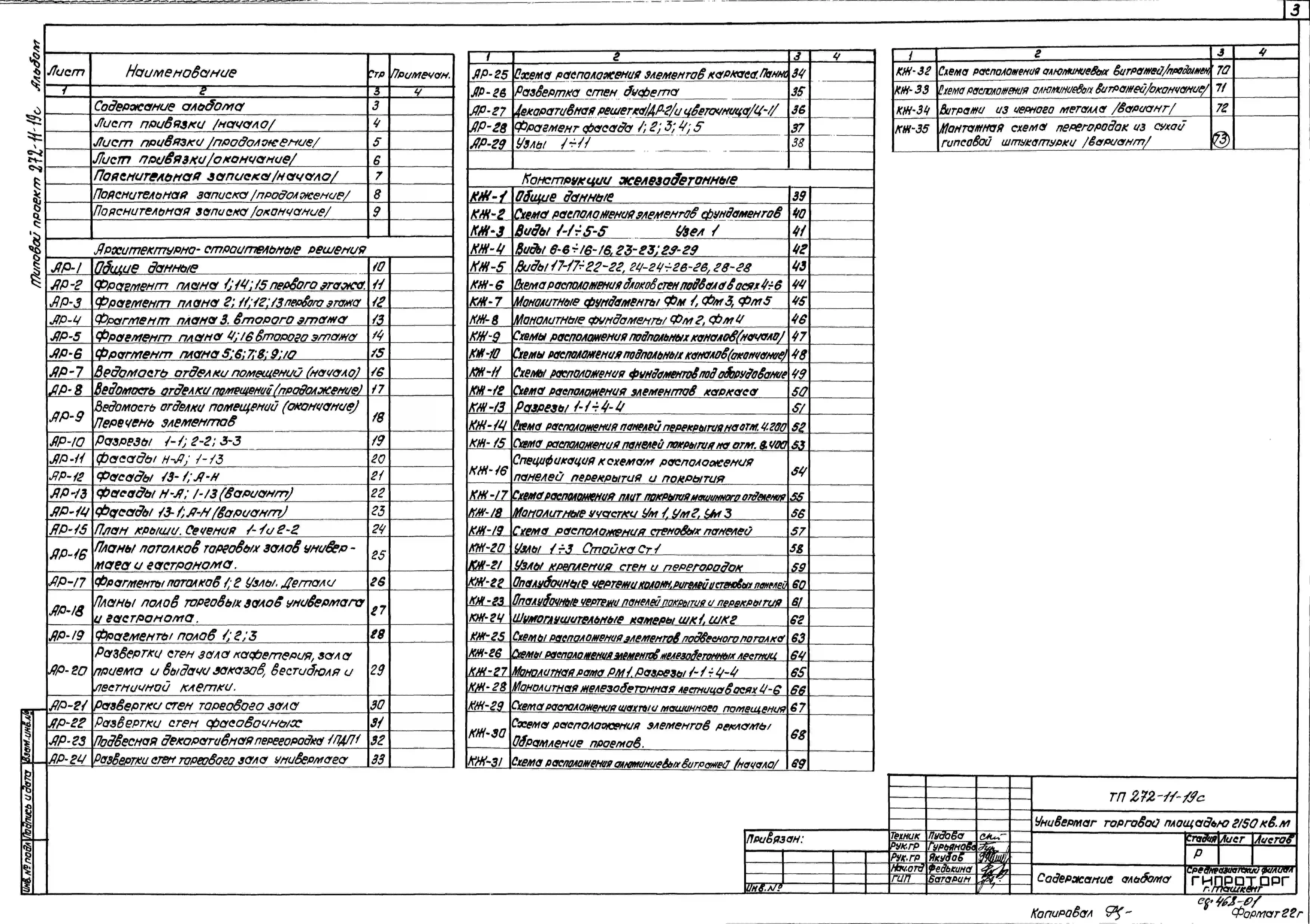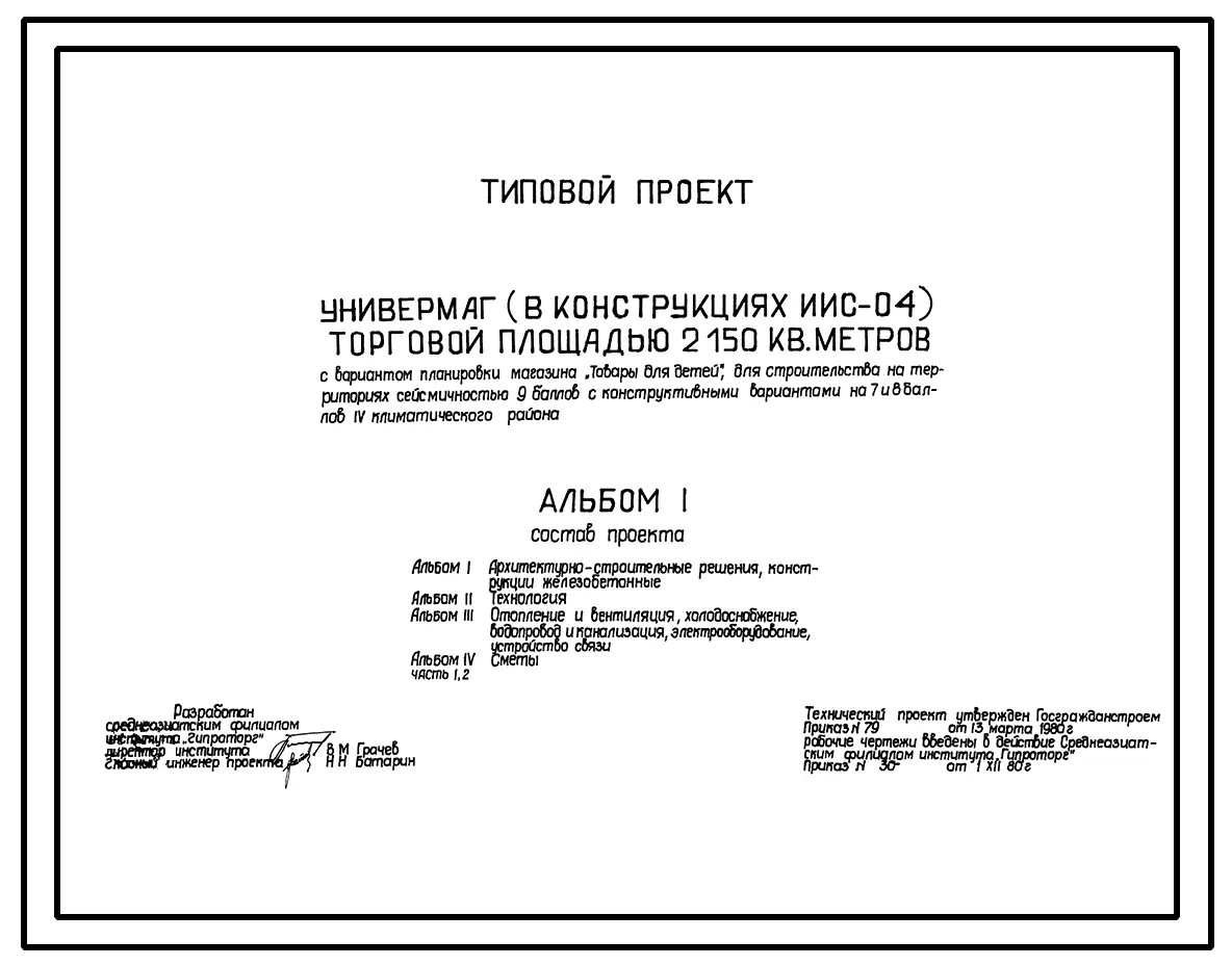 Типовой проект 272-11-19с Универмаг торговой площадью 2150 м2 с вариантом планировки магазина «Товары для детей». В конструкциях ИИС-04. Для строительства в 4 климатическом районе сейсмичностью 9 баллов