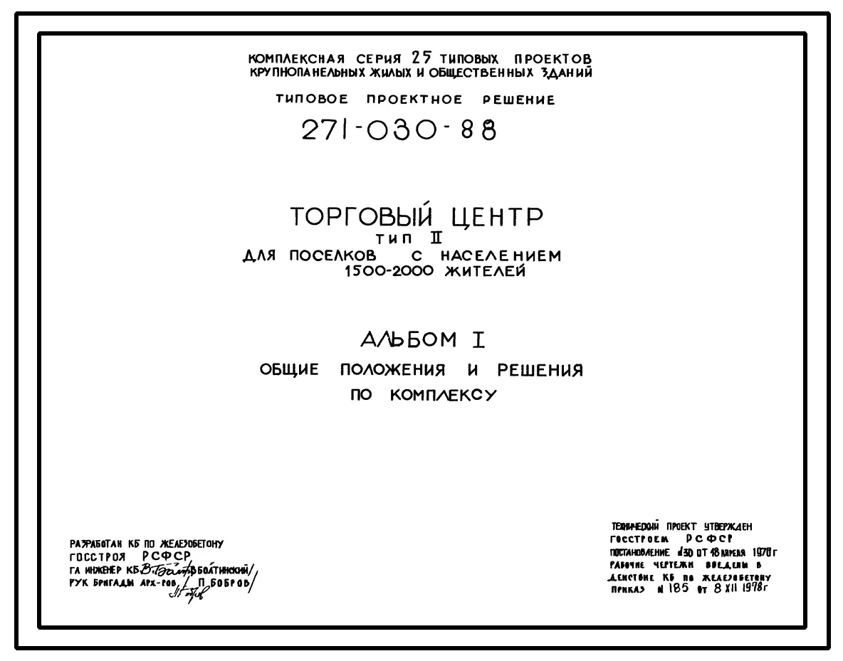 Типовой проект 271-030-88 Торговый центр для поселков с населением 1500-2000 жителей. Тип II.
