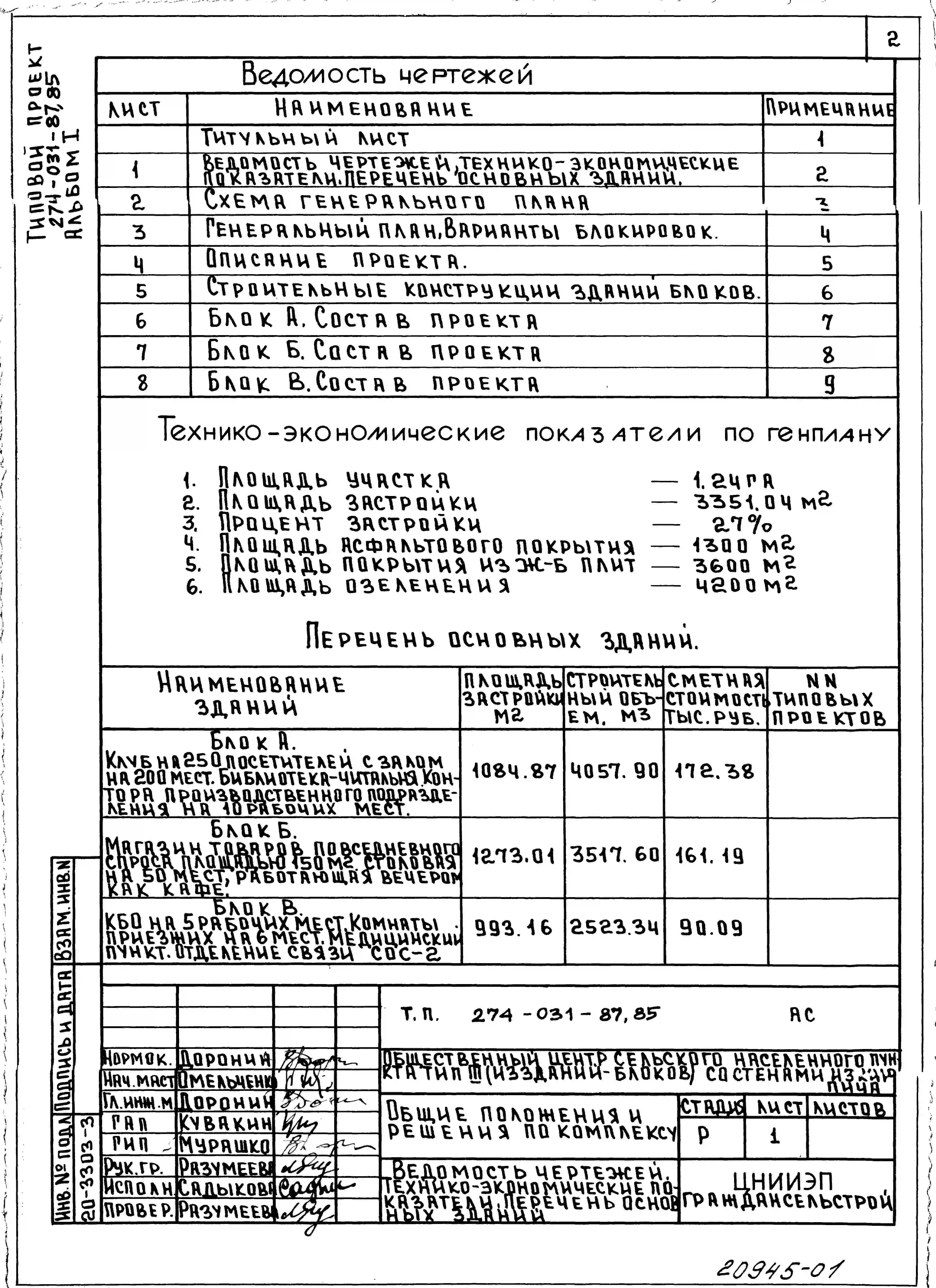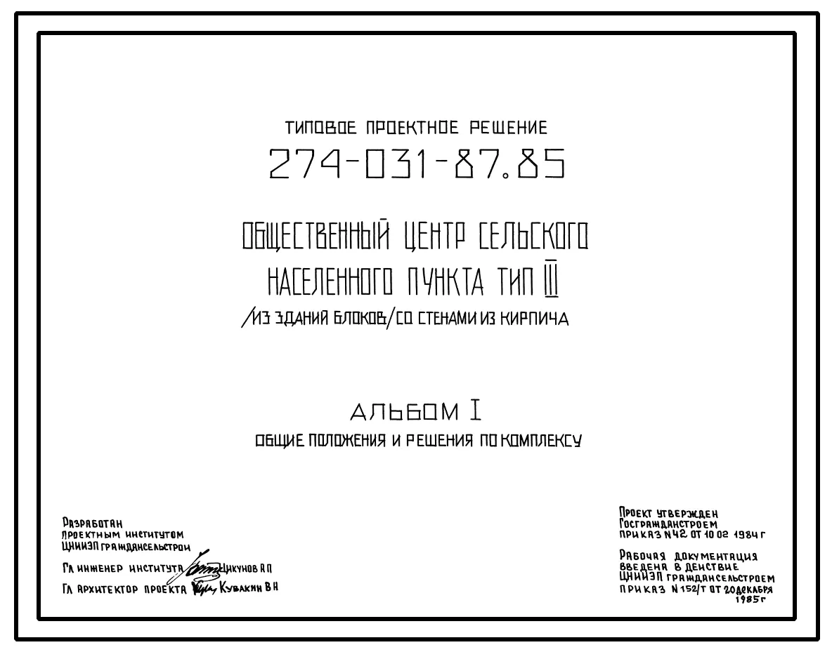 Типовой проект 274-031-87.85 Общественный центр сельского населенного пункта