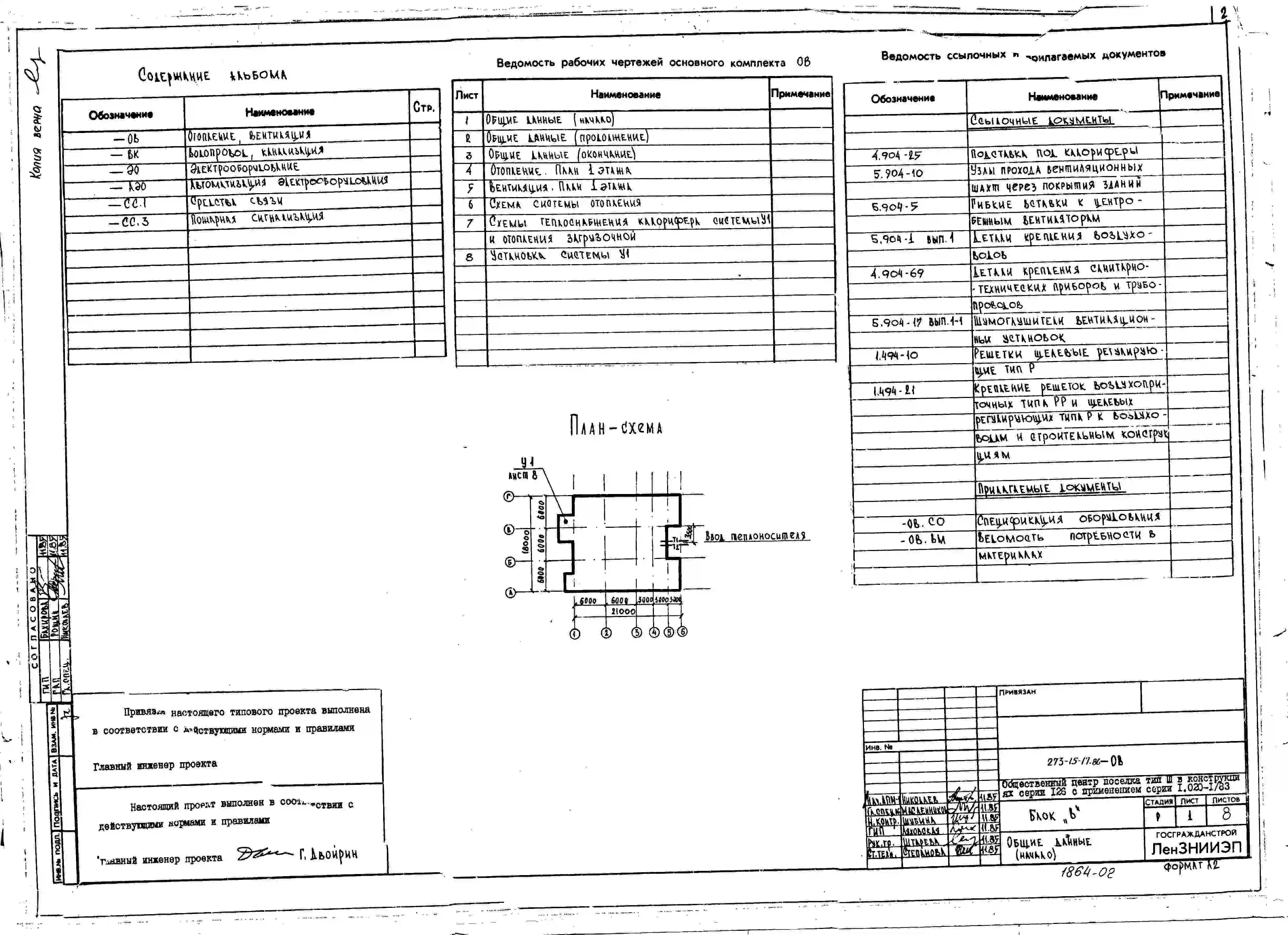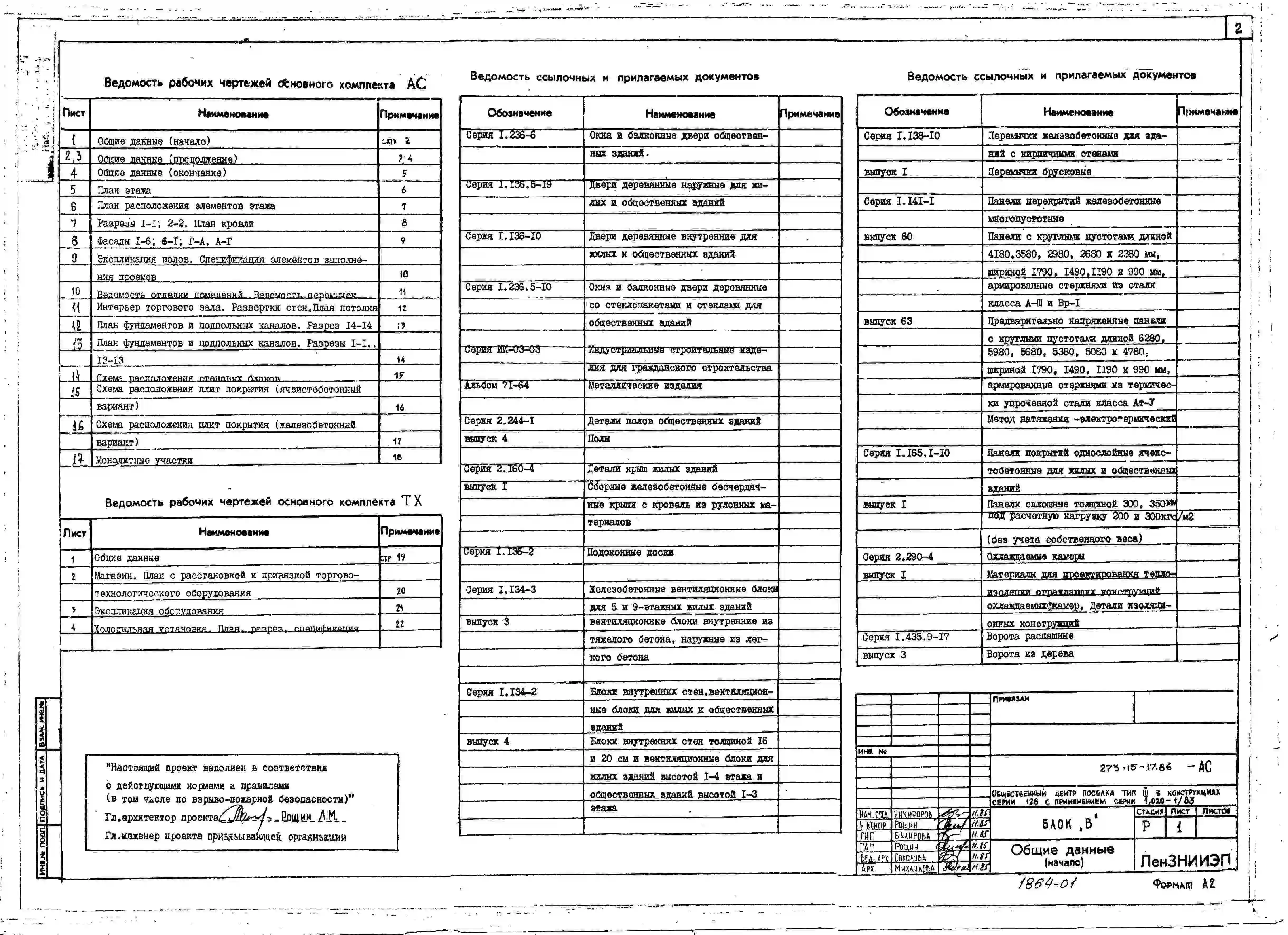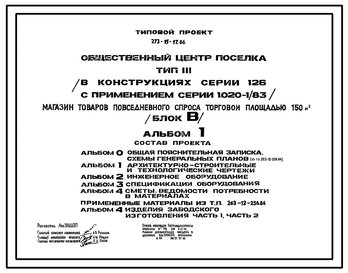Типовой проект 273-15-17.86 Магазин товаров повседневного спроса торговой площадью 150 м2 (блок «В») общественного центра поселка типа 3. В конструкциях серии 126 с применением серии 1.020-1/83