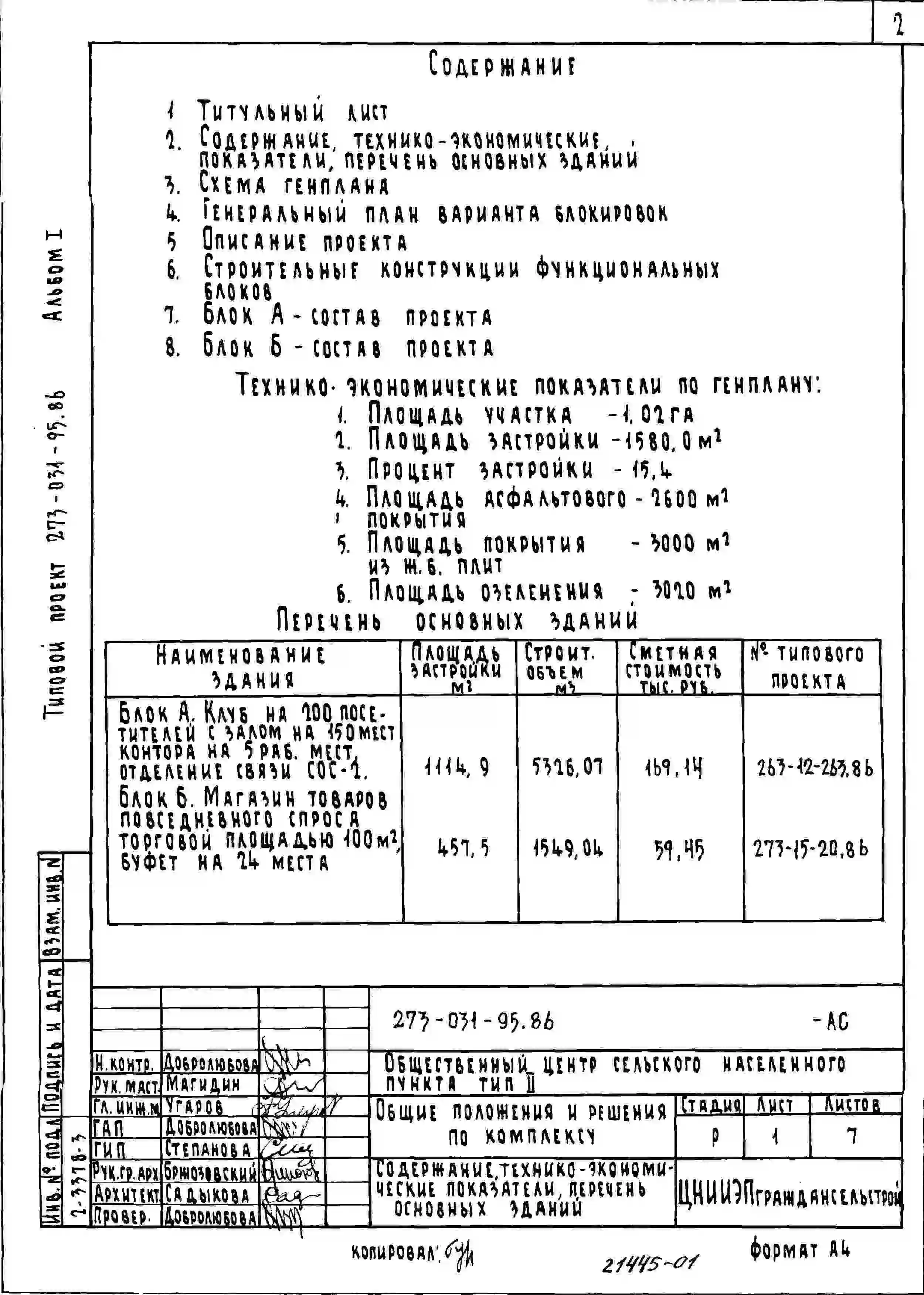 Типовой проект 273-031-95.86 Общественный центр сельского населенного пункта Тип 2 стены из крупных легко-бетонных блоков.