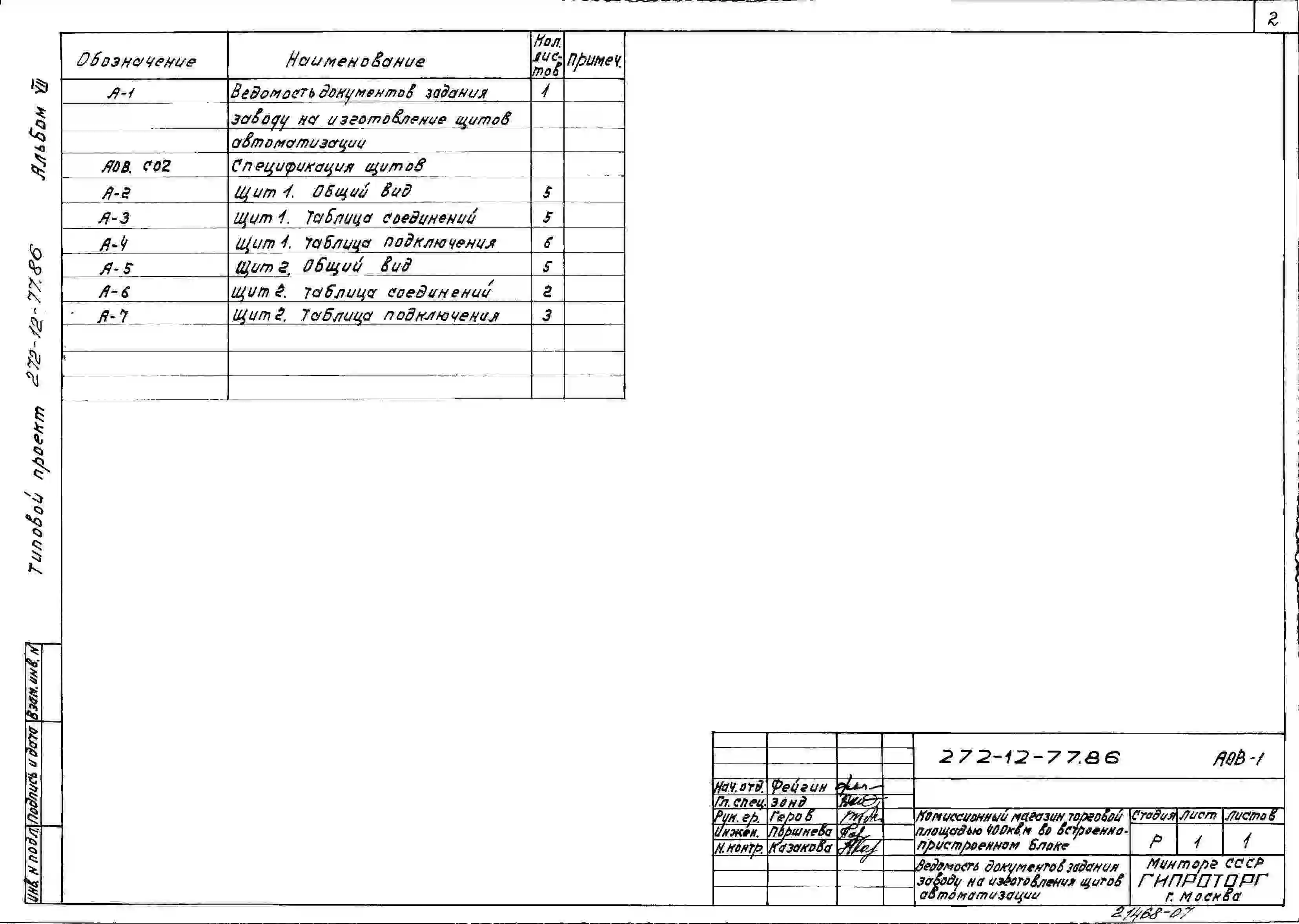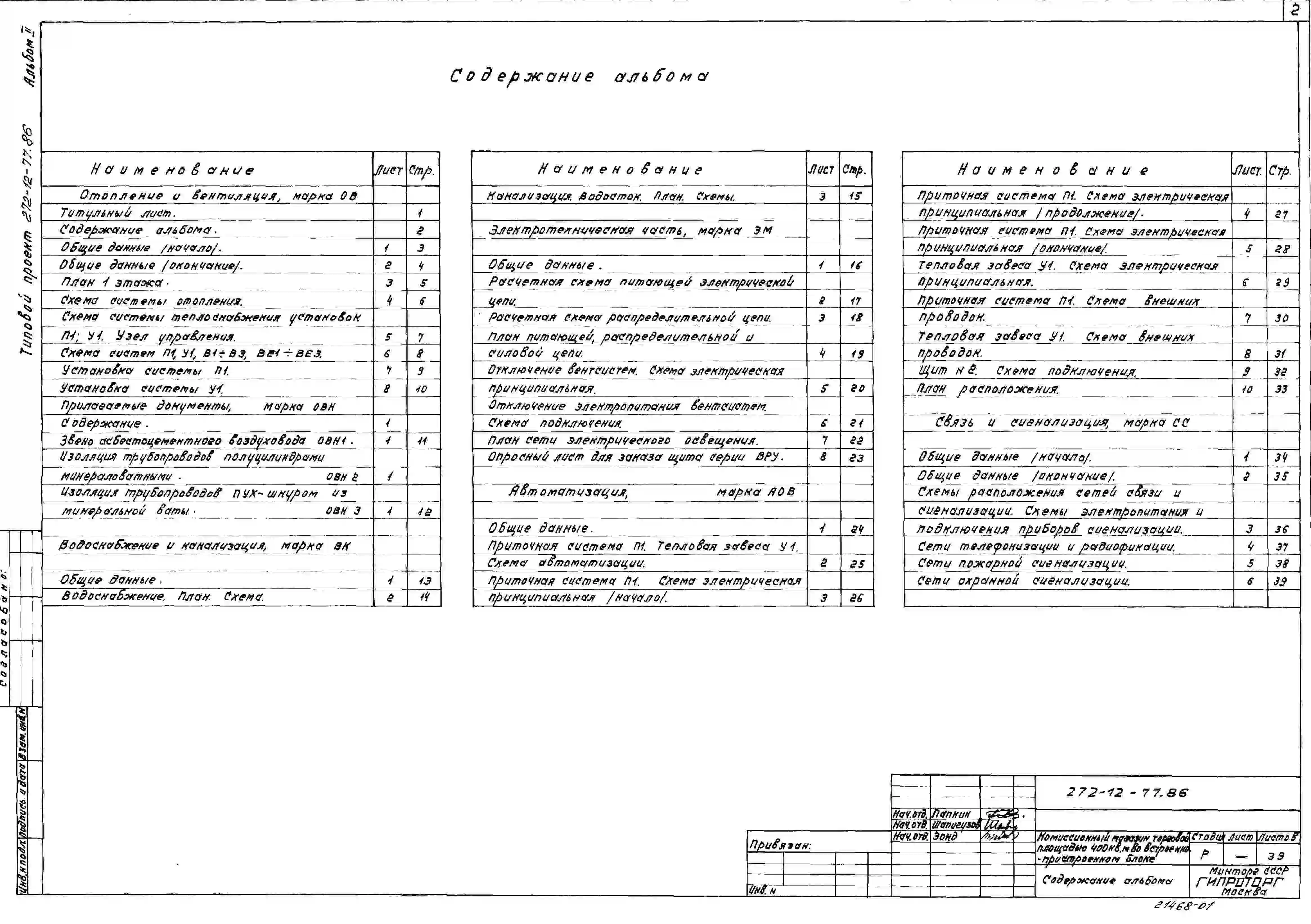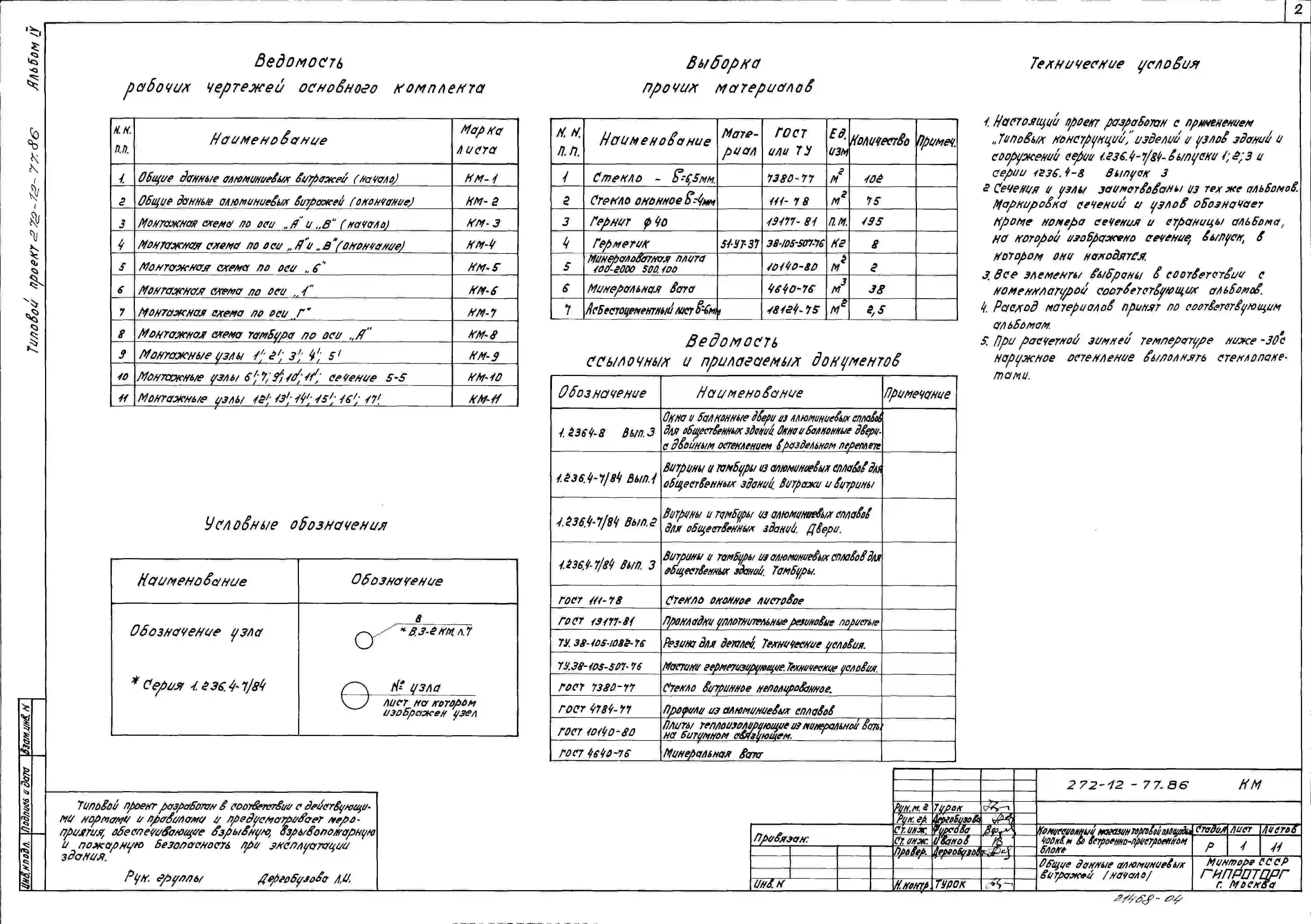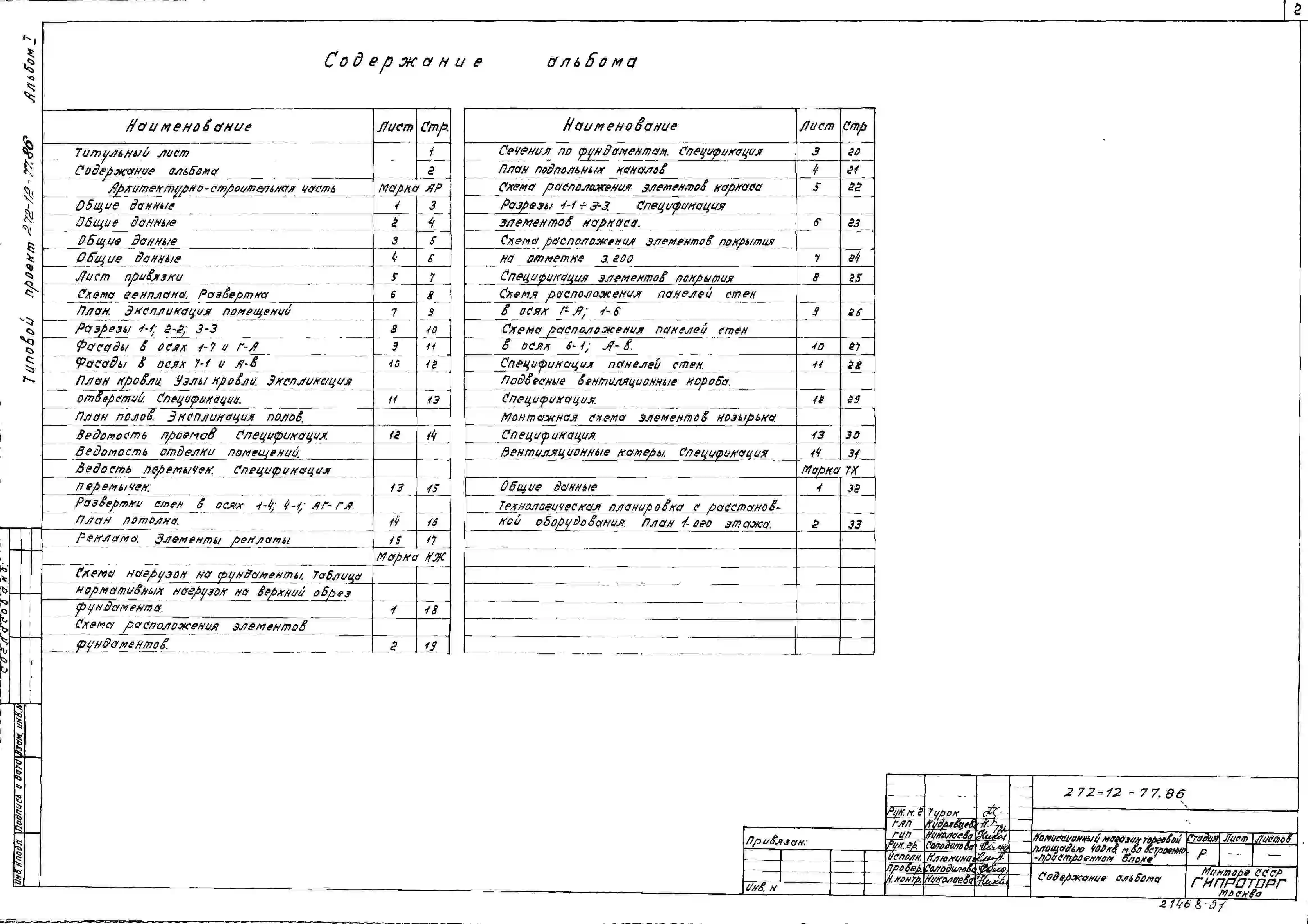 Типовой проект 272-12-77.86 Комиссионный магазин торговой площадью 400 м2 во встроено-пристроенном блоке (в конструкциях 1.020-1/83) . Для строительства в городах и поселках городского типа