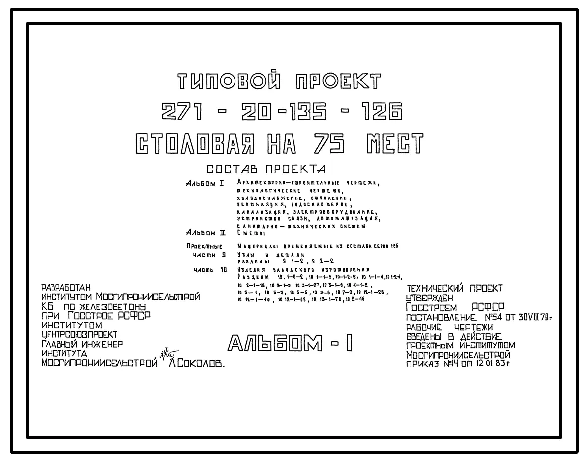 Типовой проект 271-20-135-126 Столовая на 75 мест (из изделий серии 135). Для строительства в 1В климатическом подрайоне, 2 и 3 климатических районах.