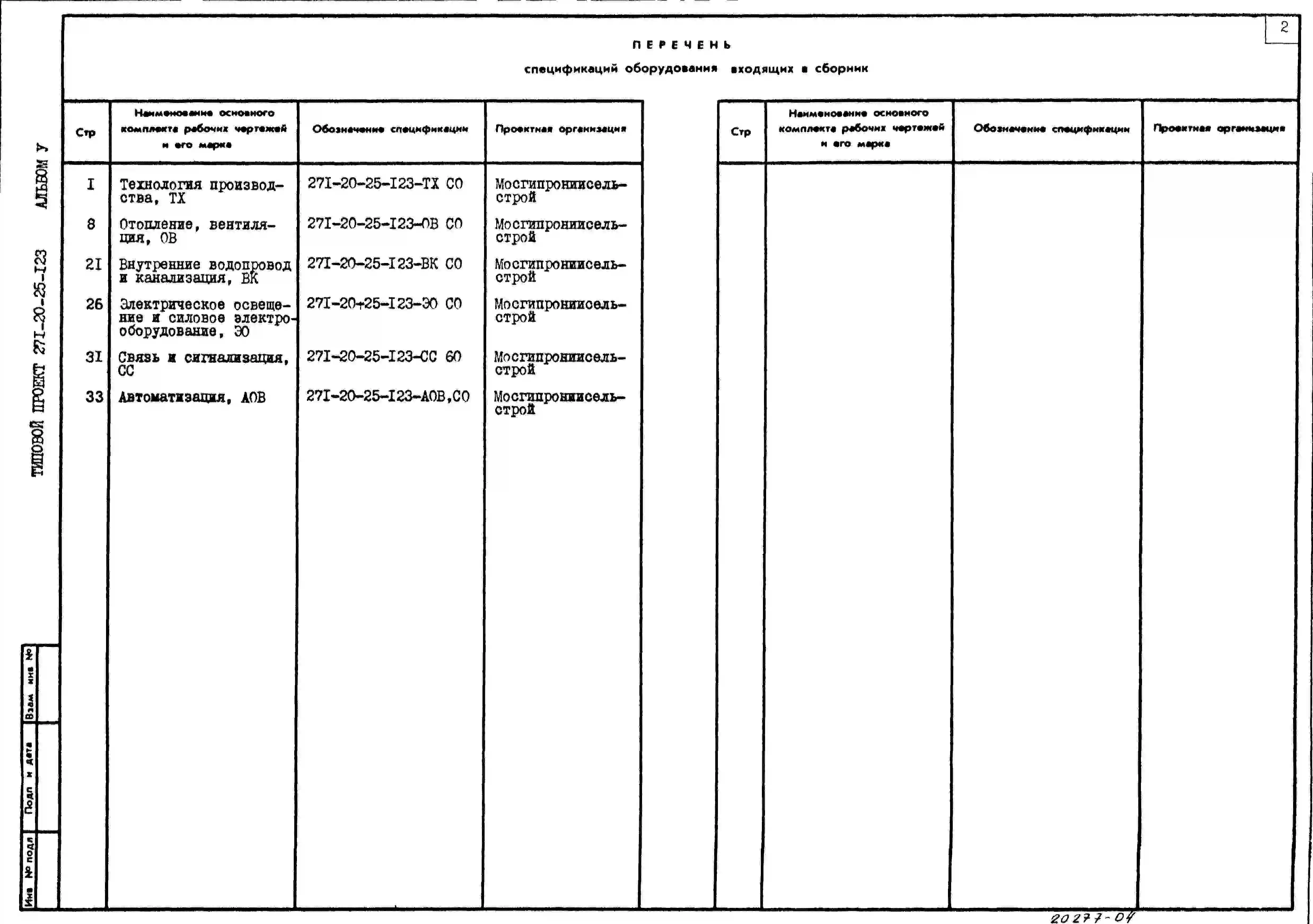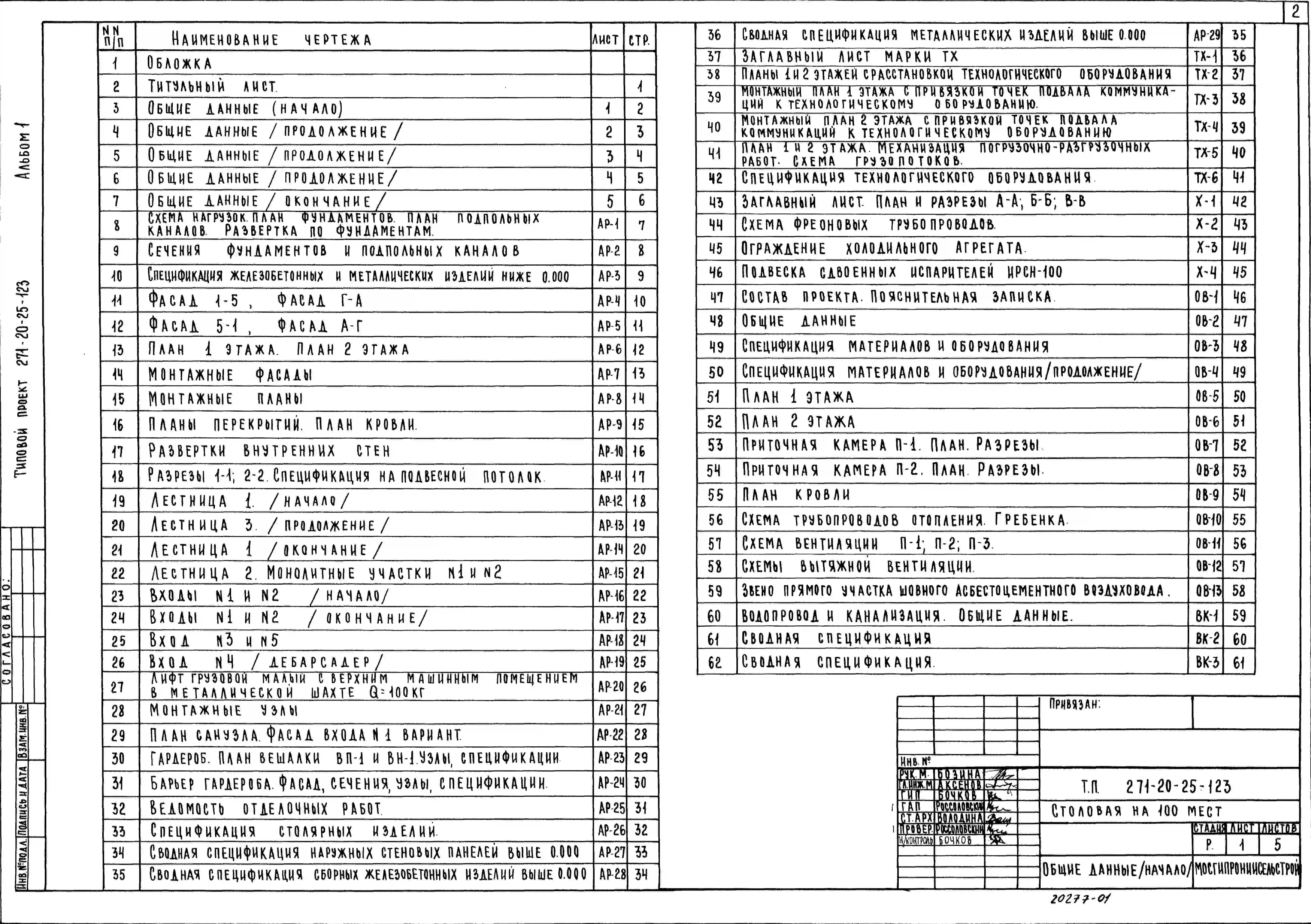 Типовой проект 271-20-25-123 Столовая на 100 мест в конструкциях серии 25. Для строительства в 1В климатическом подрайоне, 2и 3 климатических районах.