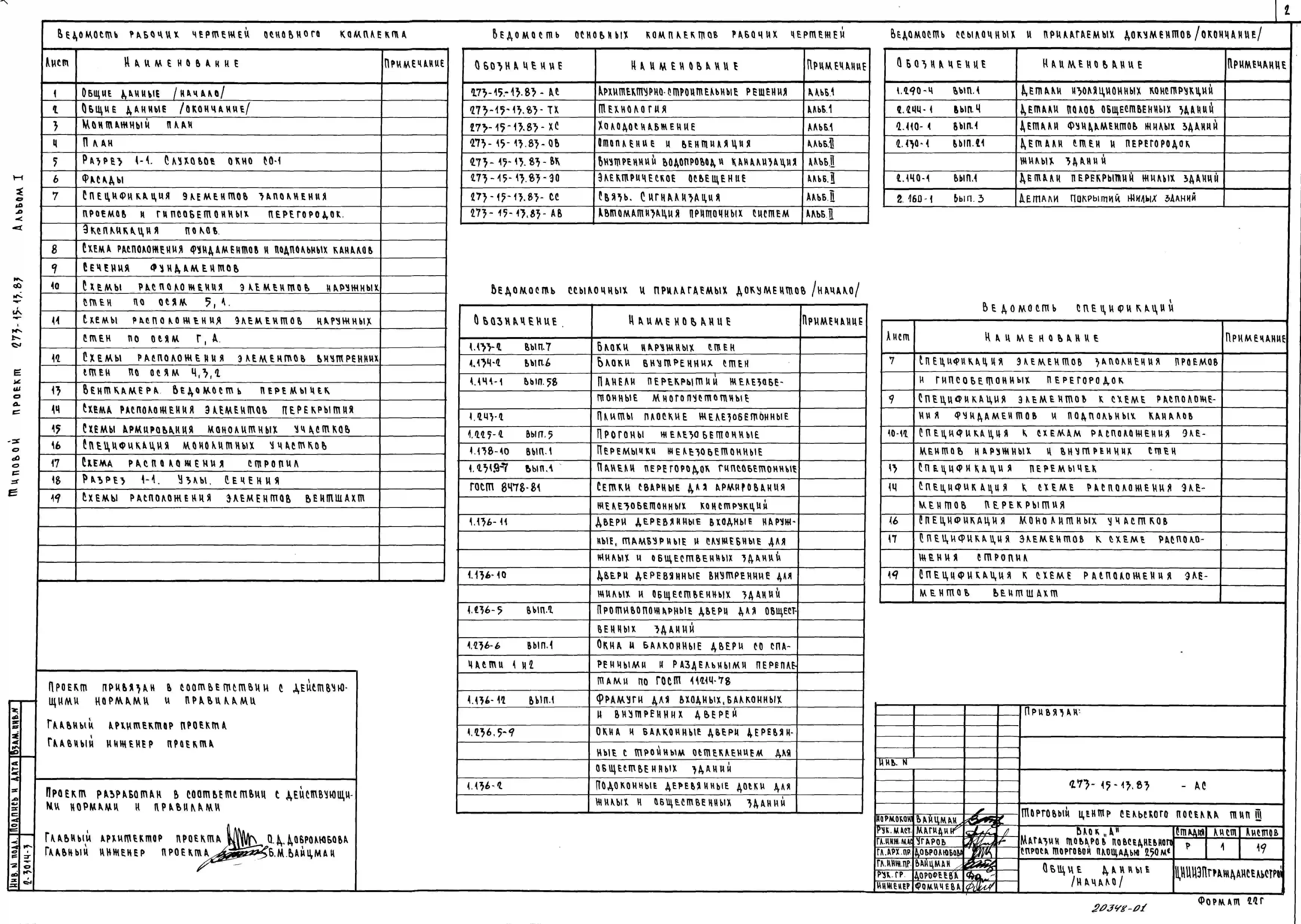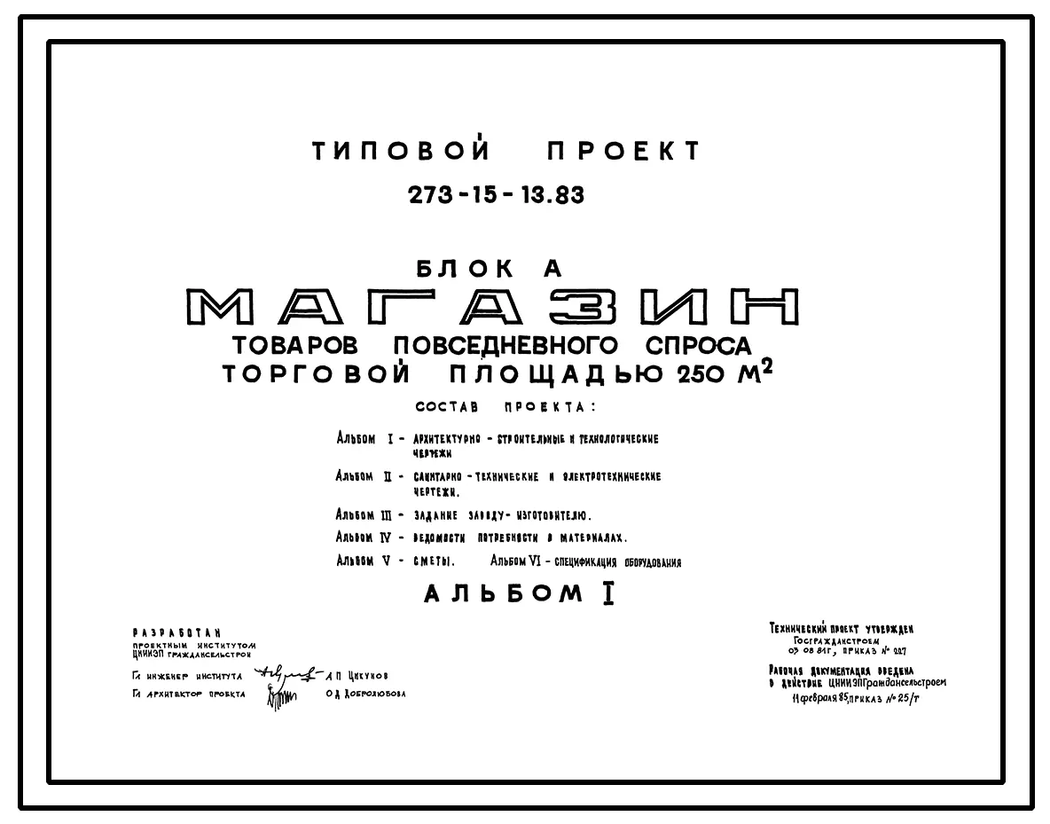 Типовой проект 273-15-13.83 Магазин товаров повседневного спроса торговой площадью 250 м2. Торговый центр сельского поселка. Для строительства в 1В климатическом подрайоне, 2 и 3 климатических районах. Блок А.