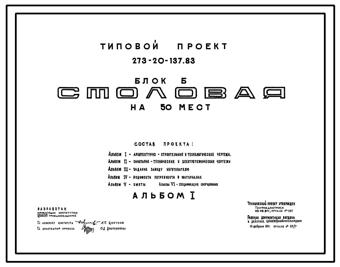 Типовой проект 273-20-137.83 Блок Б. Базовая столовая на 50 мест. Торговый центр сельского поселка. Для строительства в 1В климатическом подрайоне, 2 и 3 климатических районах.