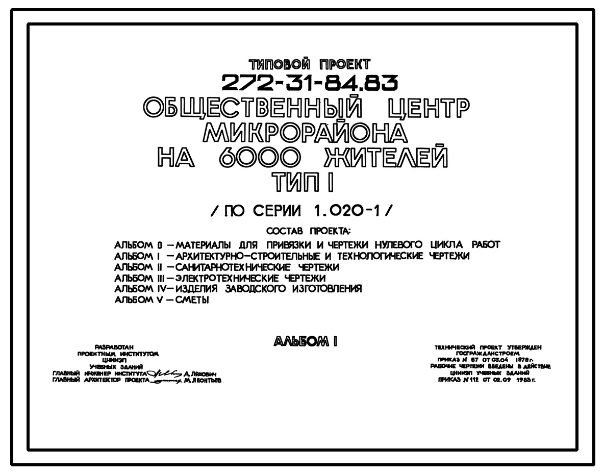 Типовой проект 272-31-84.83 Общественный центр микрорайона на 6000 жителей. Для строительства в 1В климатическом подрайоне, 2 и 3 климатических районах