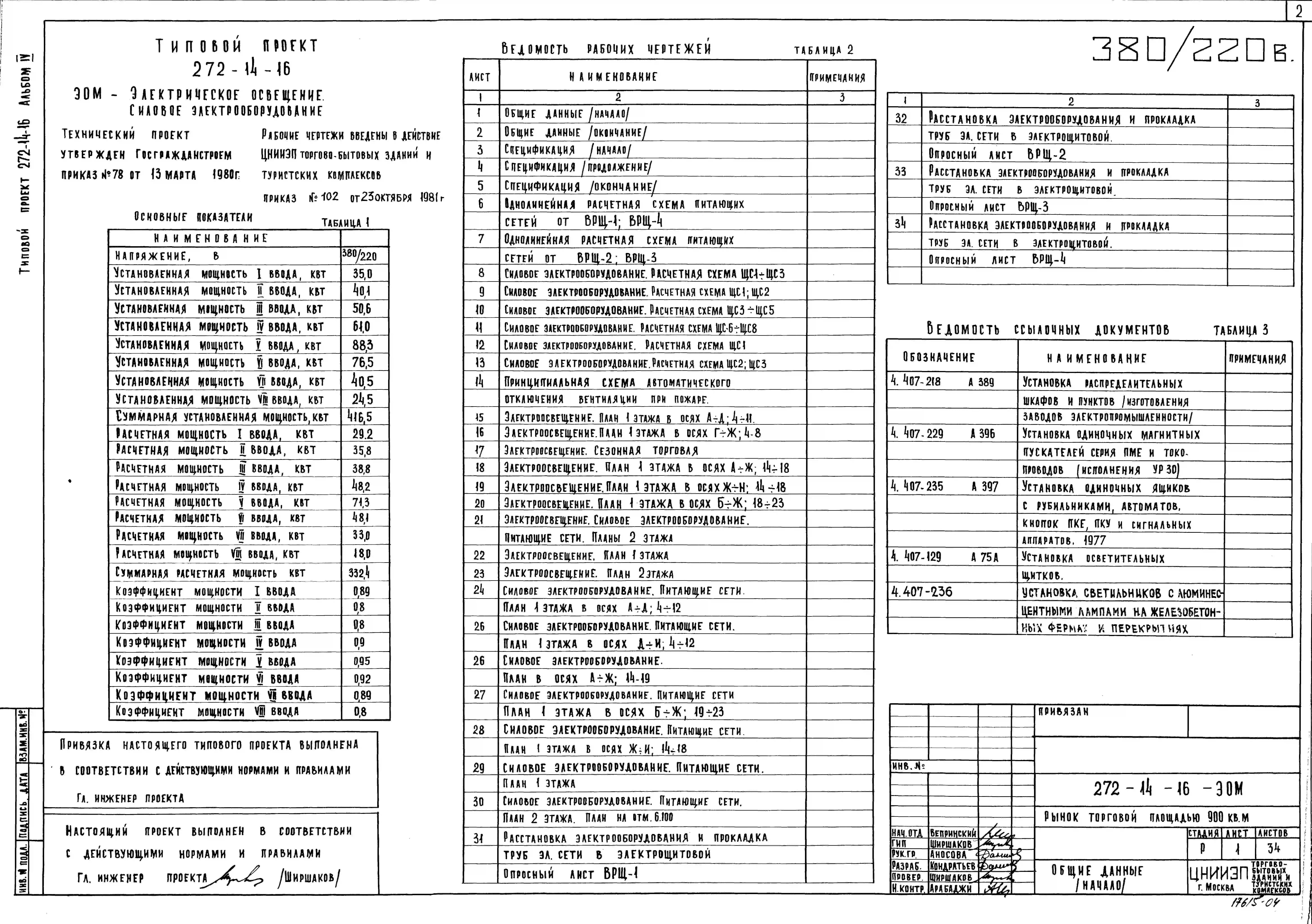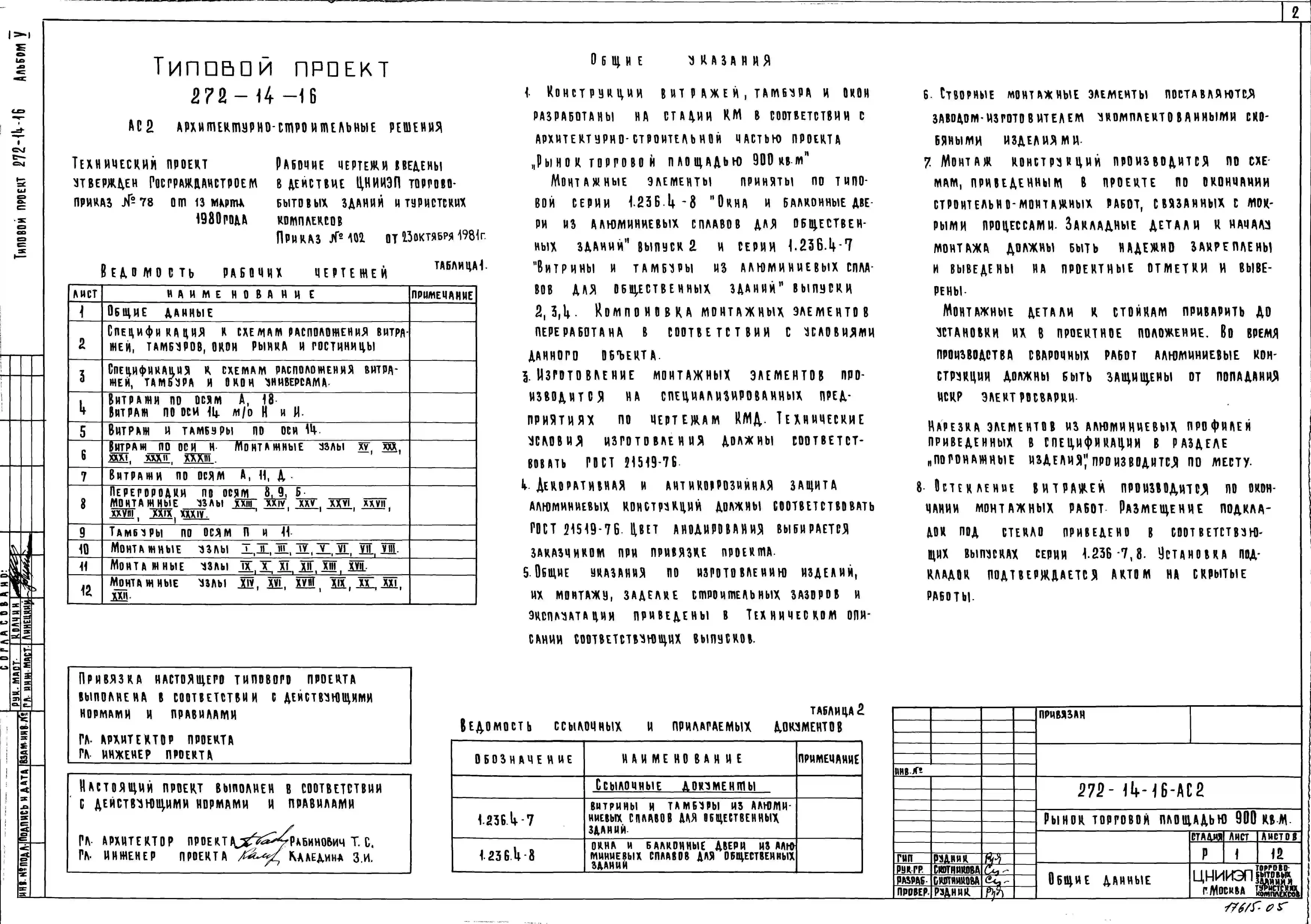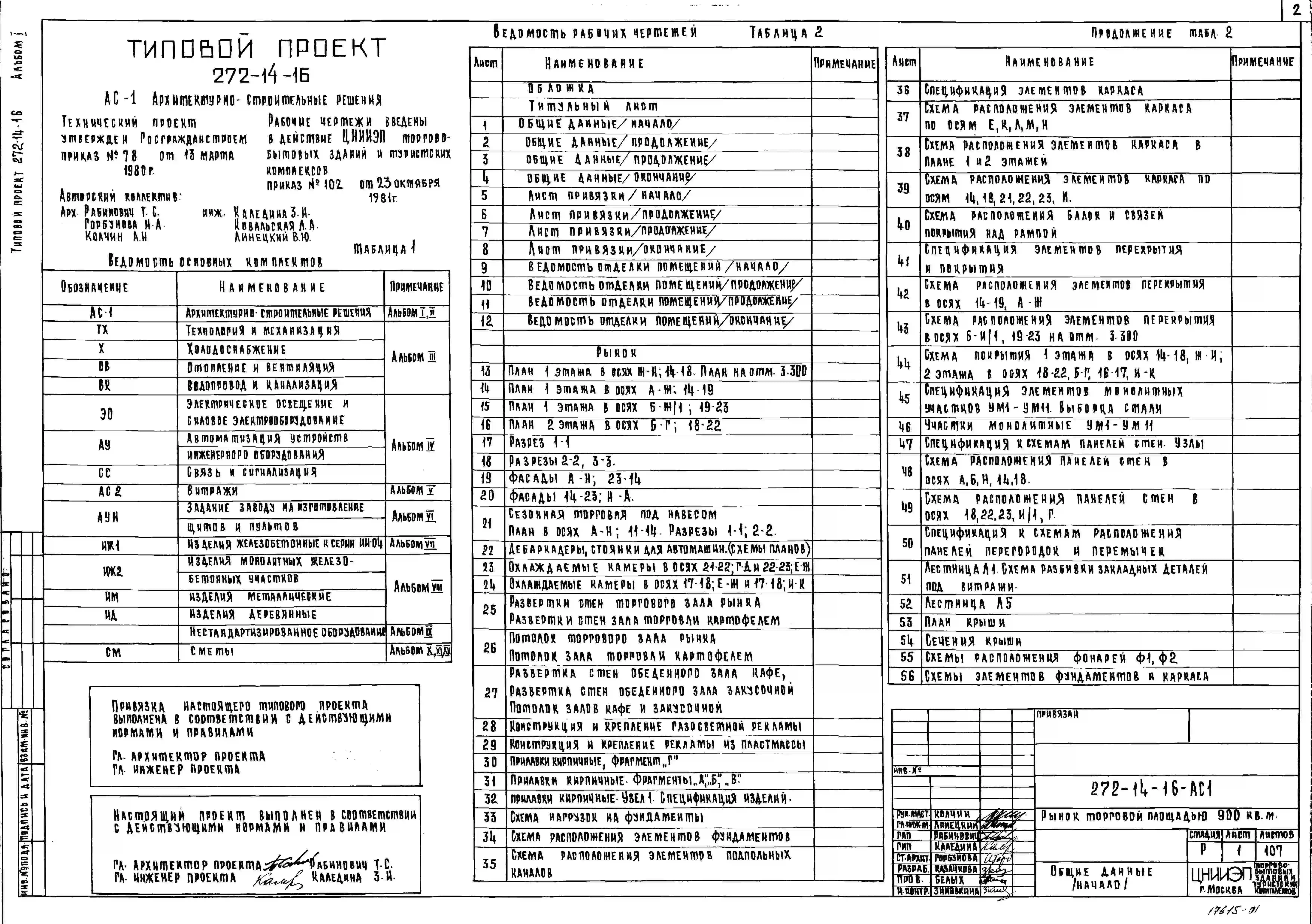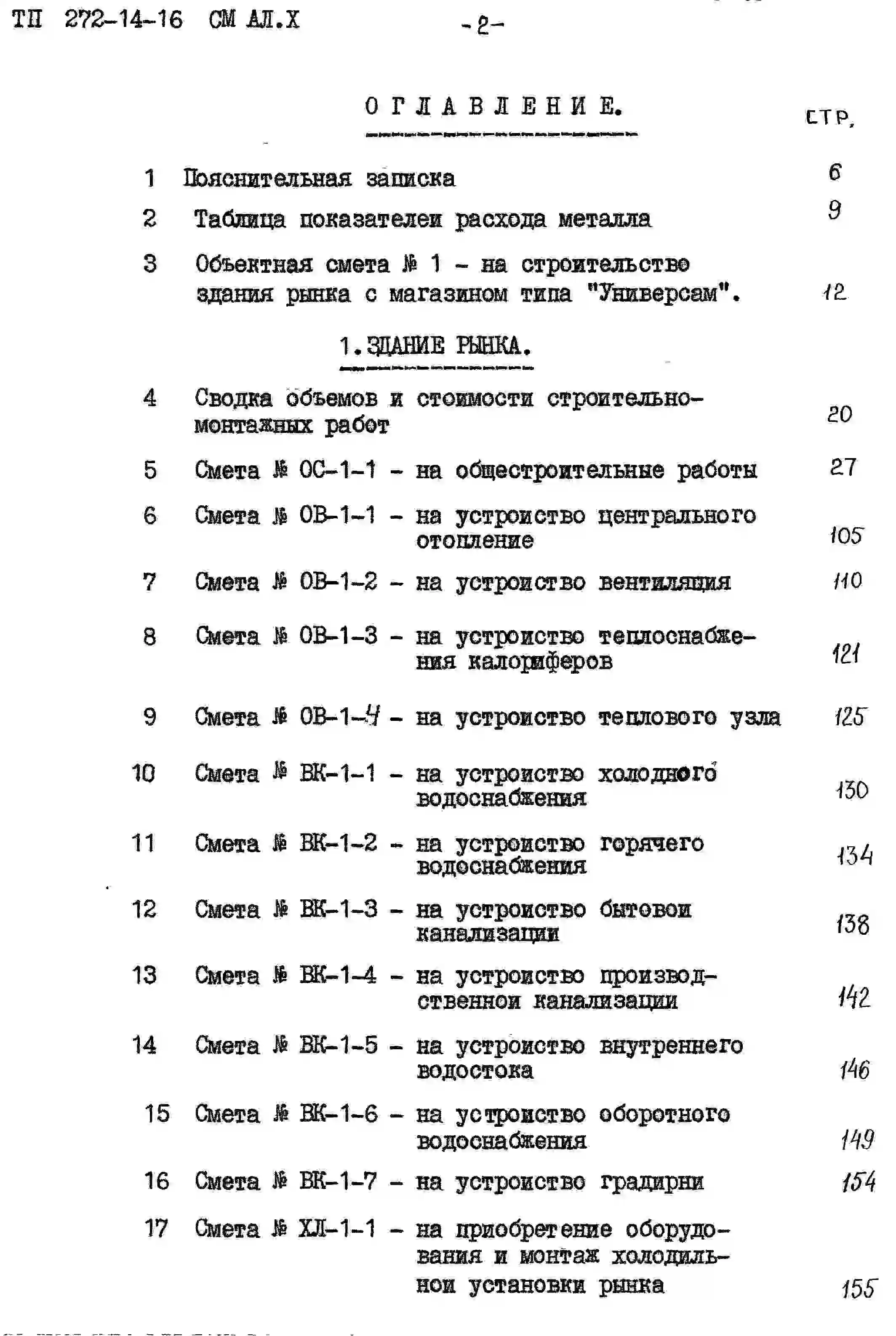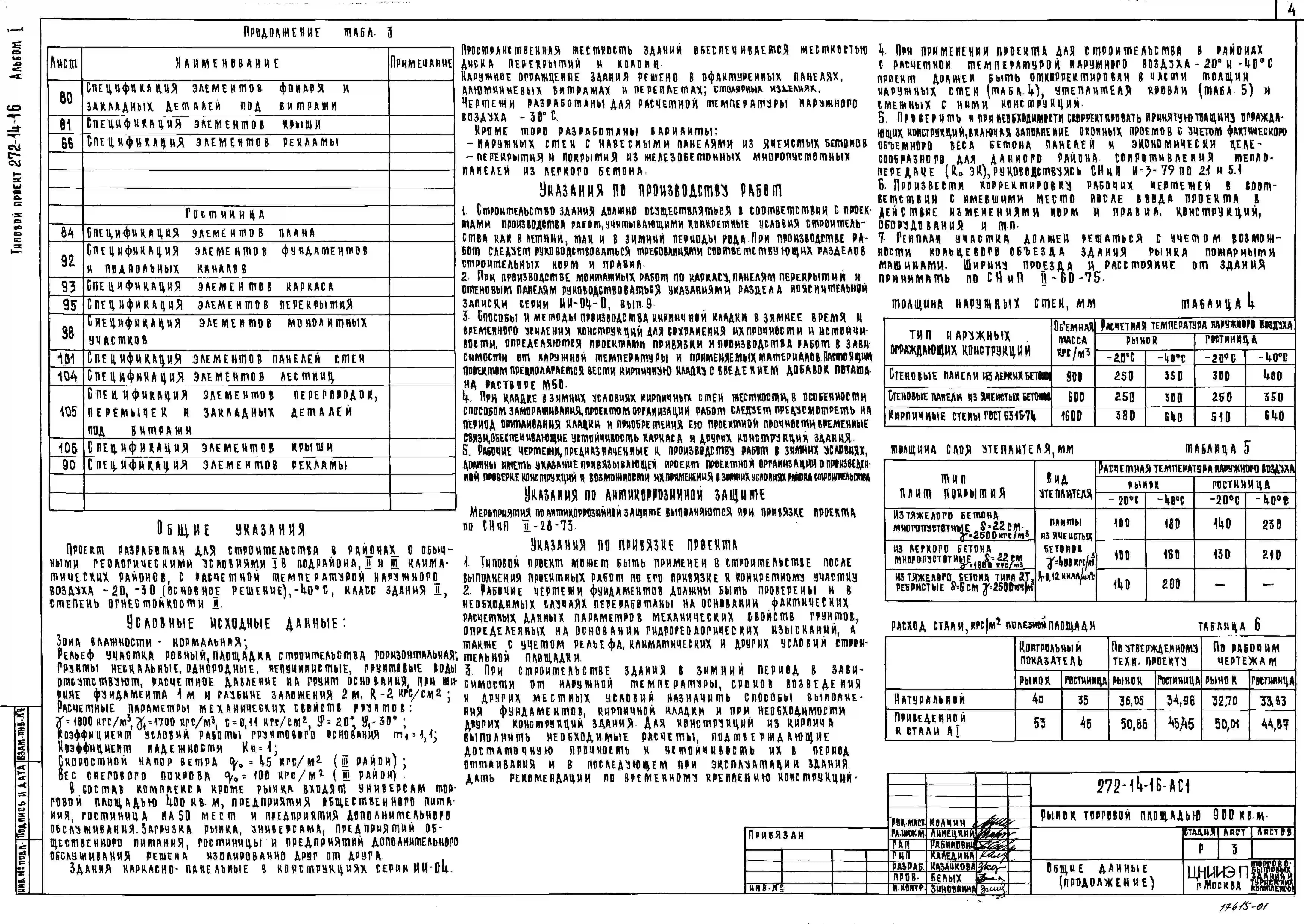 Типовой проект 272-14-16 Рынок (в конструкциях ИИ-04) торговой площадью 900 м2 (150 торговых мест)
